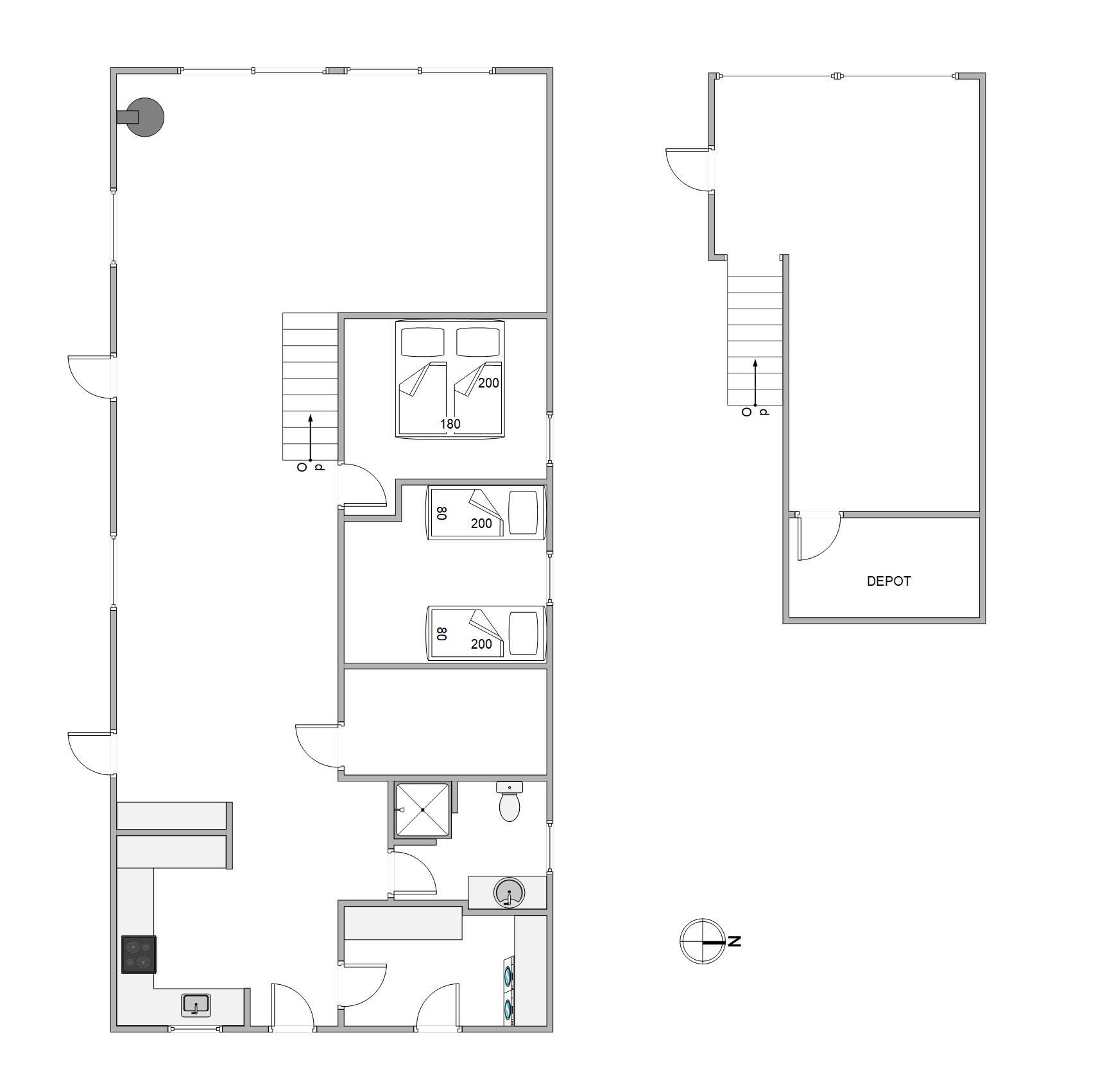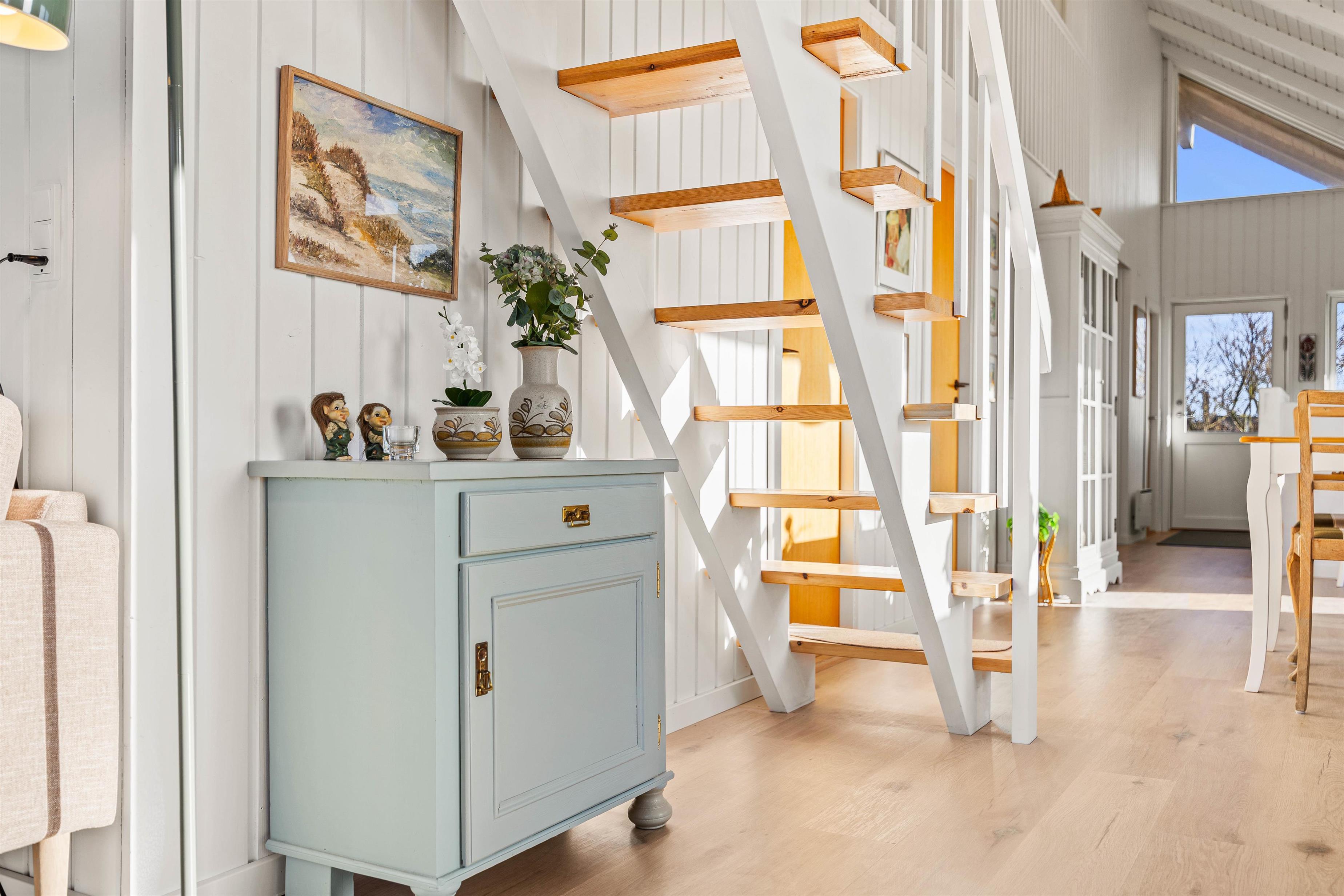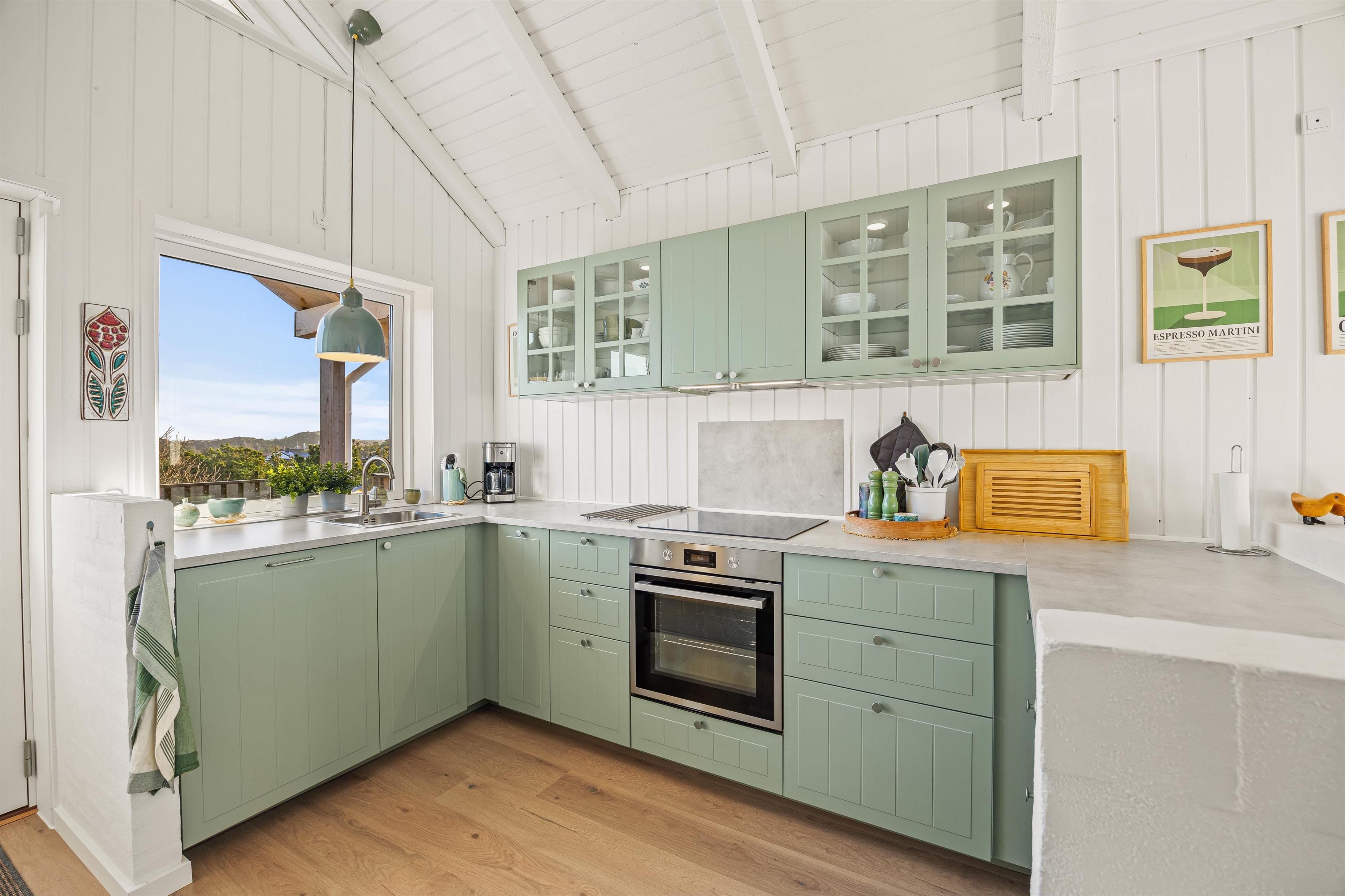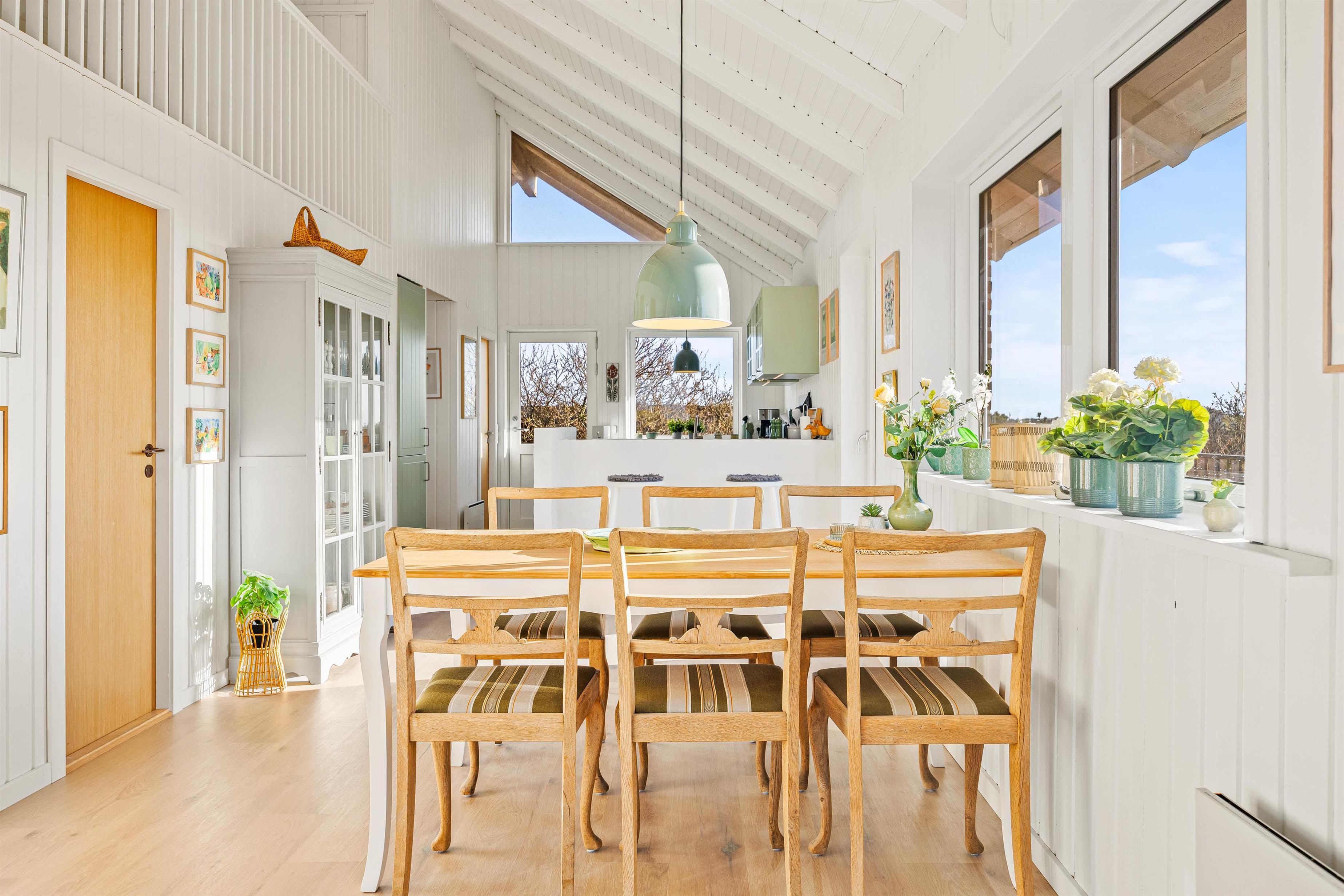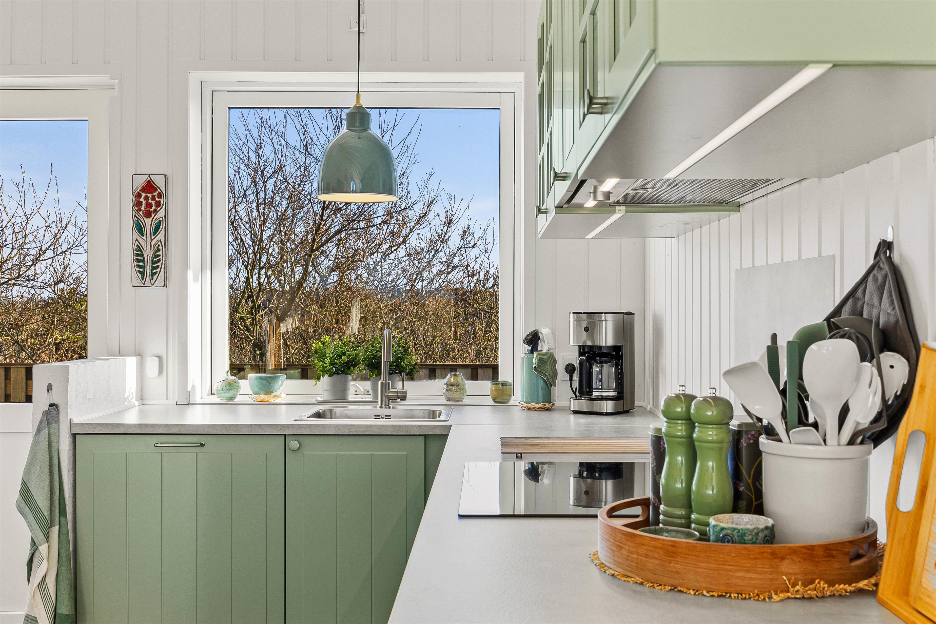 Fra parkeringspladsen fører trappen jer op til sommerhuset. Sommerhuset er gennemrenoveret i 2025 med et nyt og hyggeligt køkken som indeholder alt, hvad I har brug for samt alt i hårde hvidevarer. Ved spisebordet kan I nyde jeres lækre, hjemmelavede retter og eventuelt arrangere en spille aften.