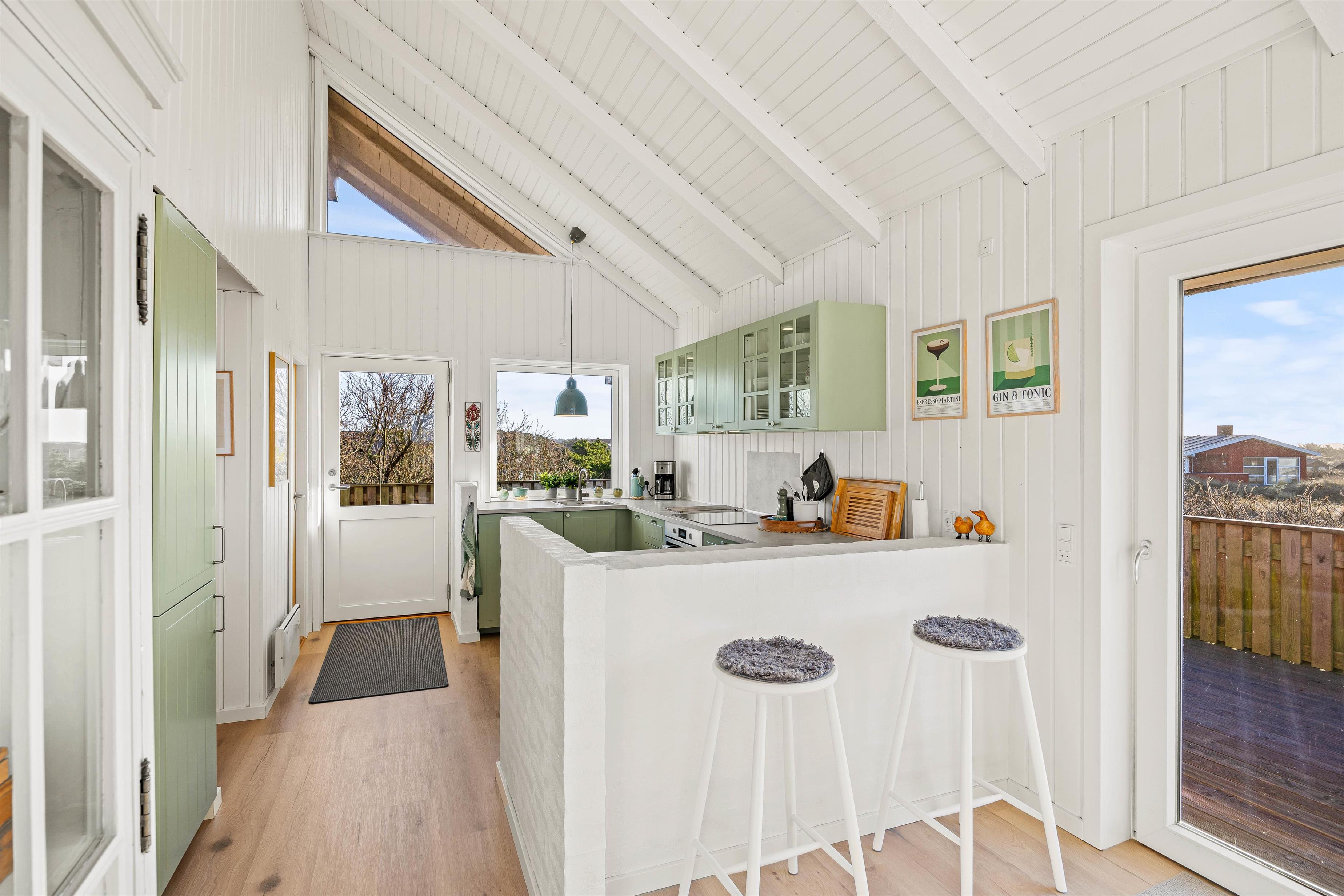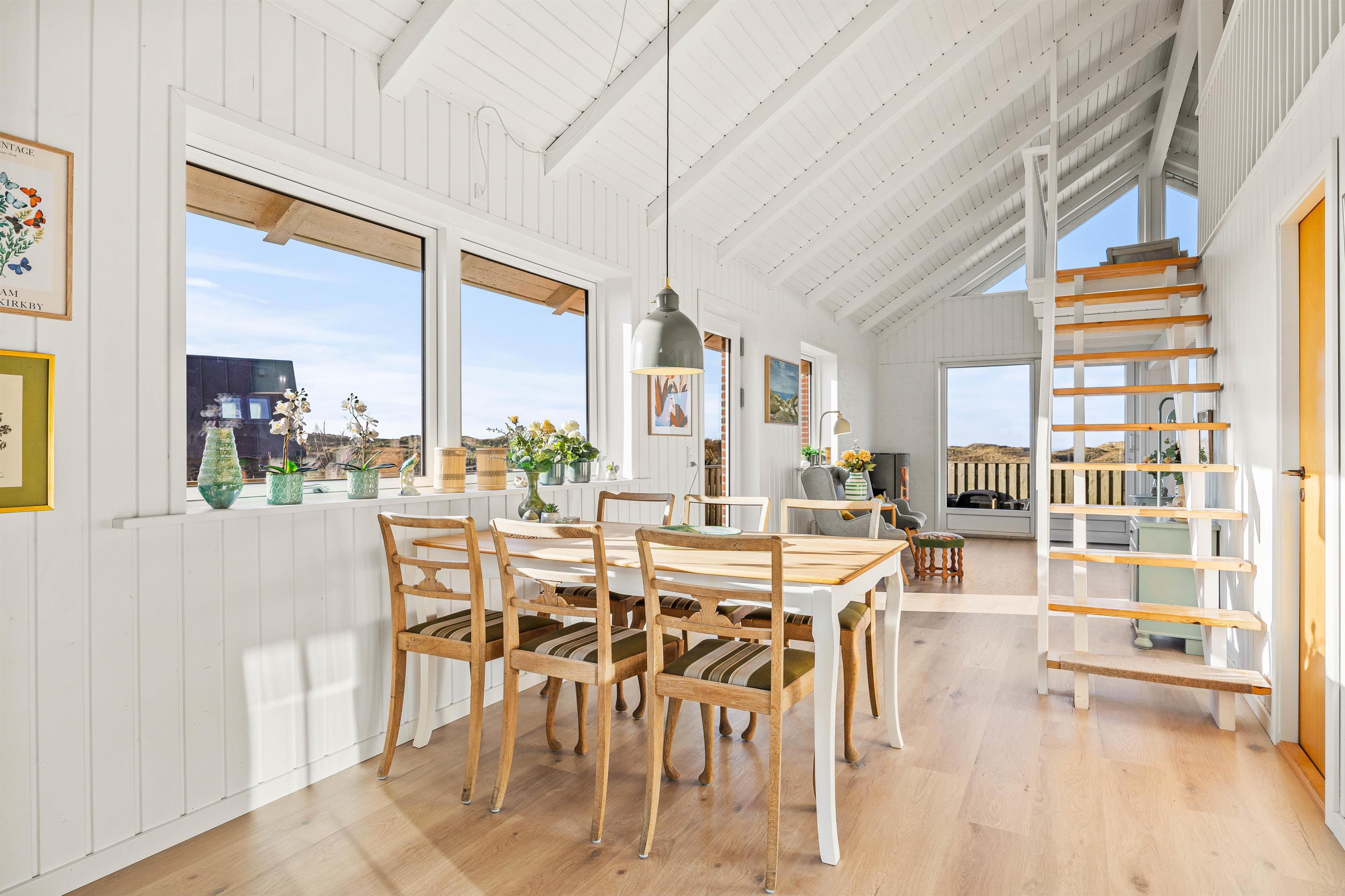 Sommerhuset ligger på en 7500 kvadratmeter klitgrund, så I har alle muligheder for at nyde naturen og omgivelserne. Tænd op i grillen og slut dagen af med et lækkert grillmåltid på terrassen, imens solen går ned bag klitterne, hvor I kan nyde de smukke solnedgange ved Vesterhavet.
