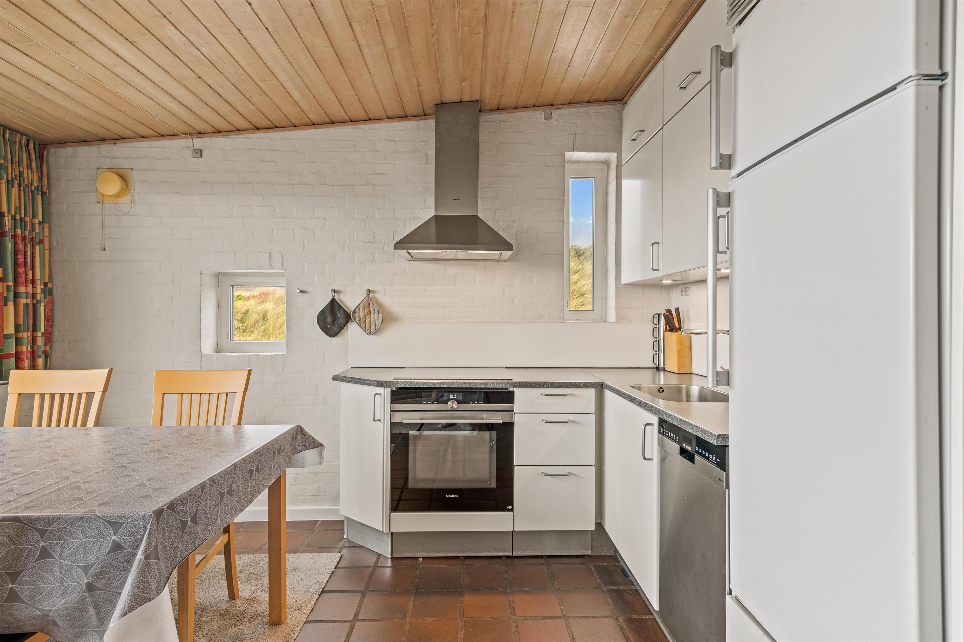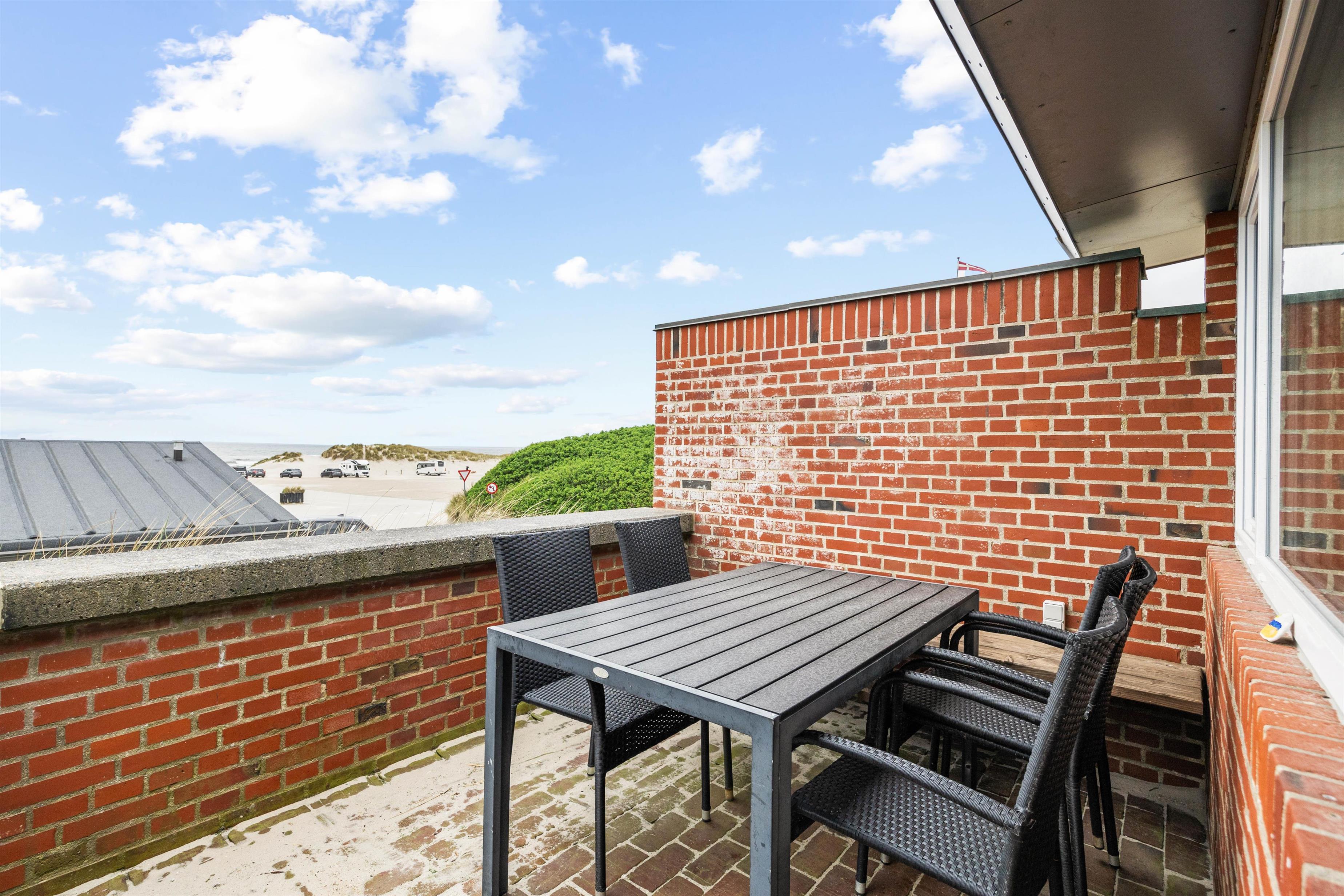 Sommerhuset har 2 fine terrasser, hvoraf den ene er østvendt, mens den anden er vestvendt. På den lukkede, vestvendte terrasse, har I en skøn udsigt til Vesterhavet og stranden. Her kommer I uden tvivl til at tilbringe mange hyggelige timer i løbet af jeres ophold. En god feriedag skal naturligvis sluttes af med lækkert mad, og netop dette har I mulighed for at tilberede på rækkehusets grill.