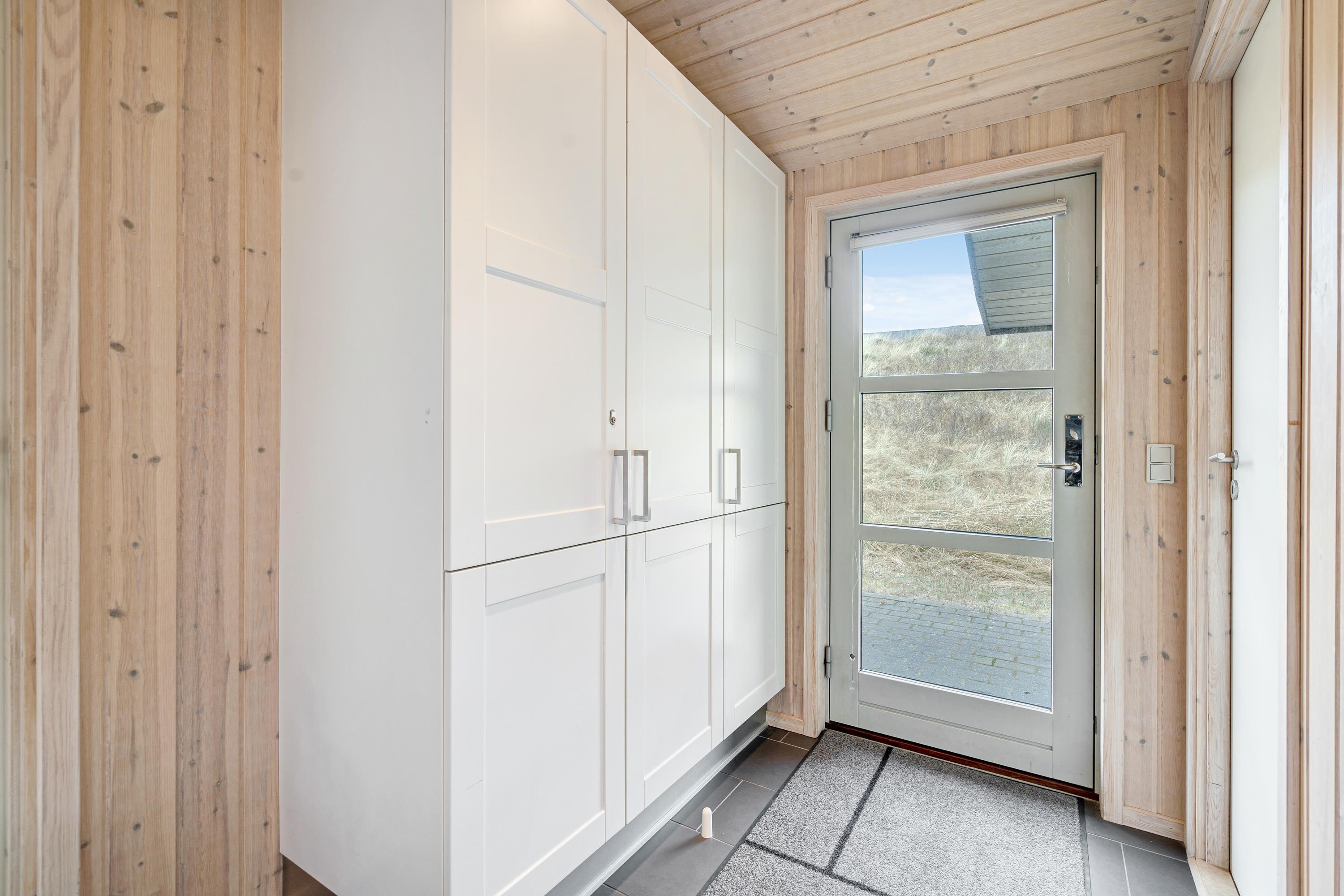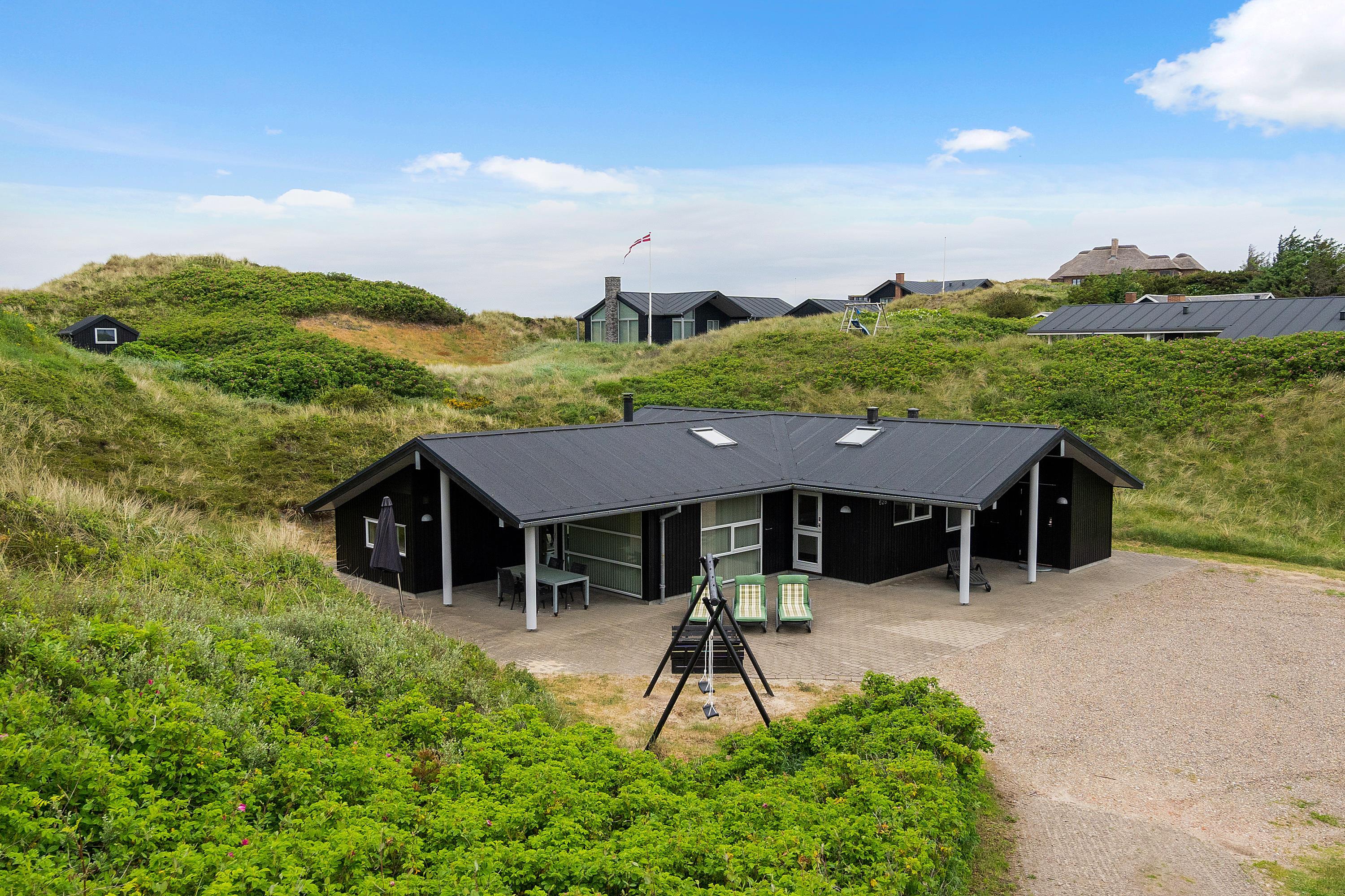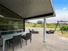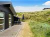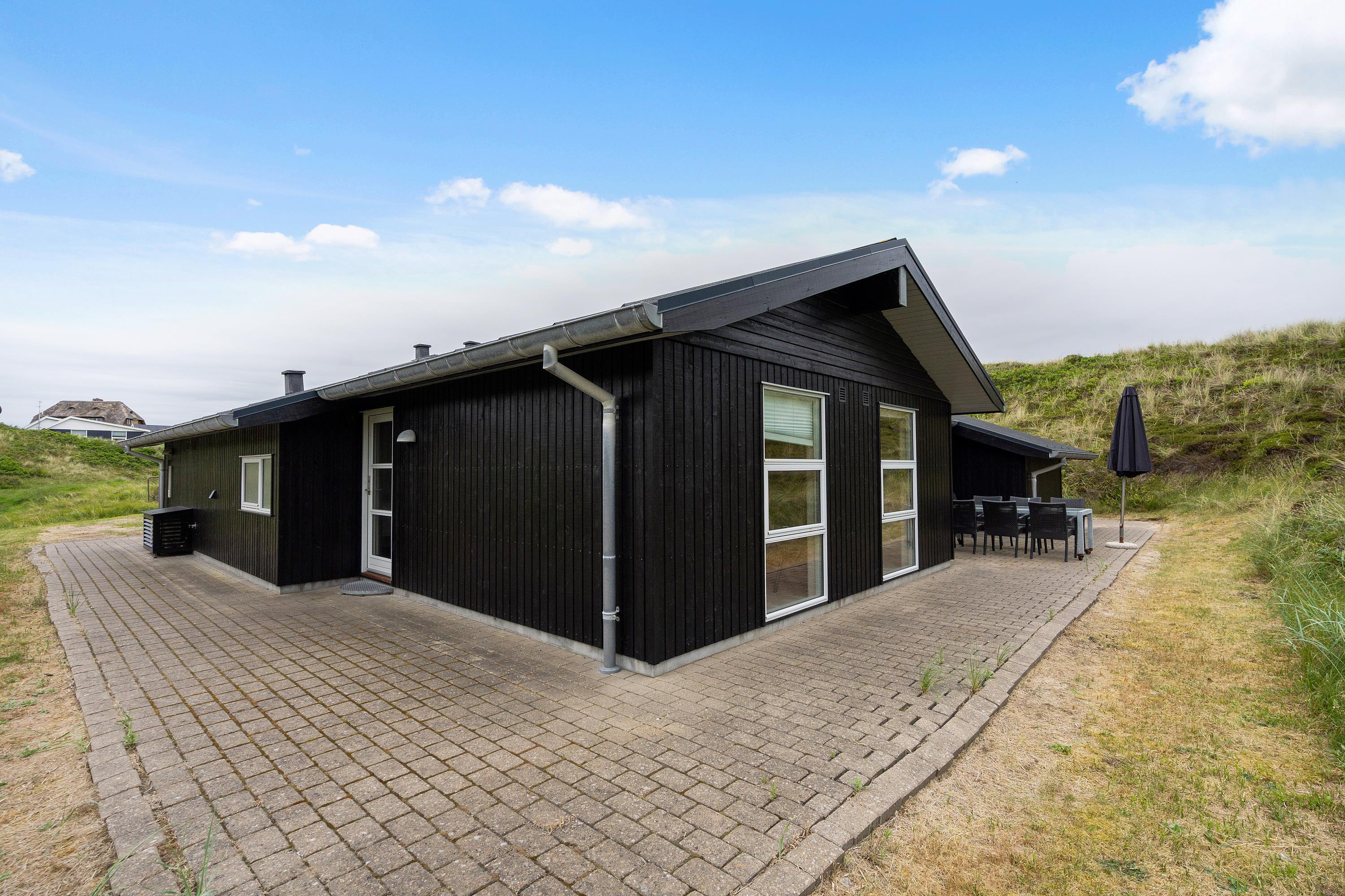 Uderummet er helt optimalt til de solrige dage. Der er flere hyggelige siddekroge rundt om sommerhuset, der er forbundet af en flisesti hele vejen rundt. Den store østvendte terrasse har både en åben og overdækket del, og en høj klitbanke afskærmer uderummet fra det omkringliggende sommerland.