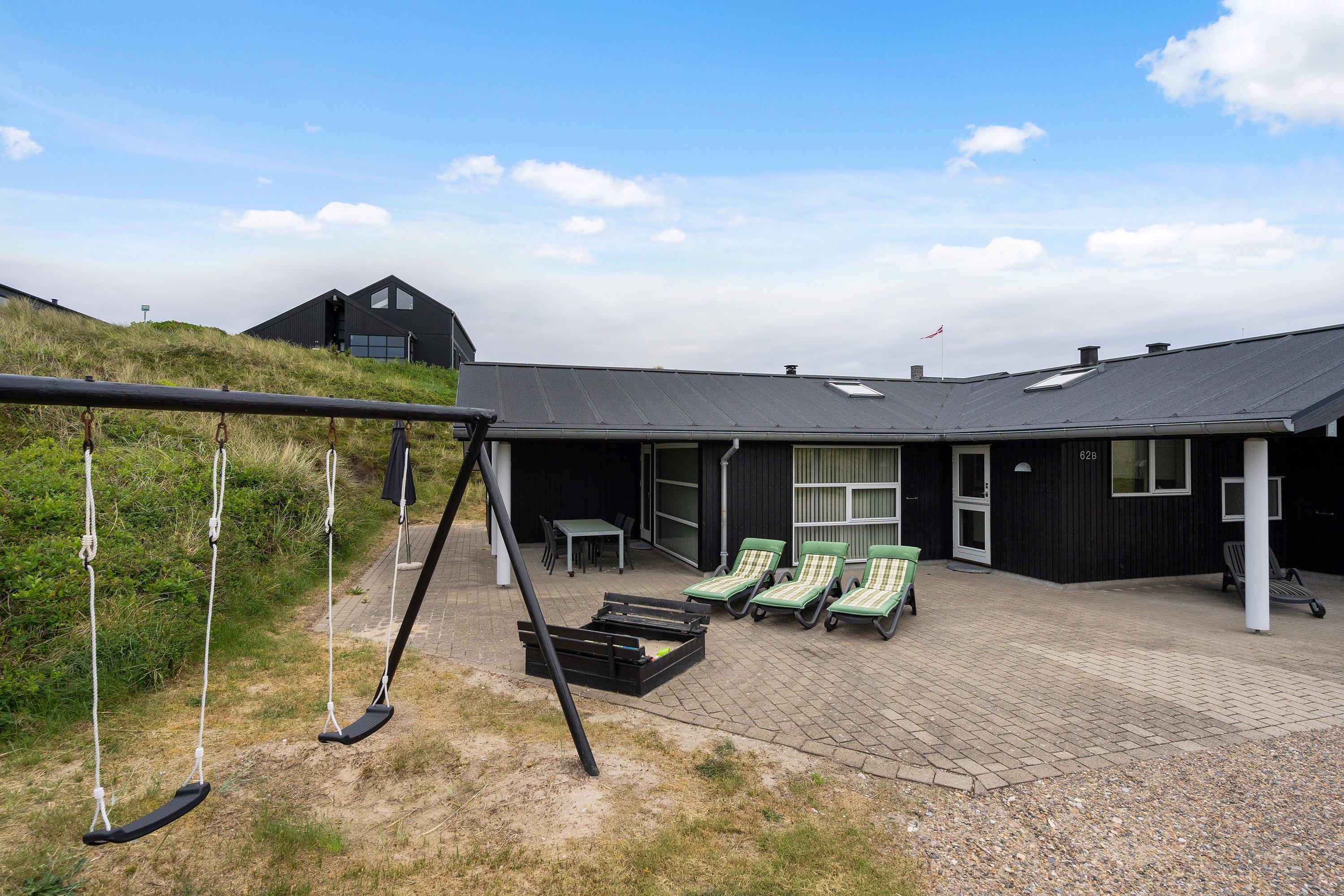 Terrasserne er udstyret med gode havemøbler, liggestole og en grill, og til glæde for de yngste feriegæster er der sandkasse og gyngestativ på grunden.
