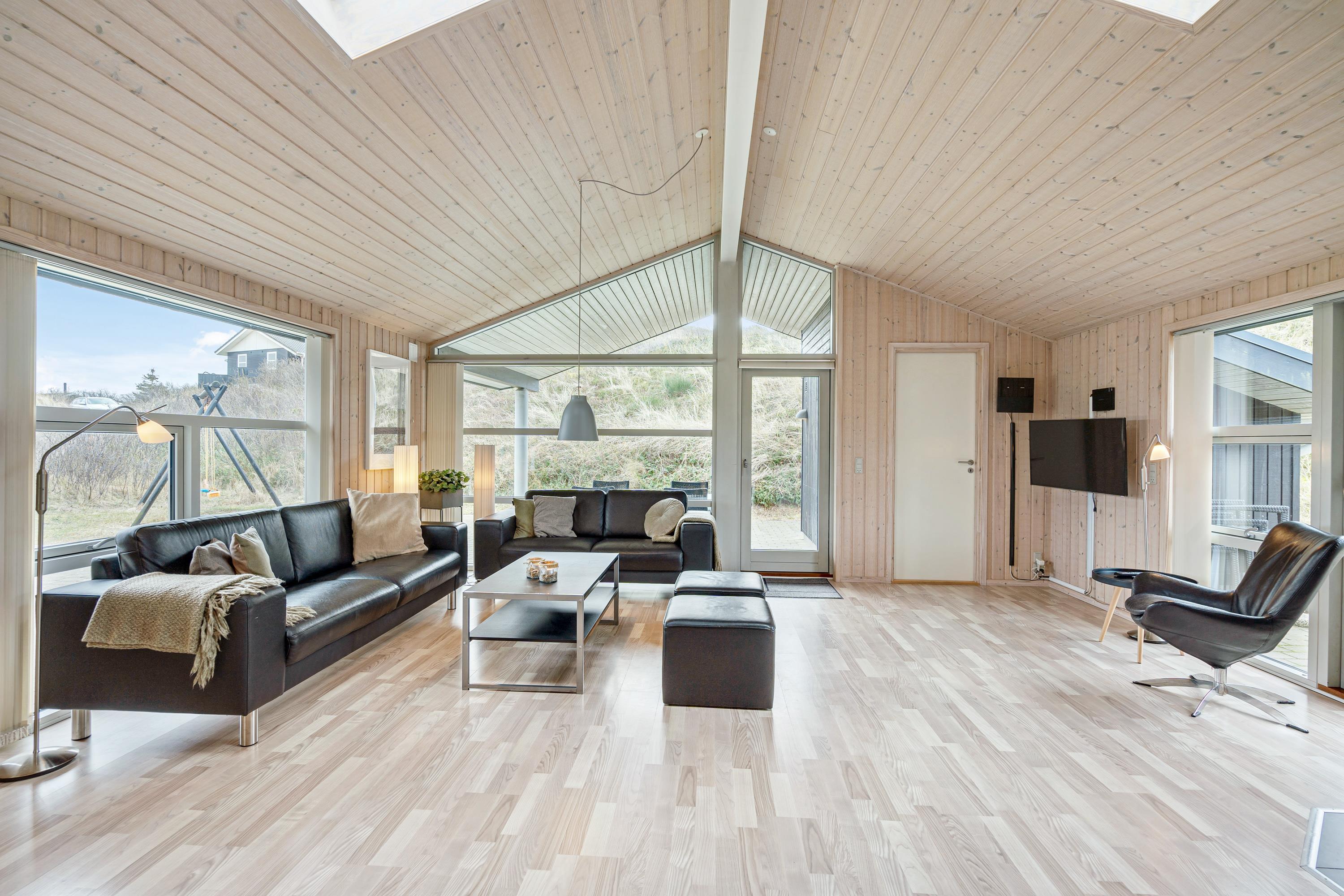 Sommerhuset på Hjelmevej 62B har plads til 6 feriegæster og byder på en lys og venlig indretning med moderne interiør. Der er et skønt lysindfald gennem ovenlysvinduerne og de store vinduespartier i stuen, som skaber en ekstra rummelig atmosfære.