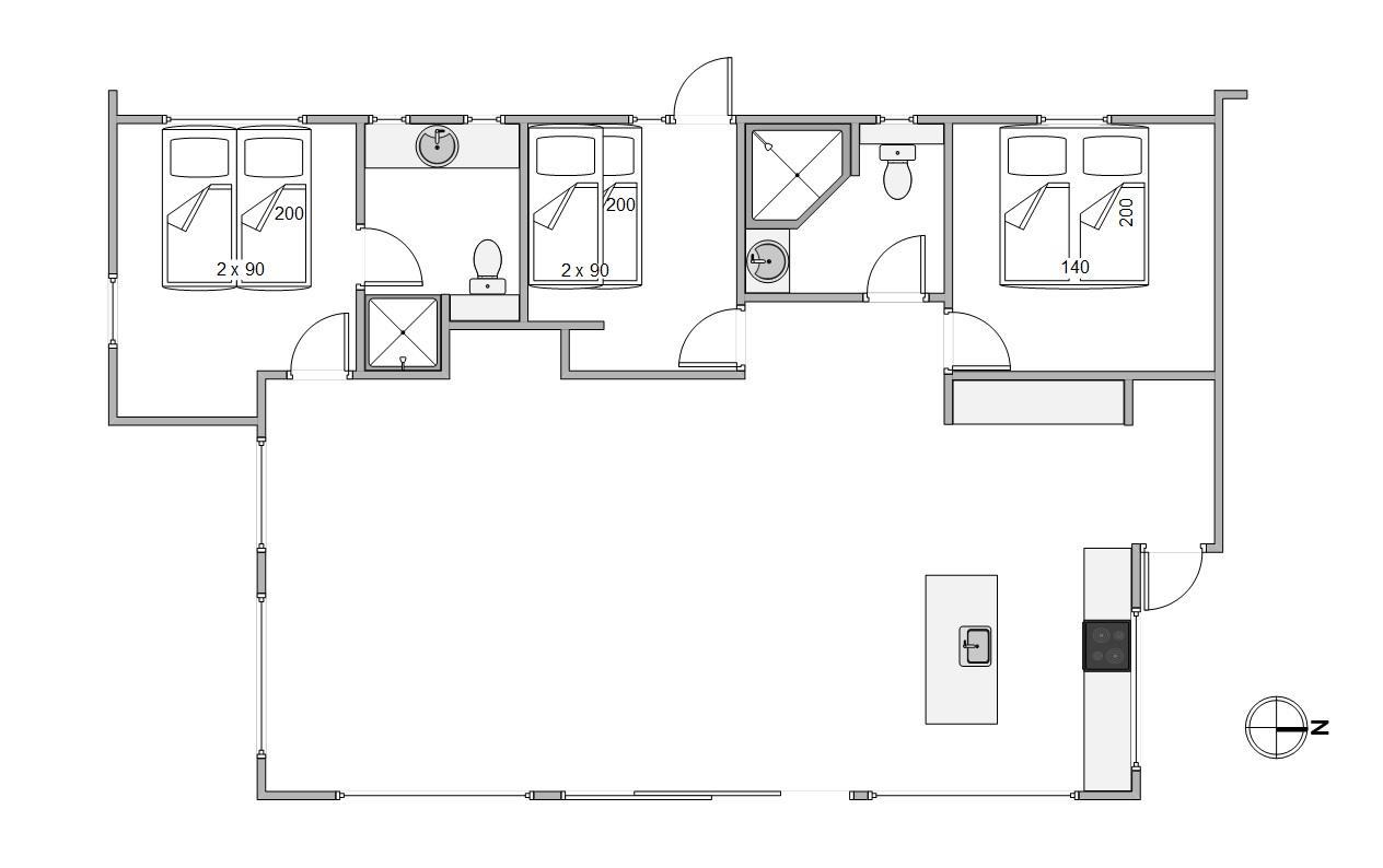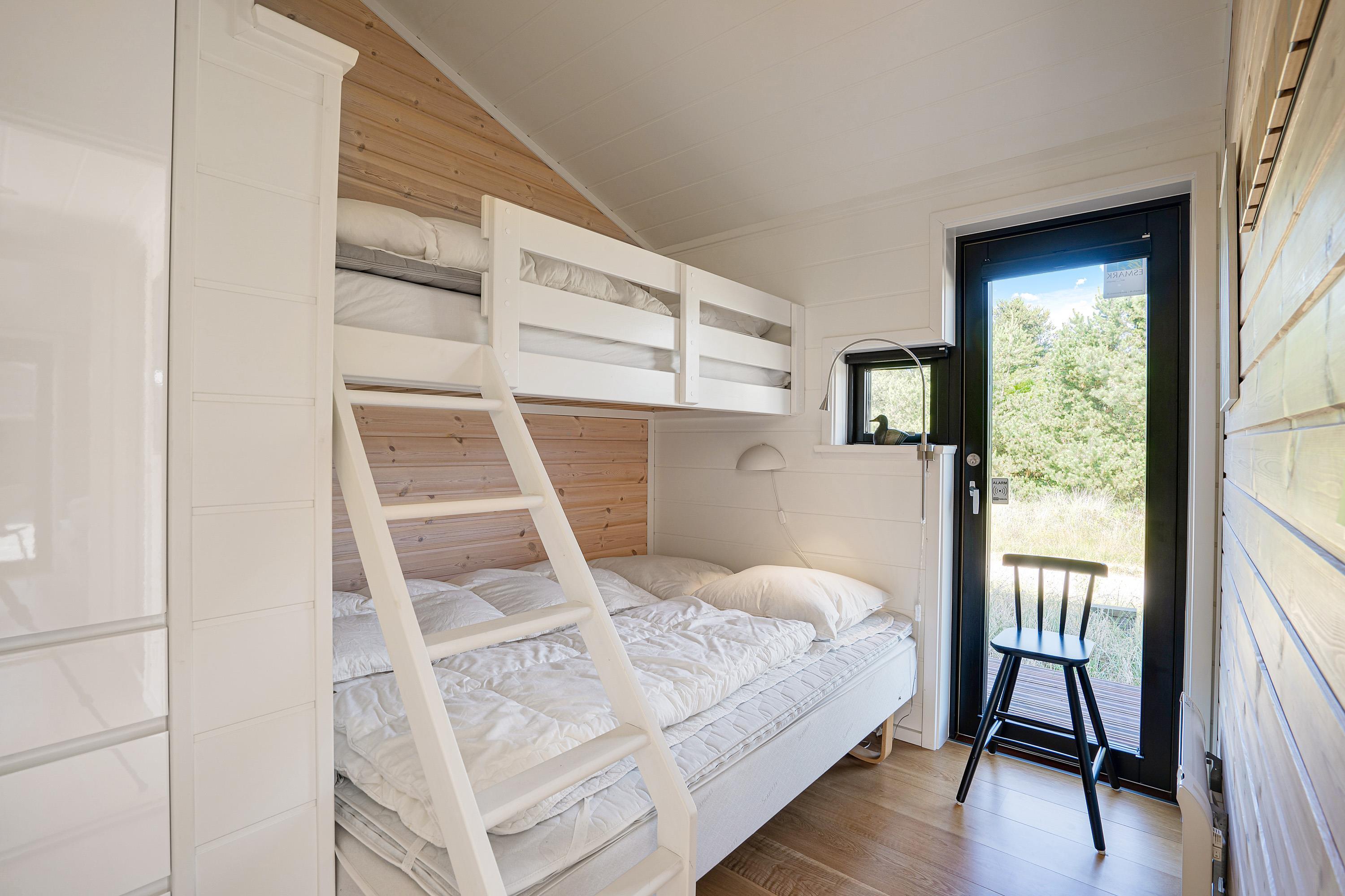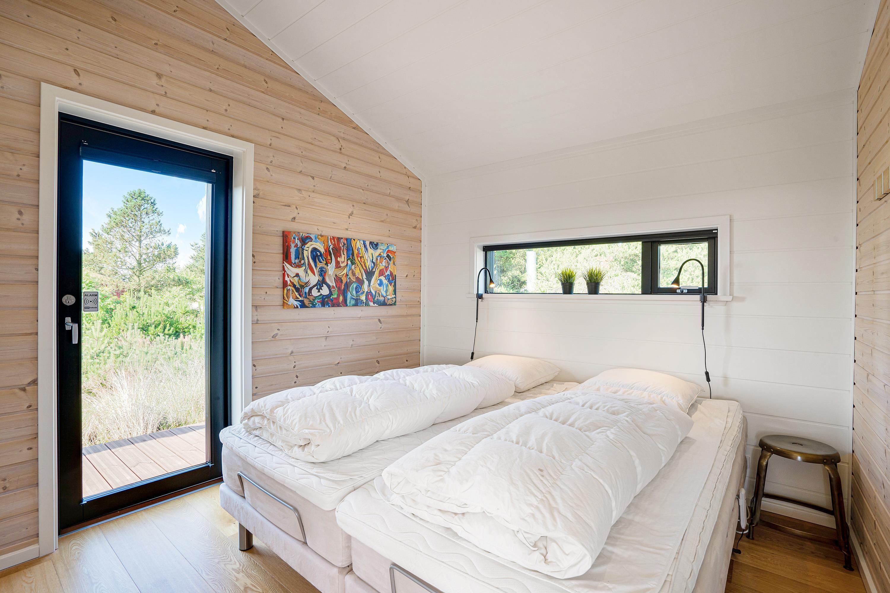 Ferieboligen rummer 3 gode soverum, og et af dem er endda udstyret med elevationssenge. Dertil er der også 2 badeværelser, så der ikke sker kødannelse om morgenen. Sommerhusets vaskemaskine, tørretumbler og opvaskemaskine er gode hjælpere, så I slipper for at bruge for meget tid på den slags og i stedet kan bruge tiden med hinanden. Den energibesparende varmepumpe sørger for at temperaturen indenfor hele tiden er behagelig, uanset vejret udenfor.
