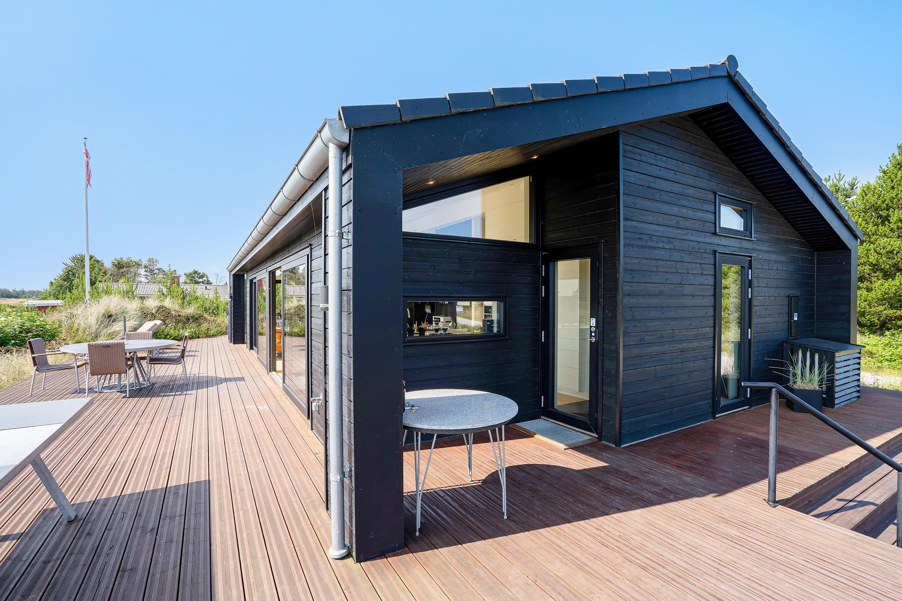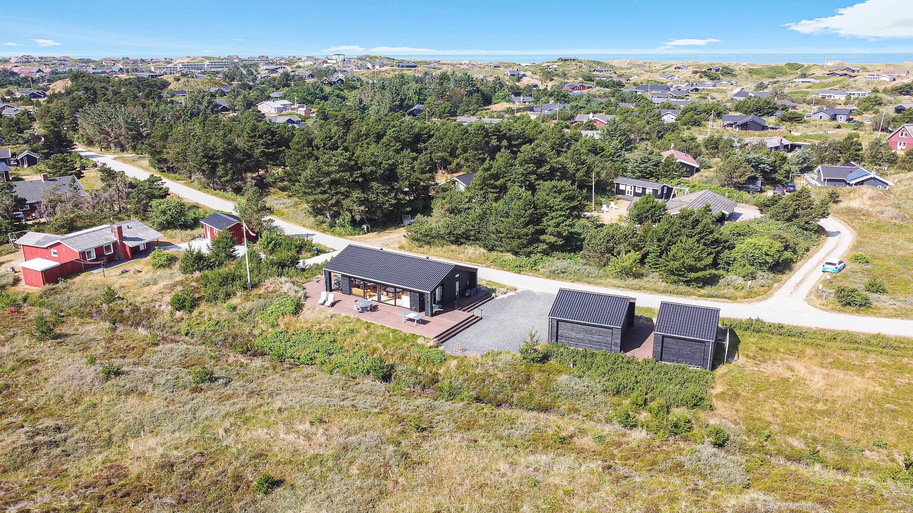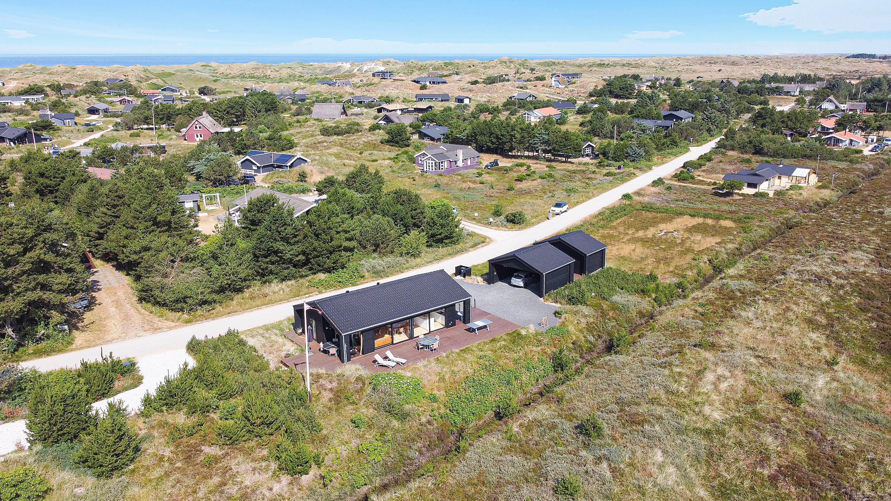 I den skønne badeby Henne Strand finder I på Gøgevej 34 dette moderne sommerhus med plads til 6 personer. Herfra er der ikke langt til hverken stranden eller butikkerne, for det hele er i gåafstand fra adressen. Samtidig er der heller ikke langt til det skønne hedeområde, for det starter allerede lige udenfor jeres dør. De store vinduer fra køkkenalrummet har en vidunderlig udsigt over det store åbne område, og i horisonten er der blot træer og skov.