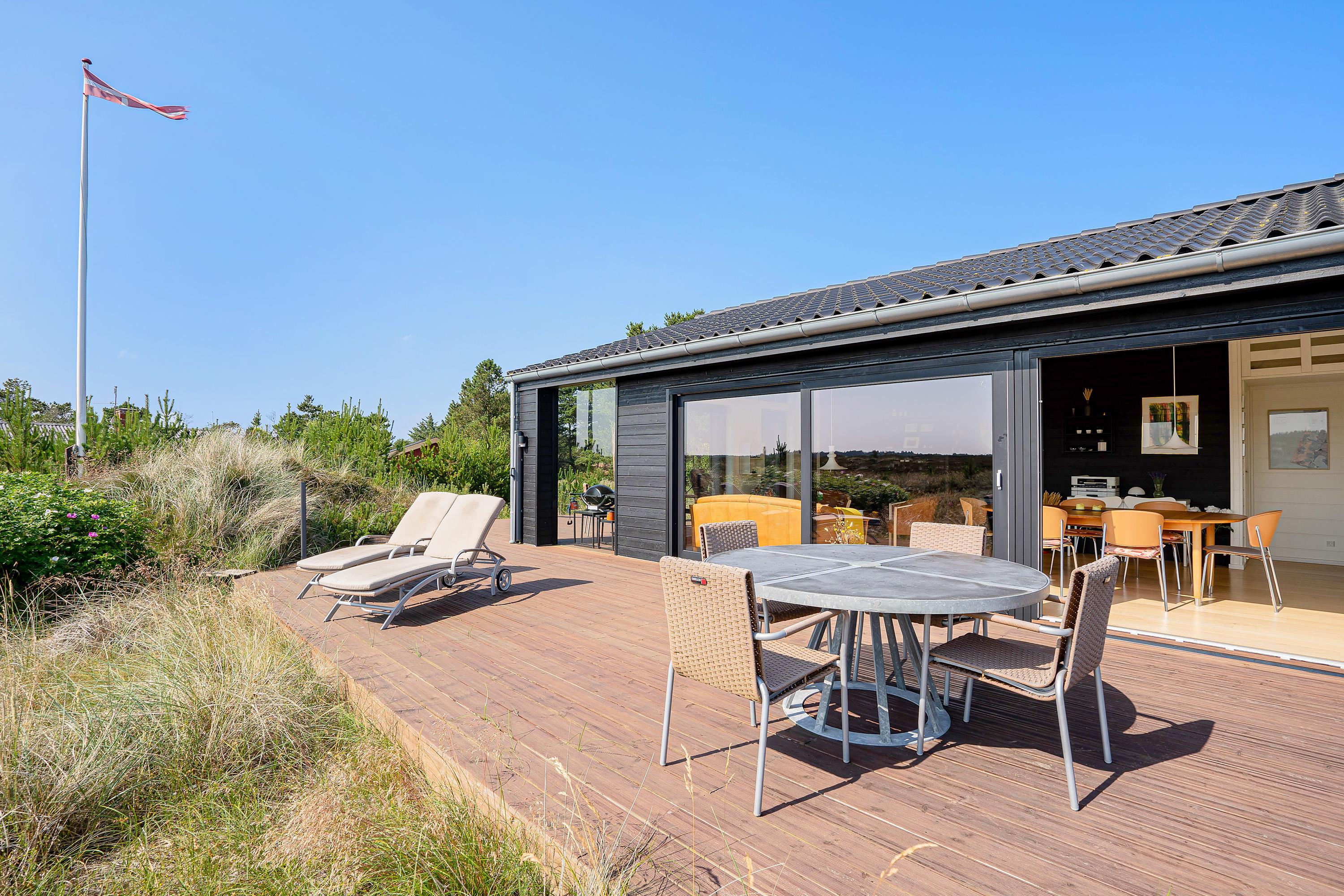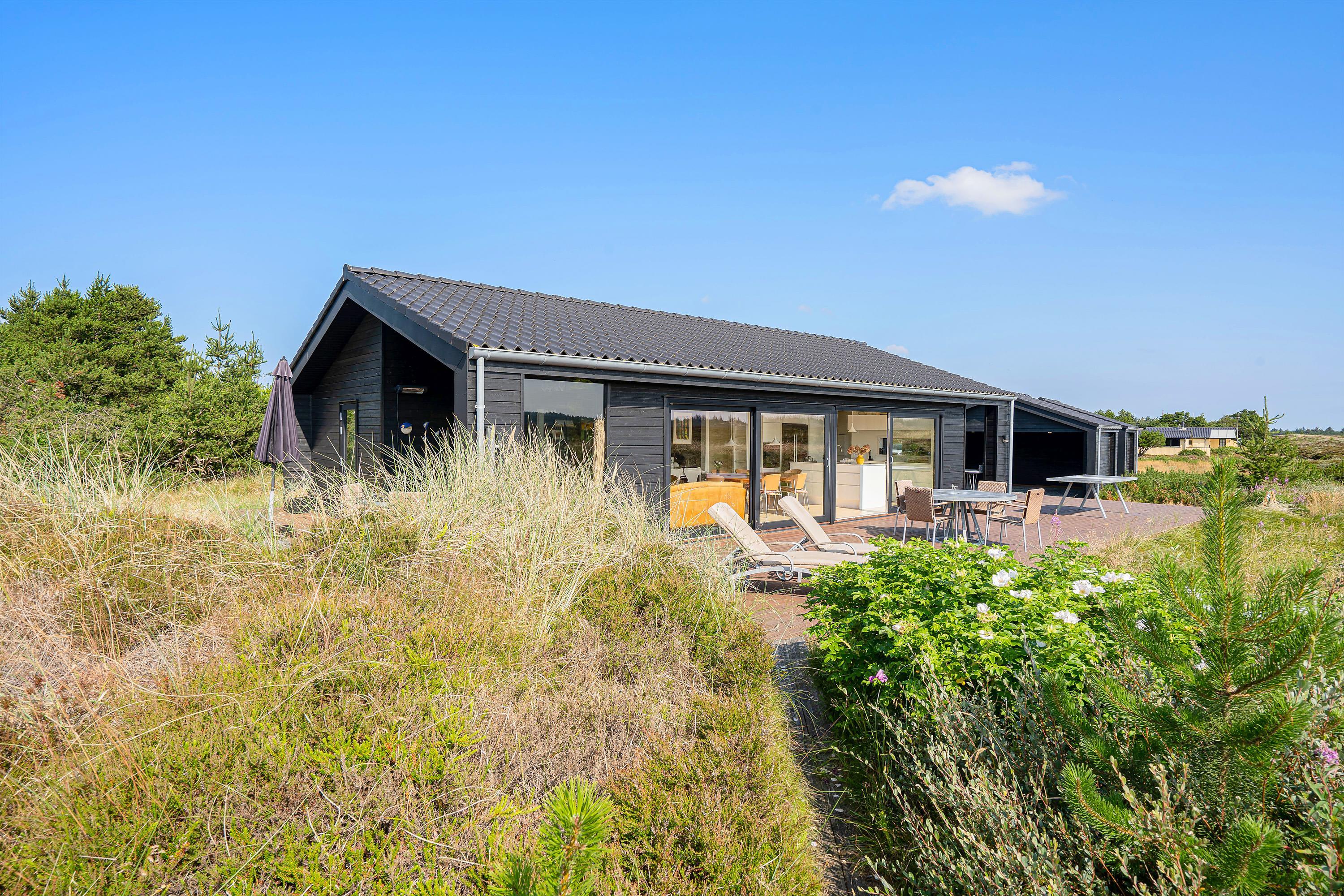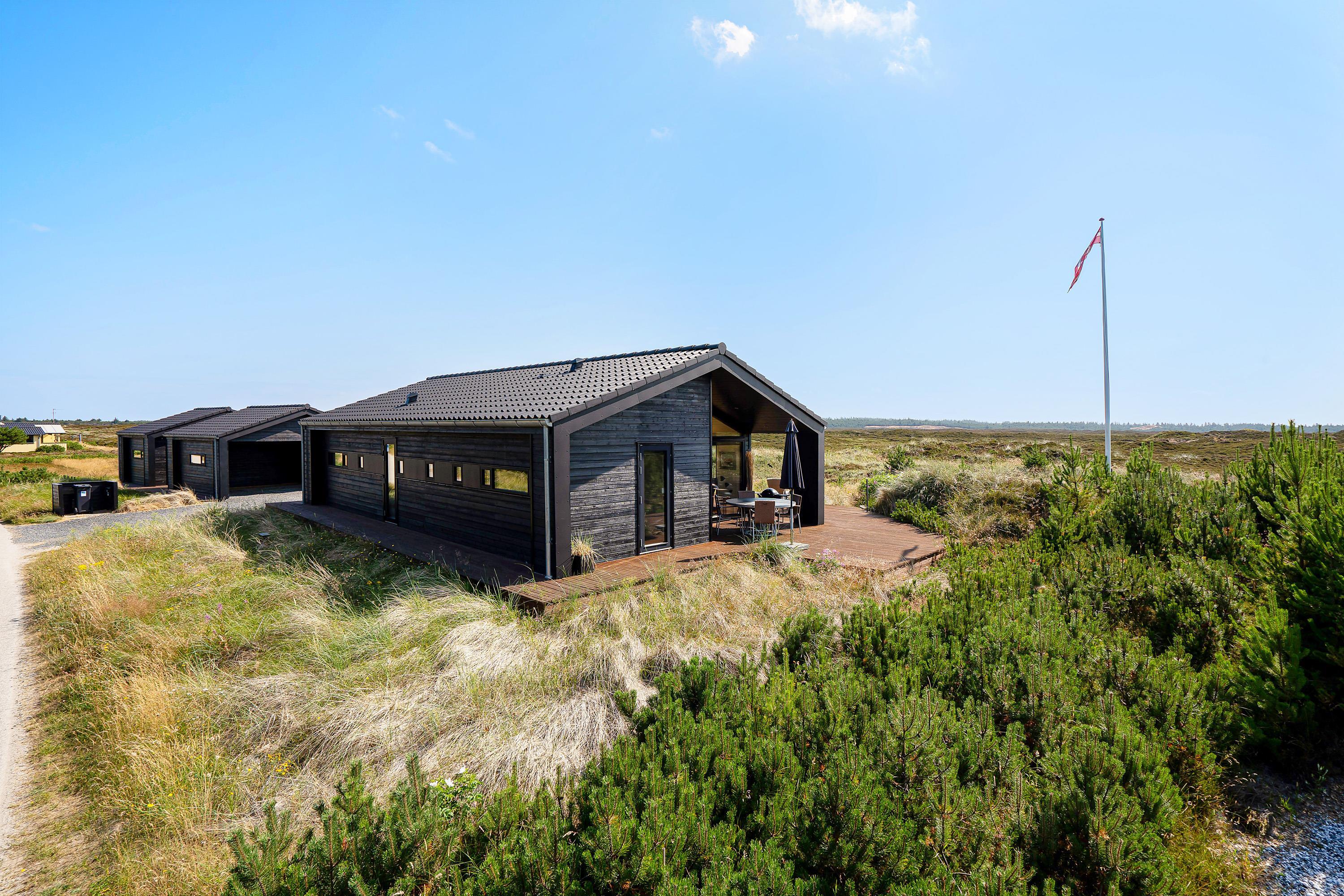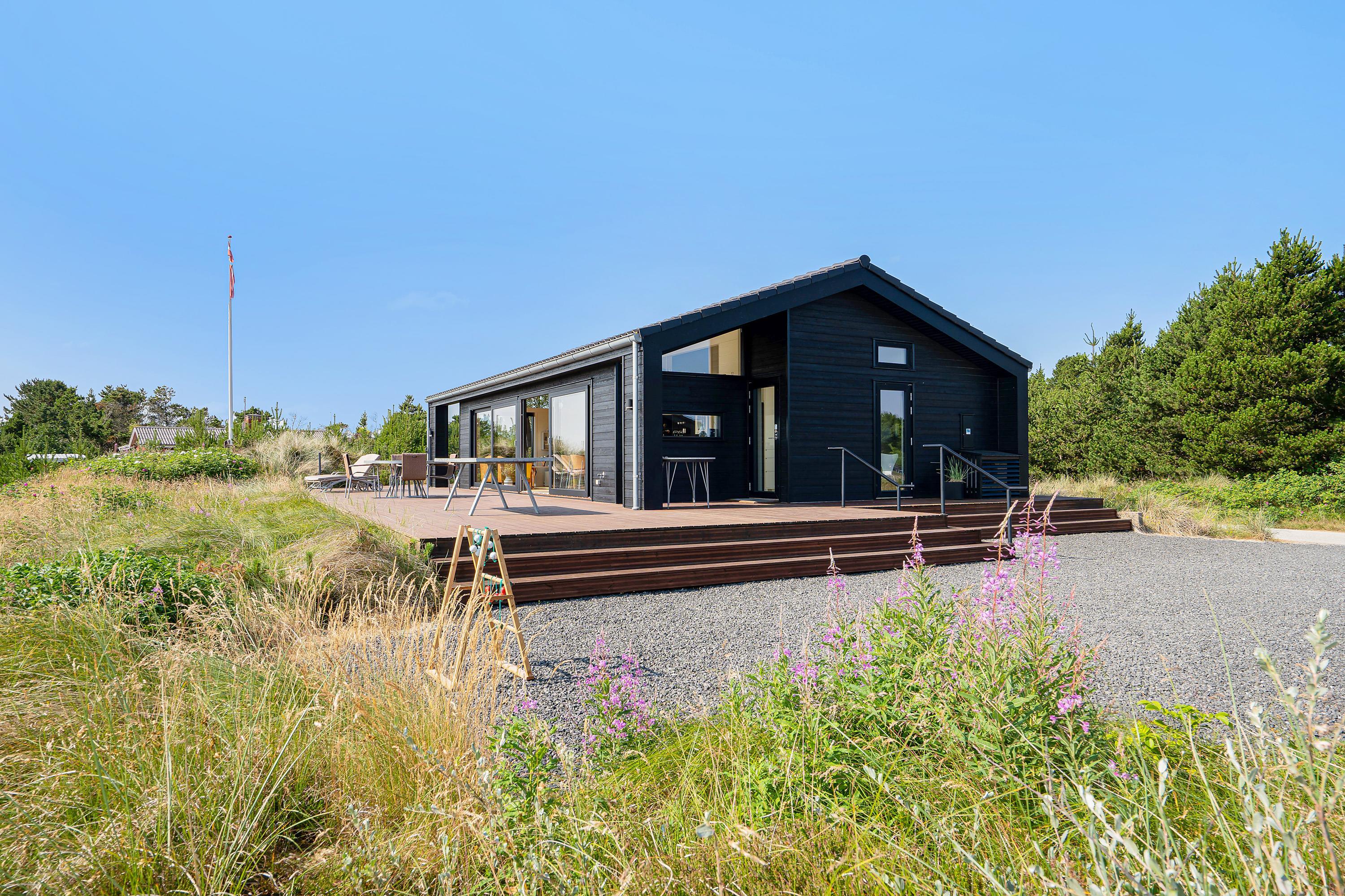 I den skønne badeby Henne Strand finder I på Gøgevej 34 dette moderne sommerhus med plads til 6 personer. Herfra er der ikke langt til hverken stranden eller butikkerne, for det hele er i gåafstand fra adressen. Samtidig er der heller ikke langt til det skønne hedeområde, for det starter allerede lige udenfor jeres dør. De store vinduer fra køkkenalrummet har en vidunderlig udsigt over det store åbne område, og i horisonten er der blot træer og skov.