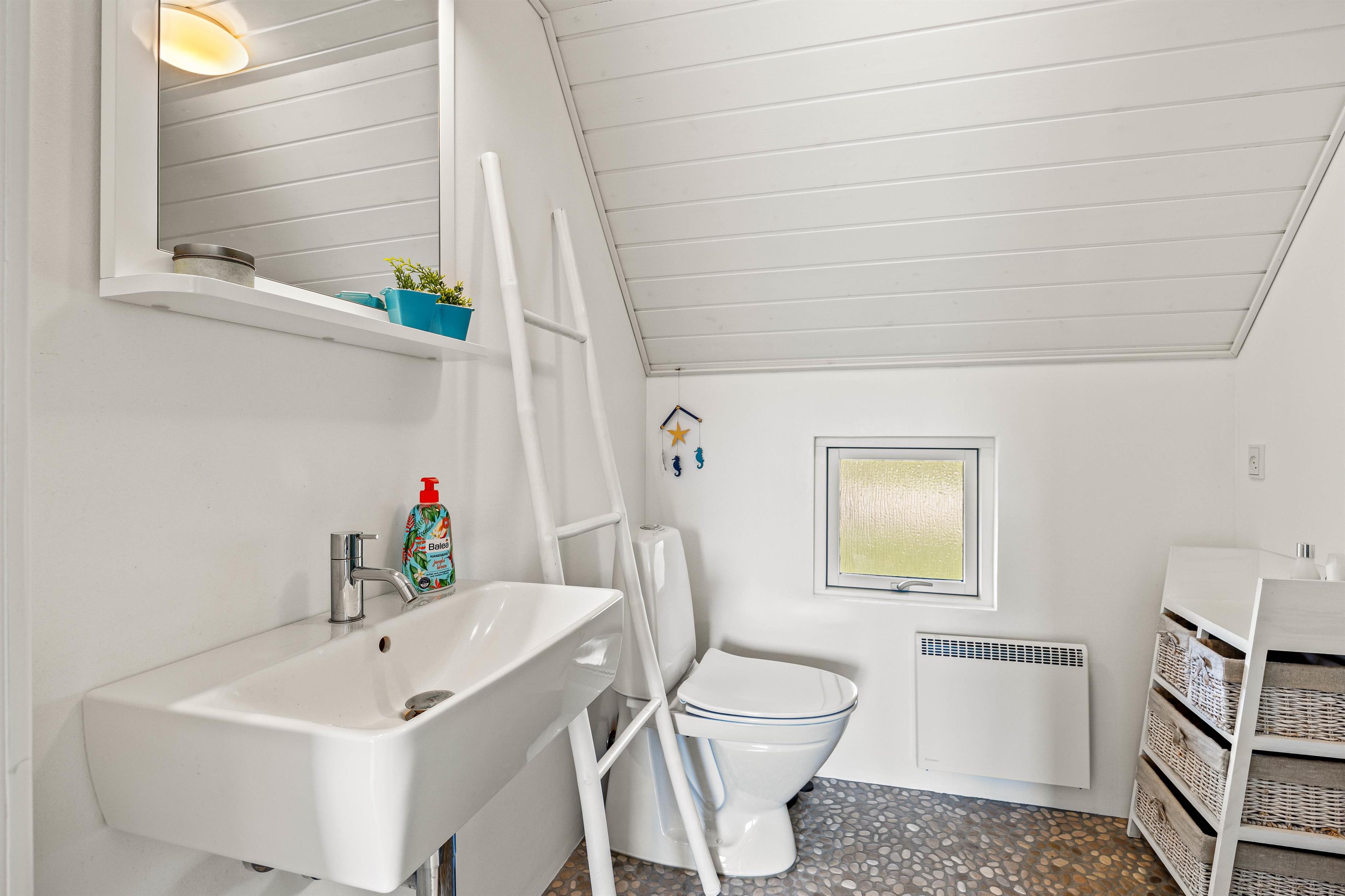 Sommerhuset er udstyret med elvarme og den hyggelige brændeovn sørger for en behagelig temperatur i sommerhusets rum. Og badeværelsets smukke strandstens gulv har indlagt gulvvarme, så I ikke kommer til at fryse fødderne hellere her.