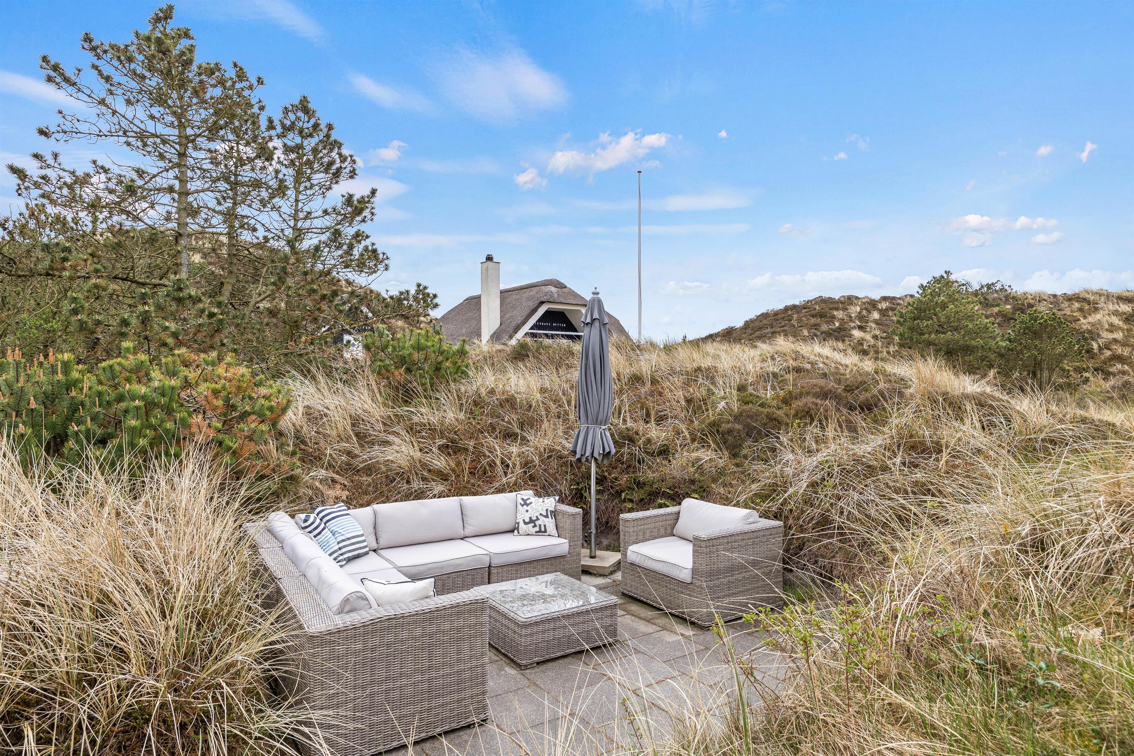 Sommerhuset er beliggende på en stor klitgrund, og med naturen lige udenfor terrasserne er det blot at læne sig tilbage i de skønne havemøbler. Der er terrasser på flere sider af dette sommerhus, og I kan uden tvivl finde en dejlig plet i enten sol eller skygge. Især terrassen med de flotte loungemøbler lægger op til at I får nydt den friske havluft. Og om aftenen kan I benytte sommerhusets gasgrill til at tilberede jeres aftensmad med.