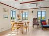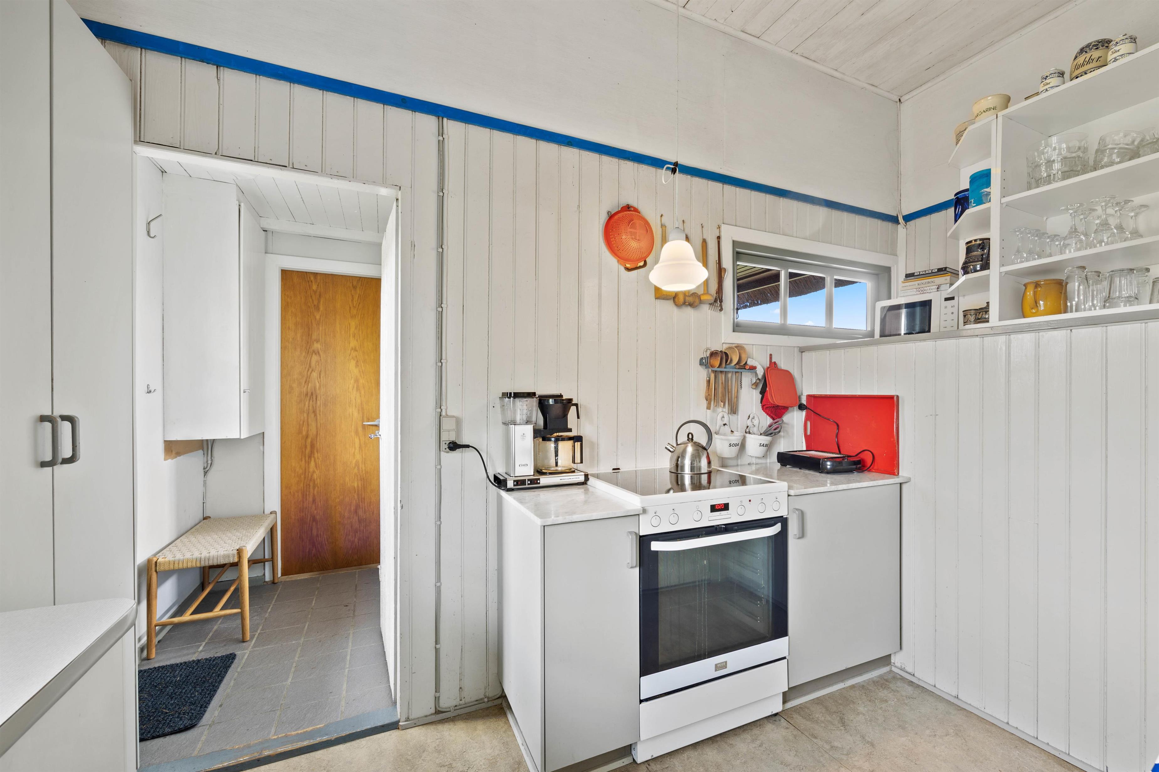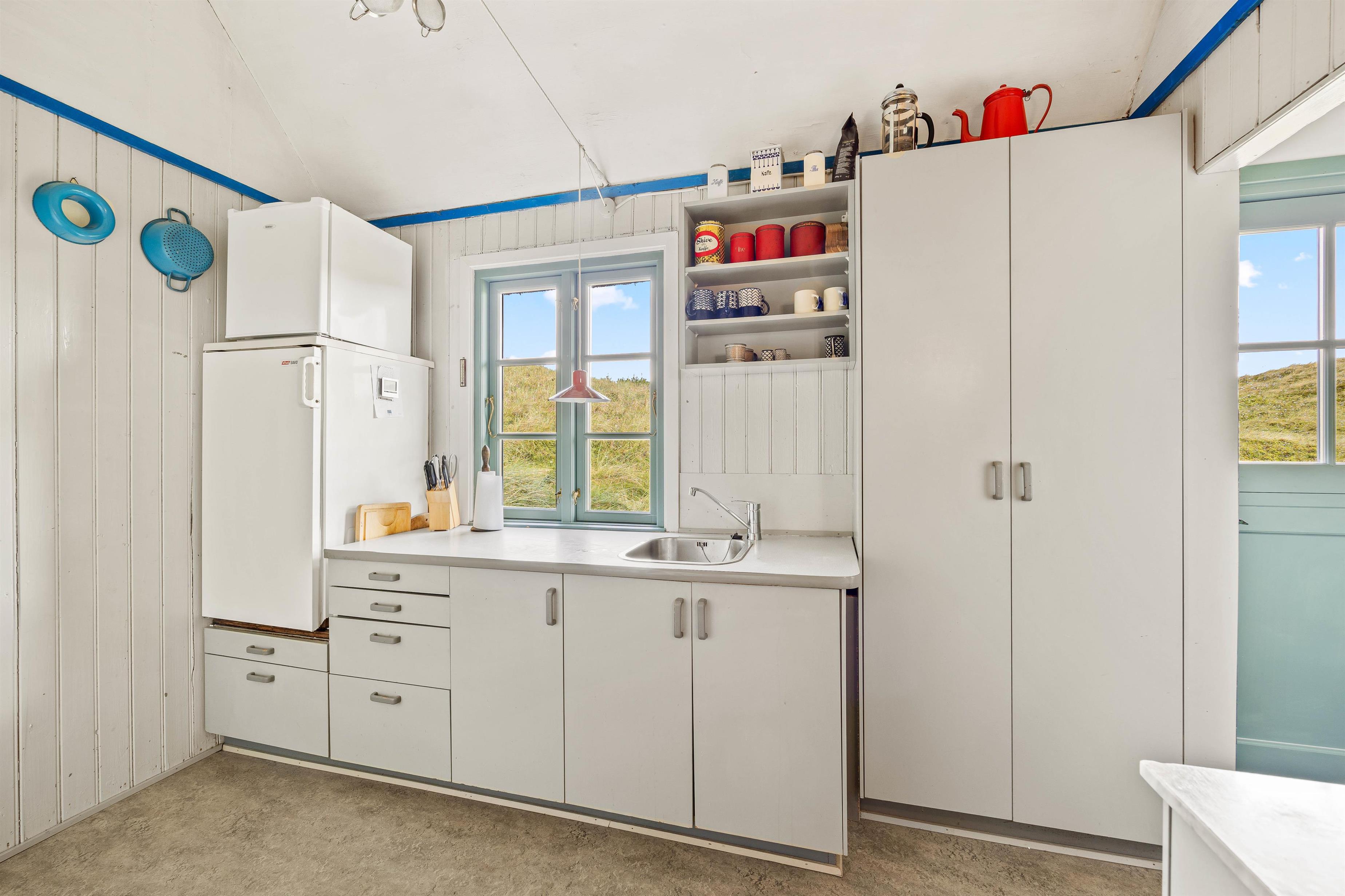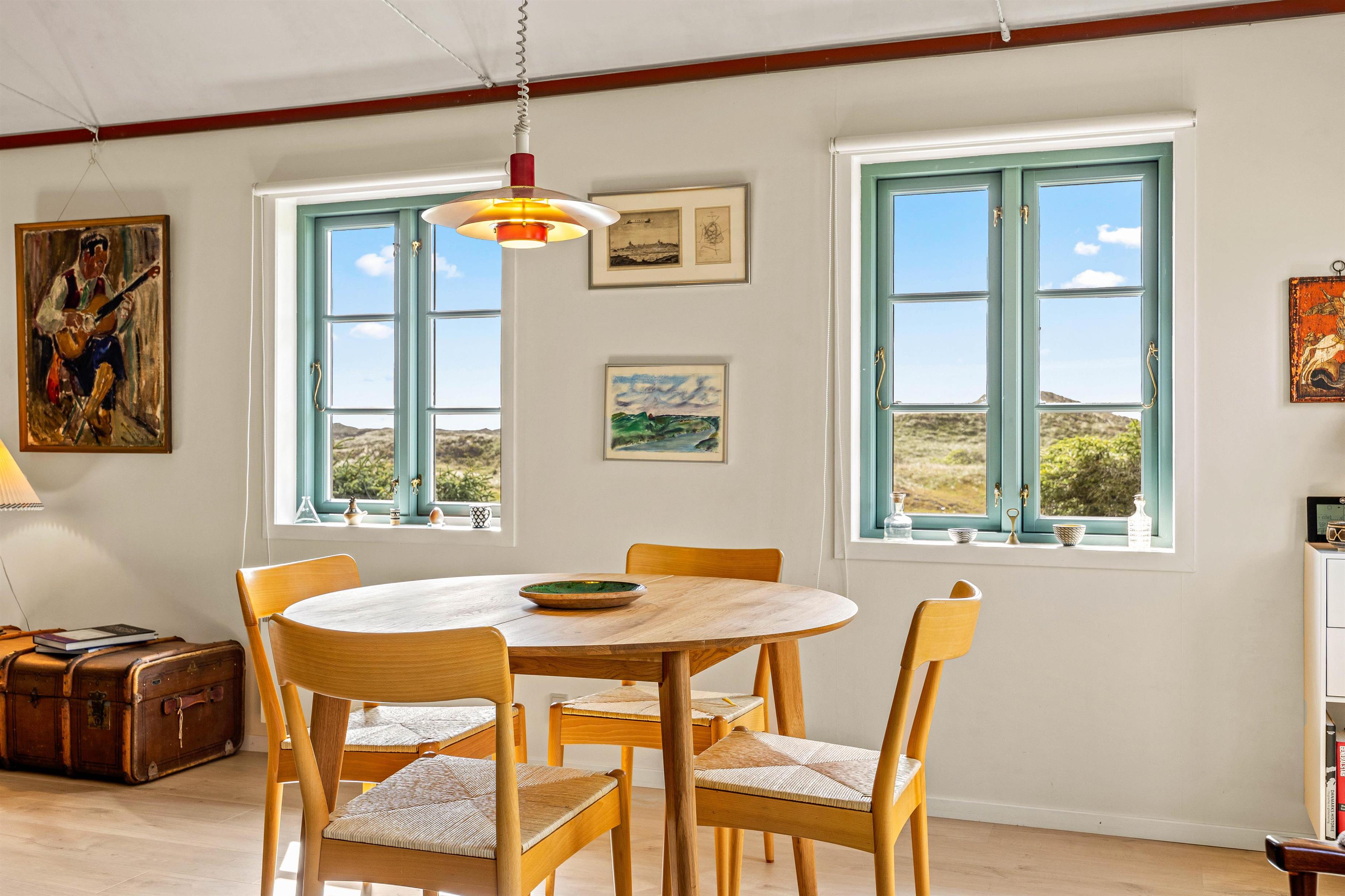 Sommerhusets samlingspunkt er uden tvivl opholdsrummet, hvor stue og spisestue er samlet. Herfra har I panoramaudsigten over Henne Mølle Å og klitterne, der kun afskiller jer fra standen og vesterhavet med 400 meter - et udsigt I aldrig bliver trætte af. Ydermere er der et skønt havblik fra spisestuen.