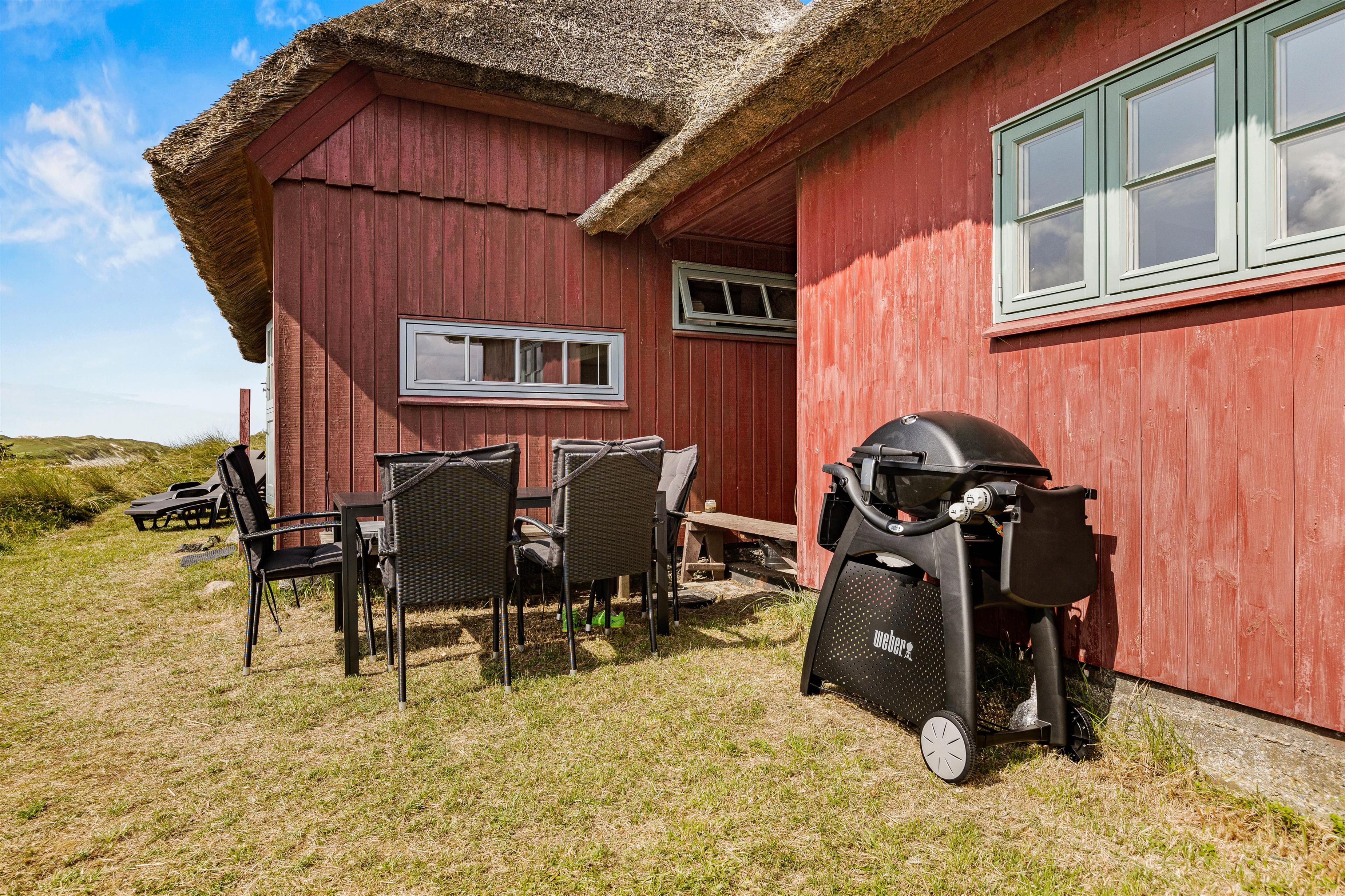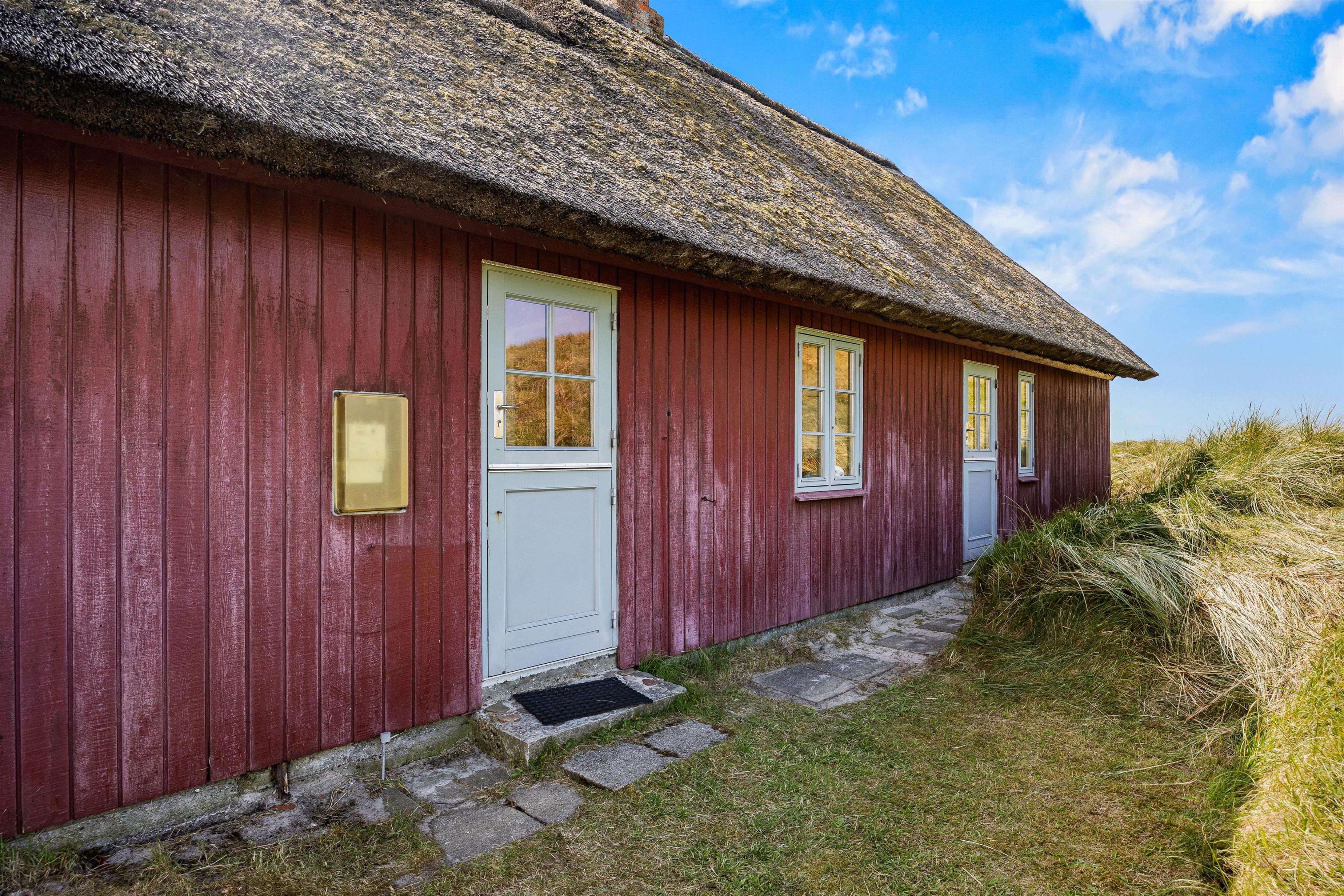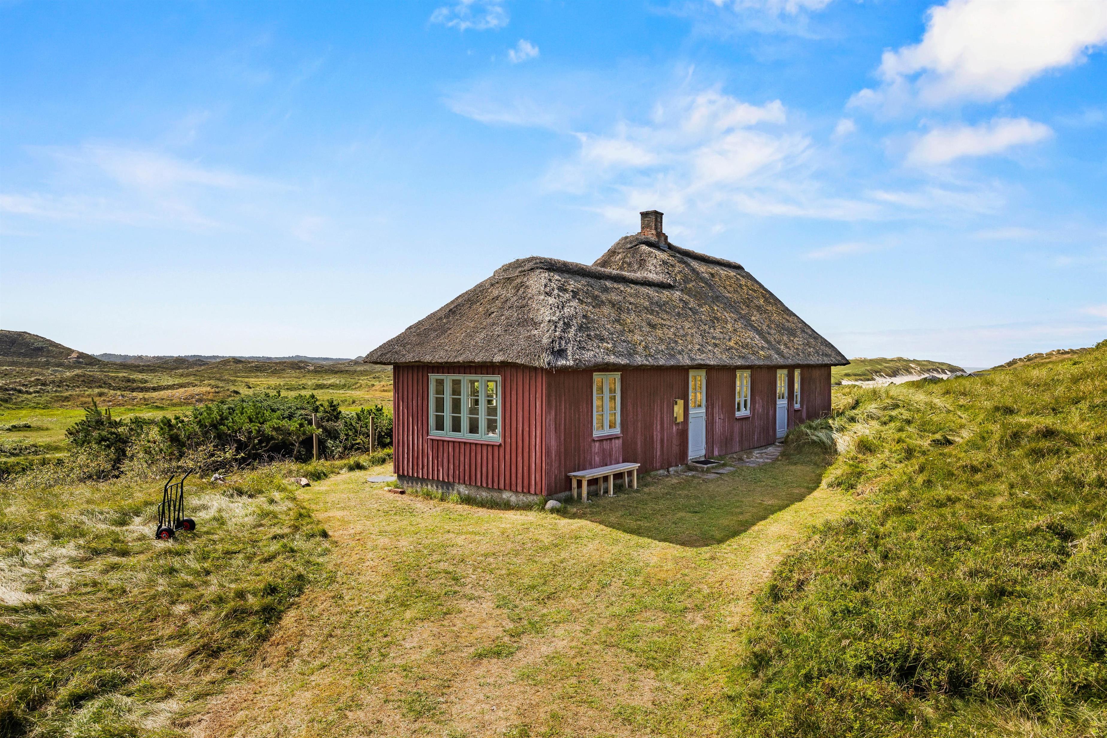 Det stråtækte sommerhus har plads til 4 personer og jeres hund er også velkommen her. Sommerhuset er historisk; det blev opført i 1948 efter det første sommerhus på grunden, som var bygget i 1932, blev jævnet med jorden af de tyskere, der havde boet der under 2. verdenskrig. Begge bygninger blev konstrueret af nu afdøde tømrer Hansen fra den nærliggende by Outrup.