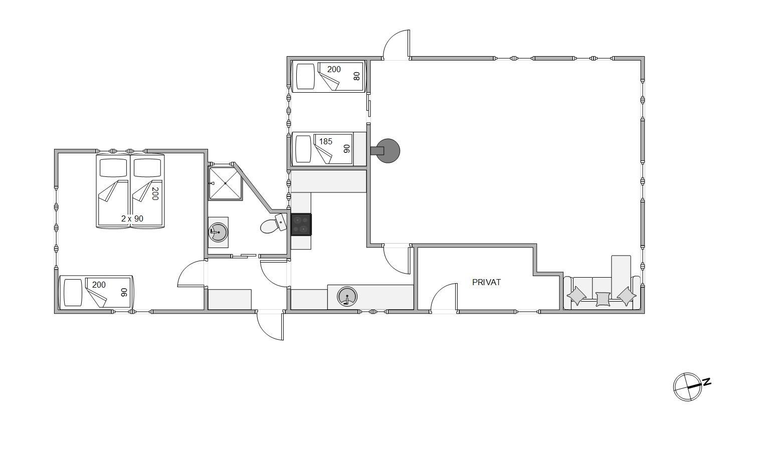 2. soverum/sengestørrelser1X90X200+1X180X200