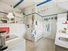 Her i opholdsrummet finder I også brændeovnen, der med sine flammer bringer hyggen, mens I slapper af i hinandens nærvær, spiller kort eller nyder en god film. I kan også benytte jer af varmepumpen, der både er god for indeklimaet og pengepungen.