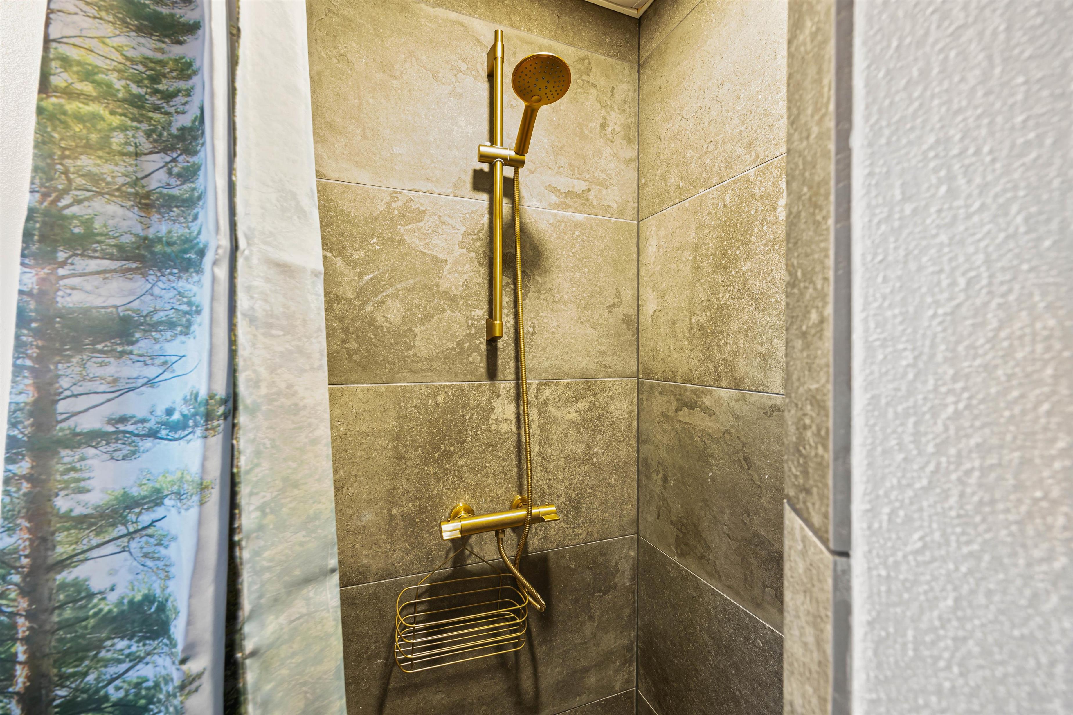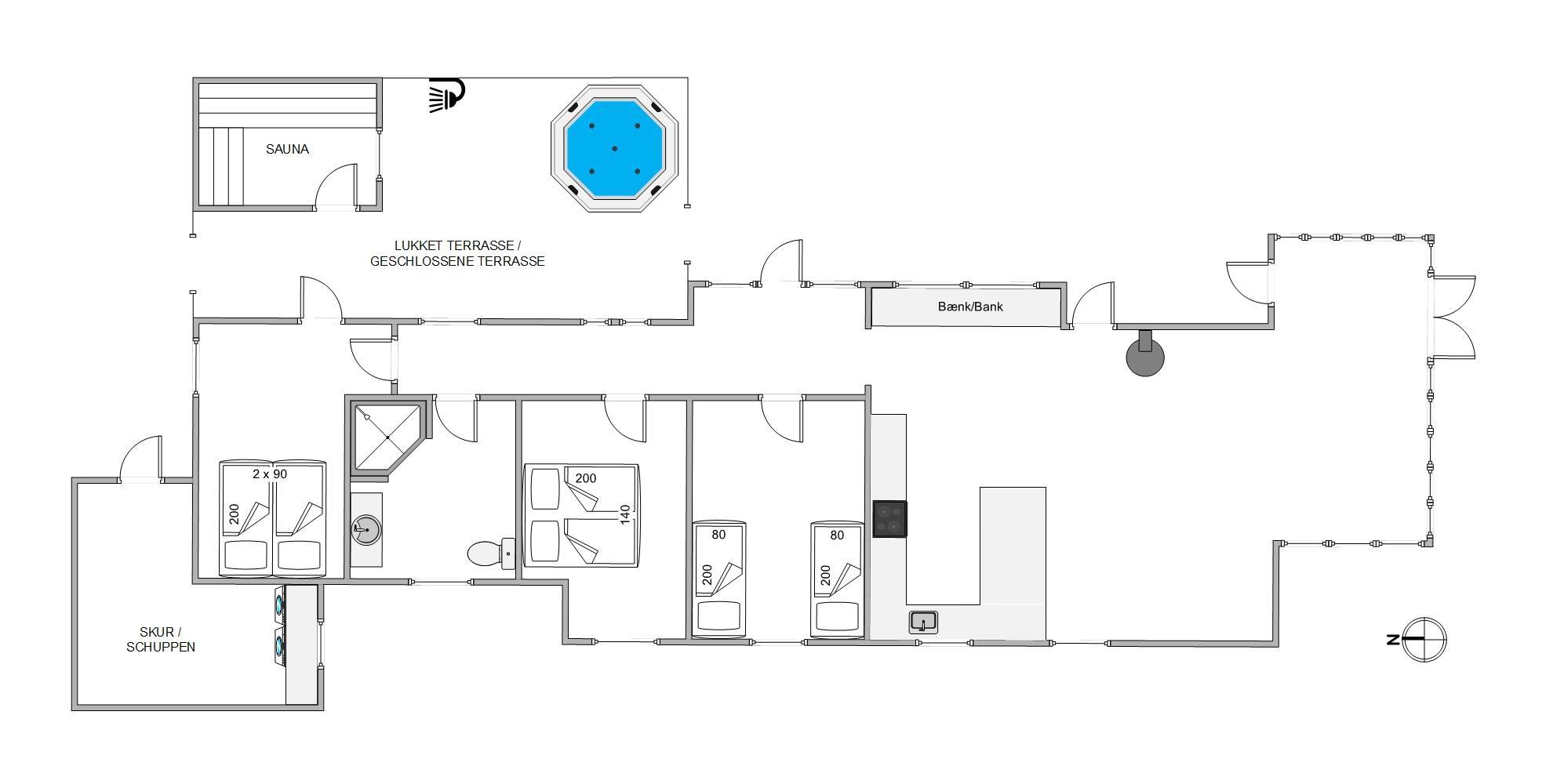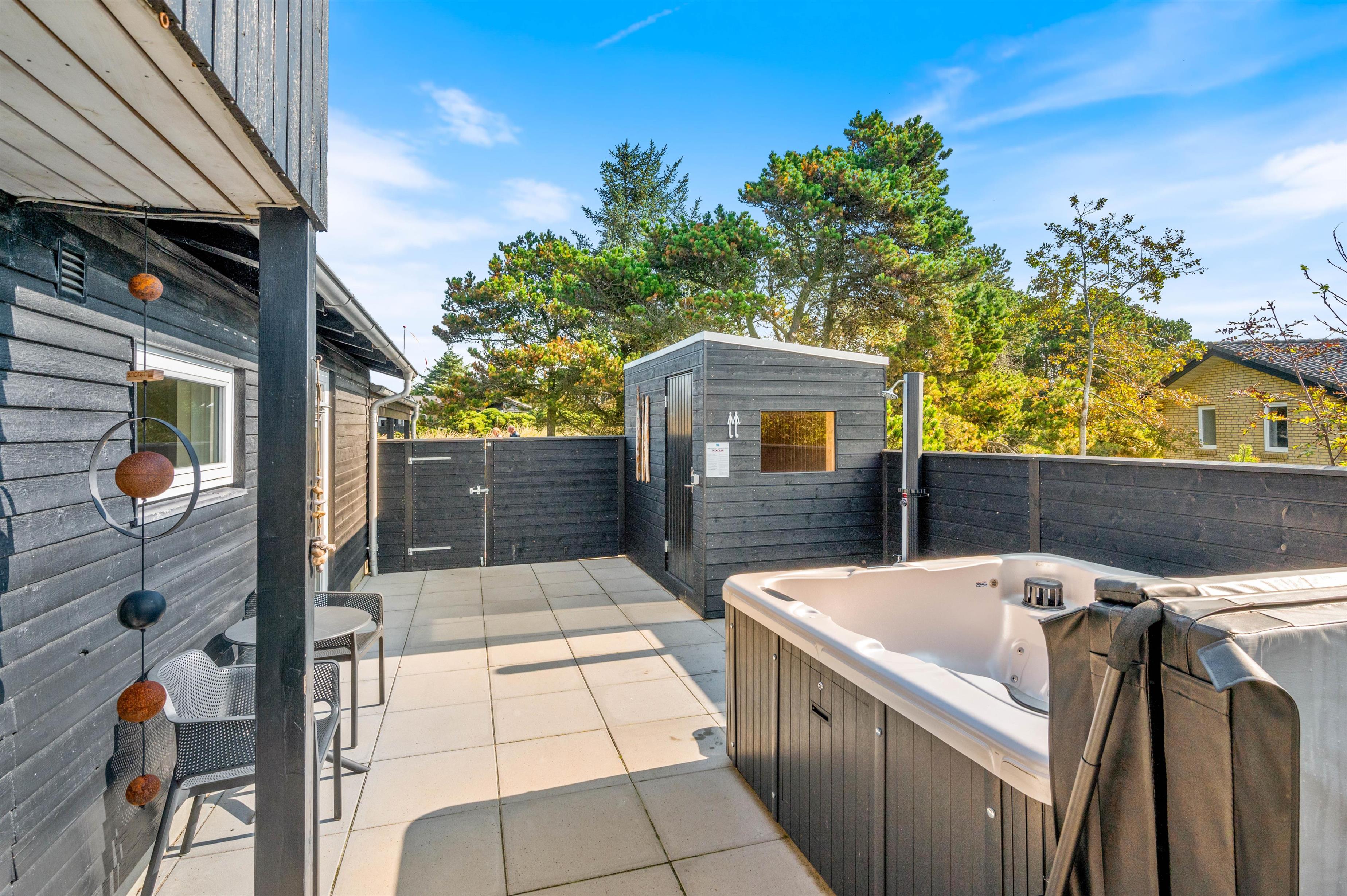 I kan også sætte jer i den skønne udespa, hvor I kan nyde masser af afslapning under åben himmel. Det er især fantastisk under stjernehimlen om aftenen. Derudover har I en udebruser med koldt vand, som I kan blive skyllet under. Udebruseren kan benyttes fra 1. april til 31. oktober.