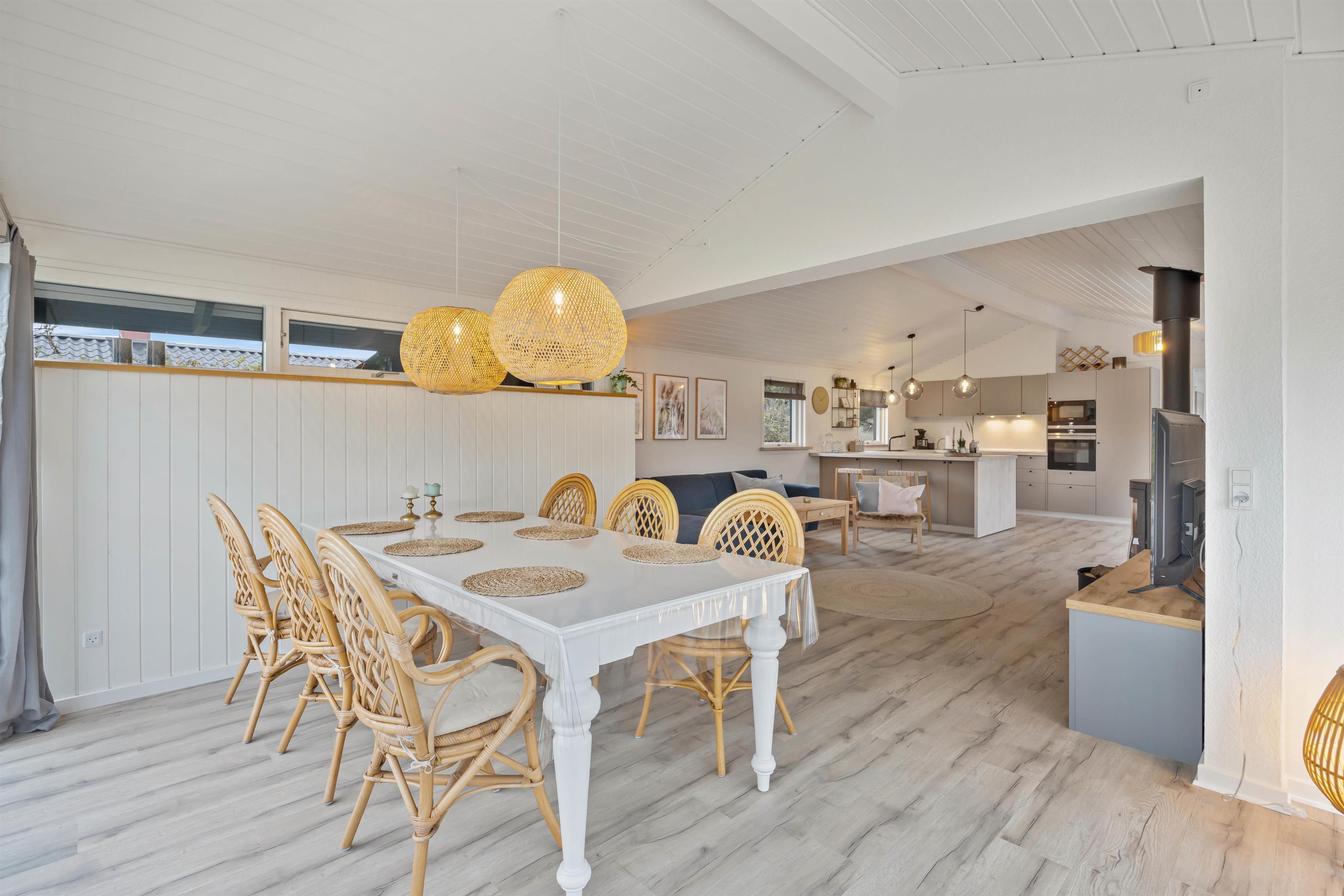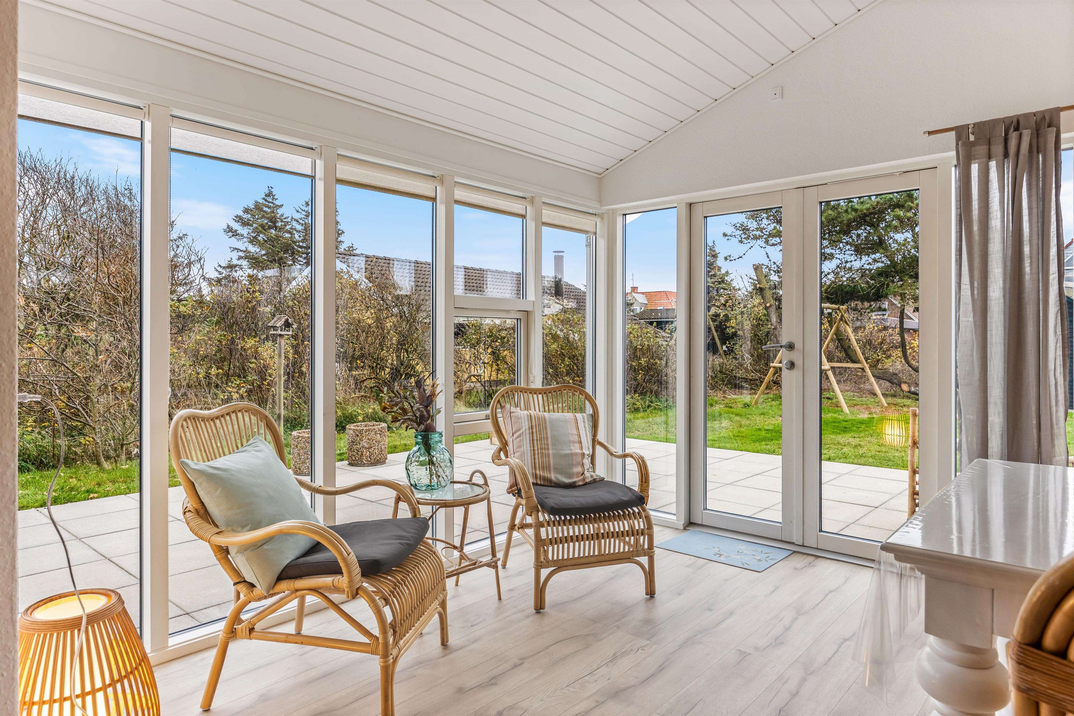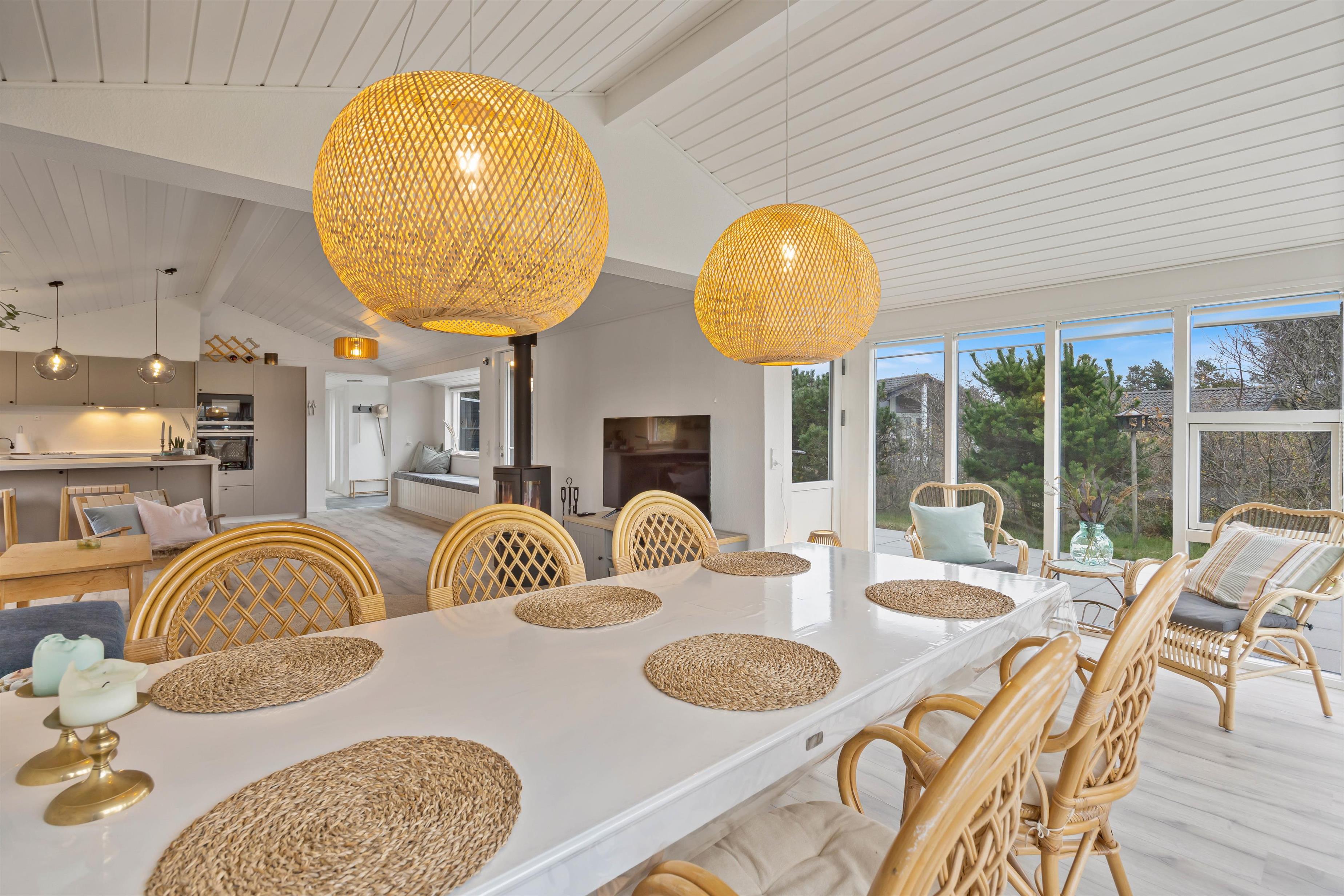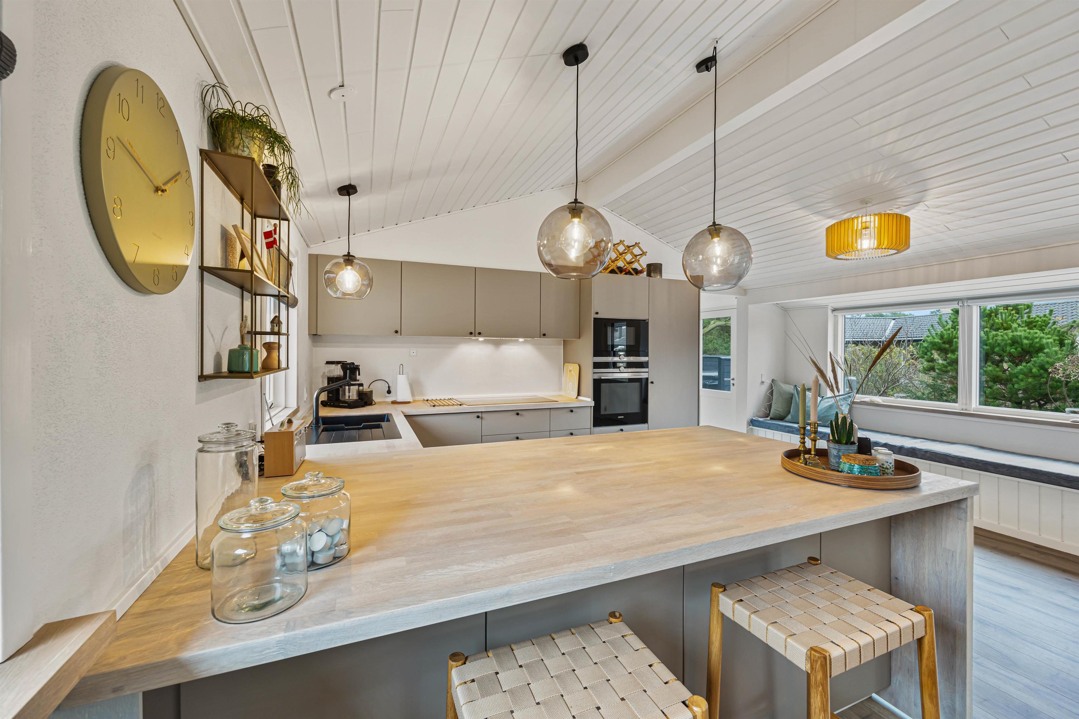 Allerede når I tager første skridt ind i sommerhuset på Rylevej 1 i Henne Strand, vil I blive mødt af sommerhusets indbydende og moderne indretning. Her er der desuden et skønt lysindfald, der komplimenterer indretningen og er med til at skabe den rette ferieatmosfære.