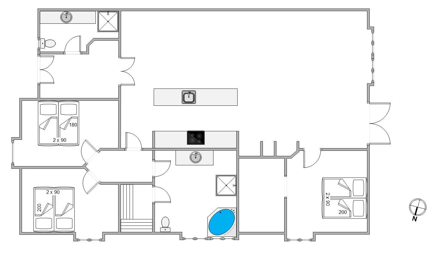 I det åbne og moderne køkken har I god plads og godt udstyr til at forberede dagens måltider, og samtidig har I udsigt til den elegante stue med lækre lædermøbler, fladskærms-tv og brændeovn. Her kommer I til at tilbringe masser af hyggelige feriestunder med film, kortspil og god varme fra den knitrende brændeovn.