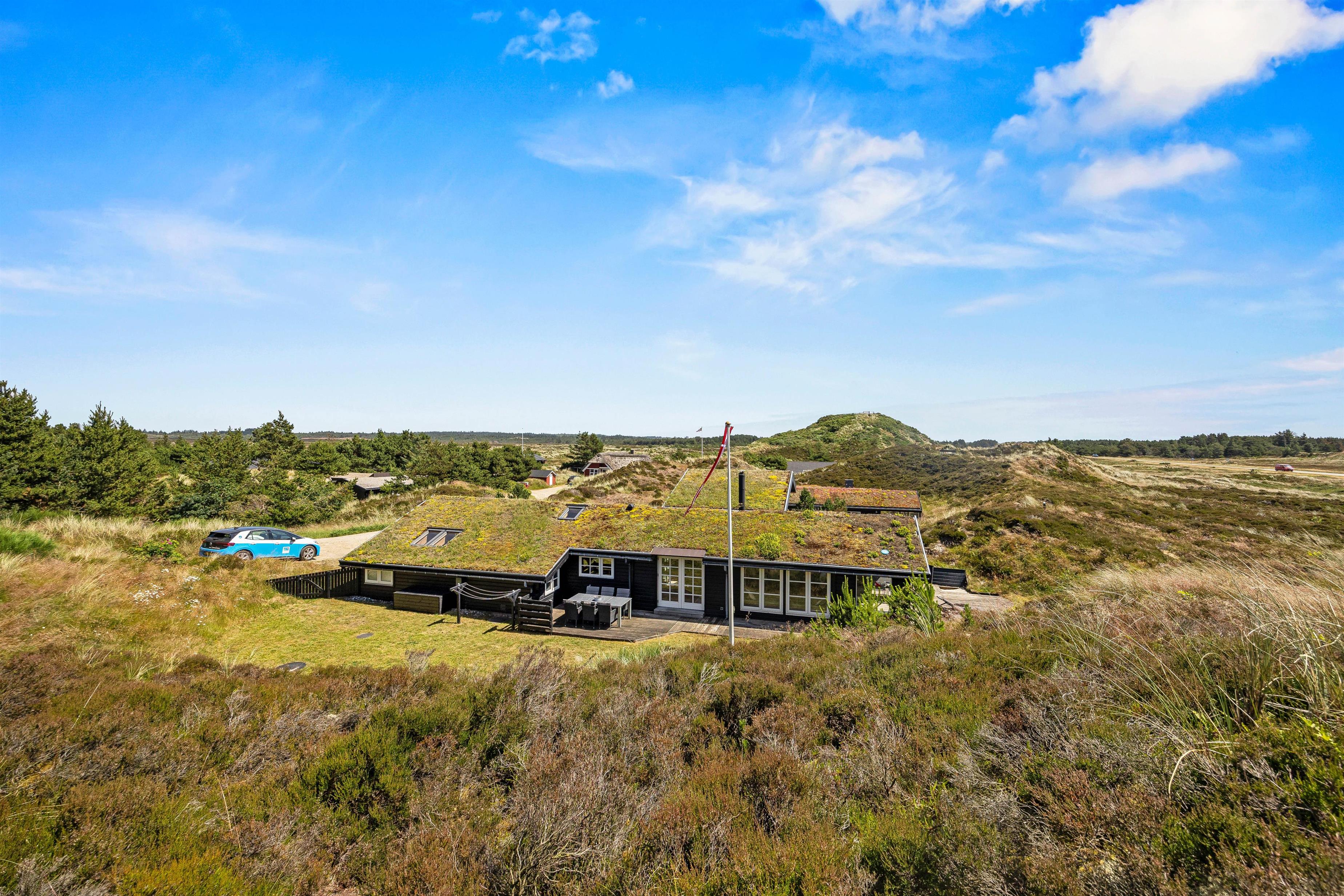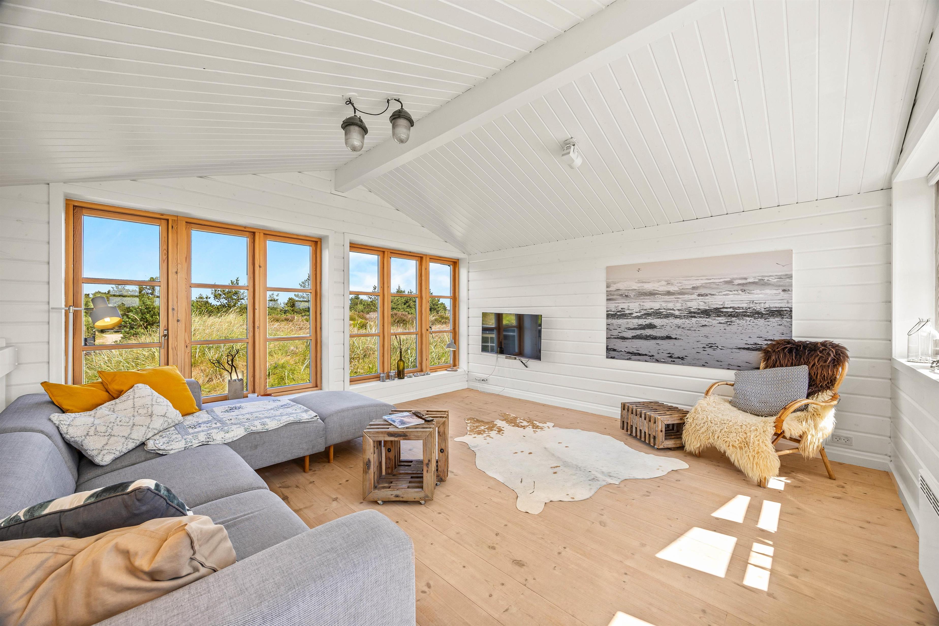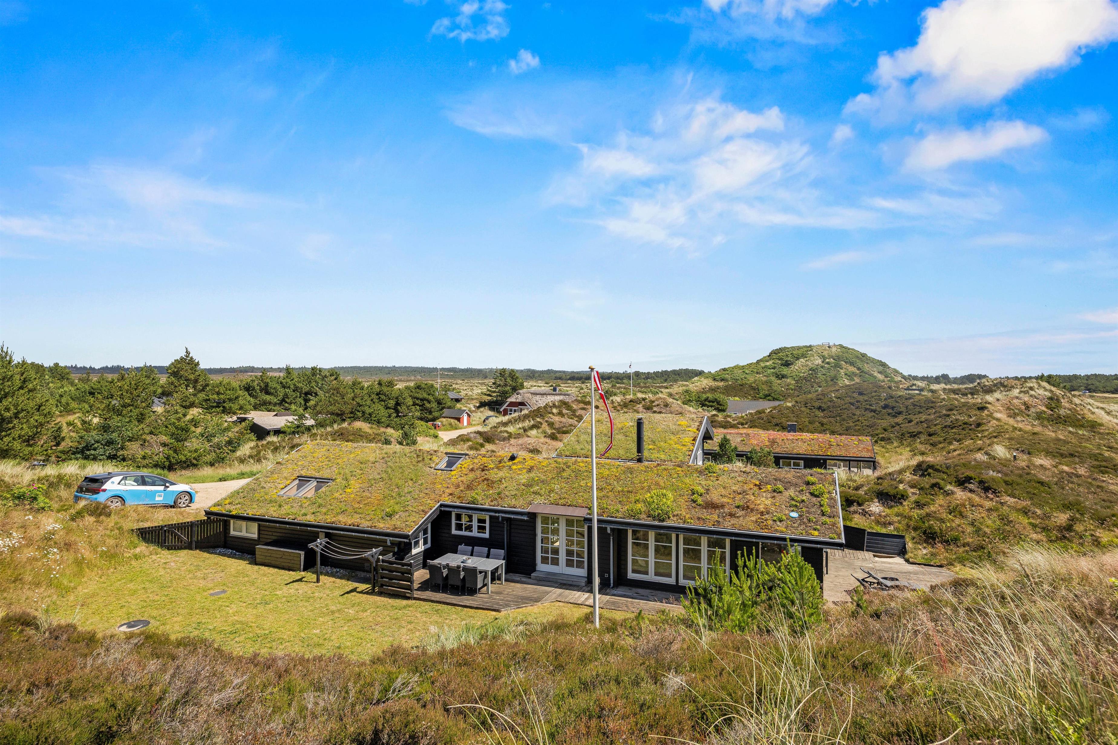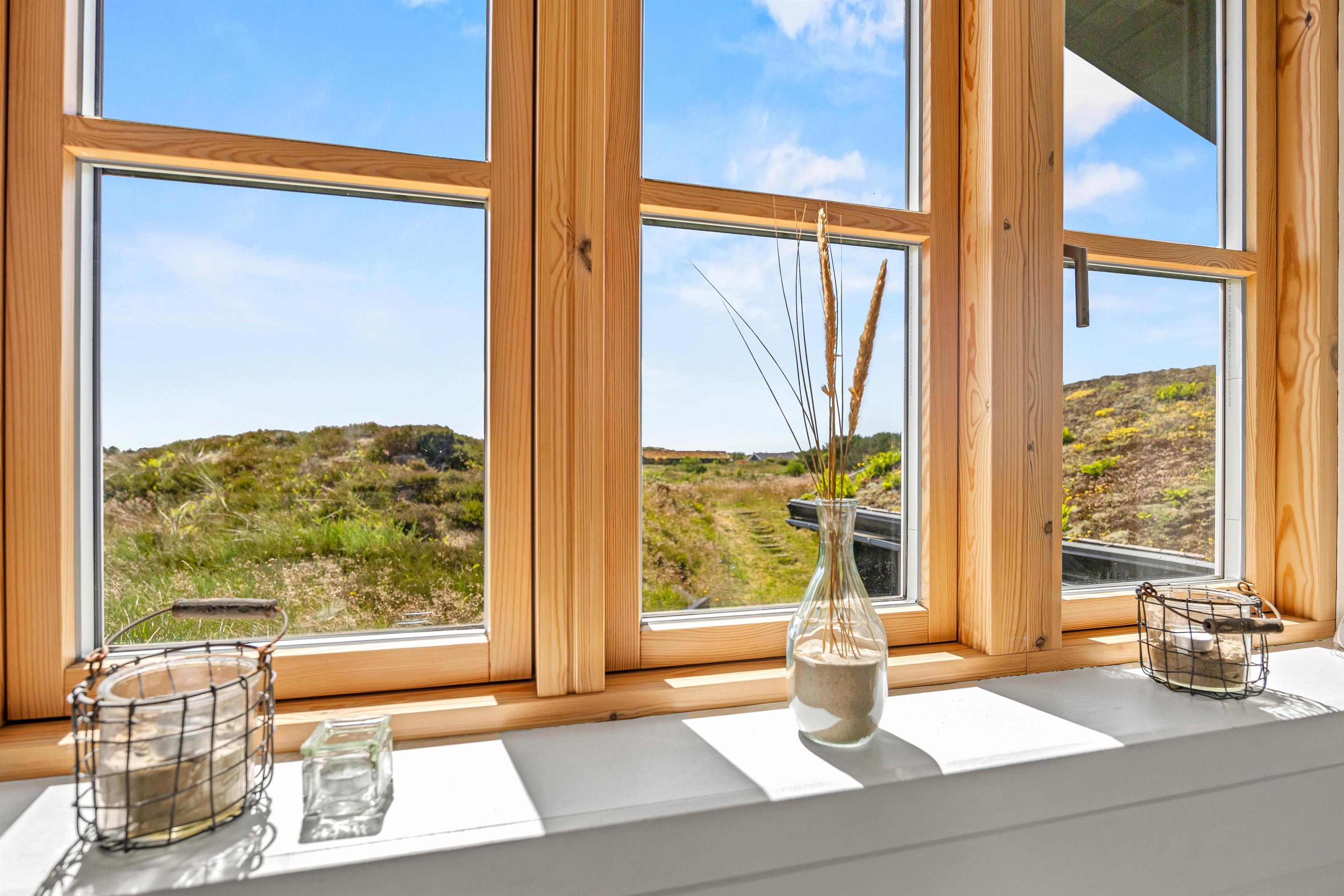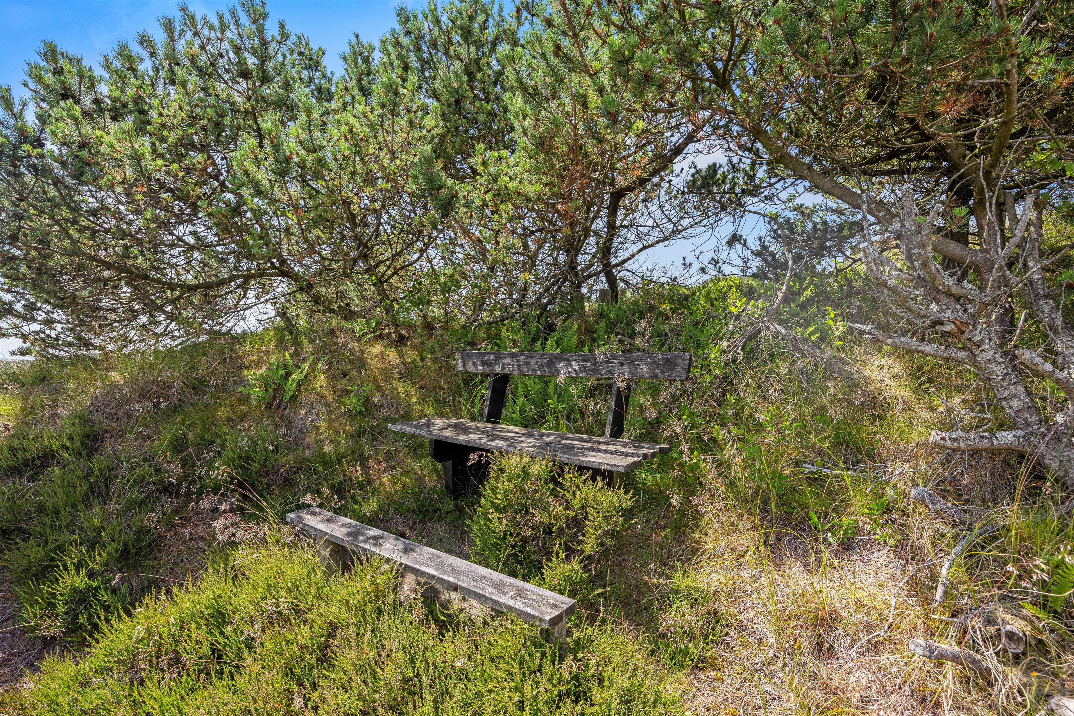 Feriehuset på Tjurvej 44 er beliggende på en storslået naturgrund, og de omkringliggende klitter skærmer for vinden. Udenfor venter jer en dejlig træterrasse, som kan tilgås fra stuen. Terrassen er delvist overdækket – perfekt til de lune sommeraftner, hvor der naturligvis skal grilles - her står en kulgrill til rådighed, og I kan nemt tilberede et lækkert måltid og nyde et køligt glas rosé hertil.