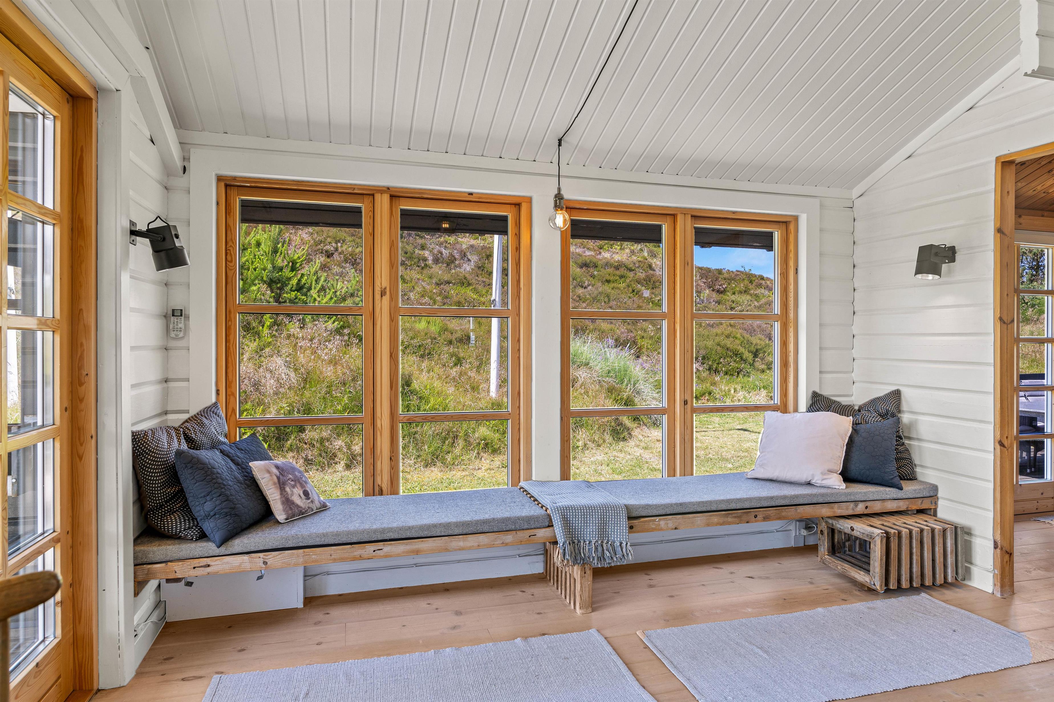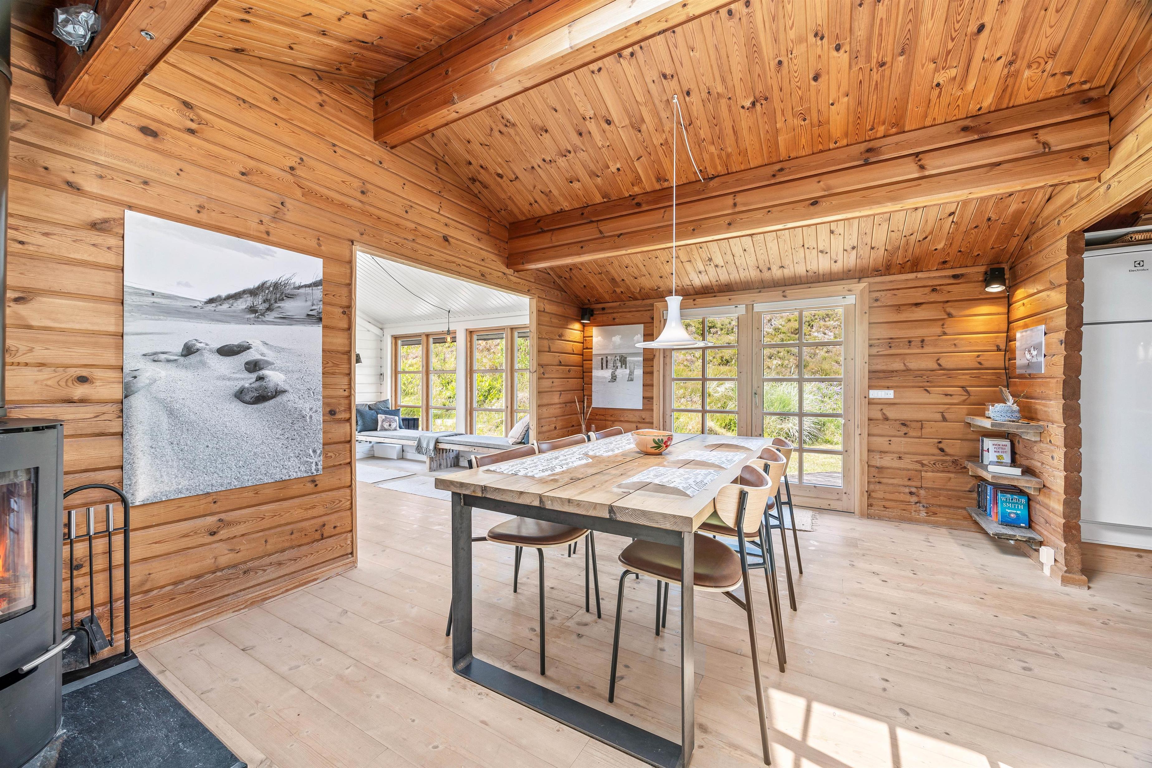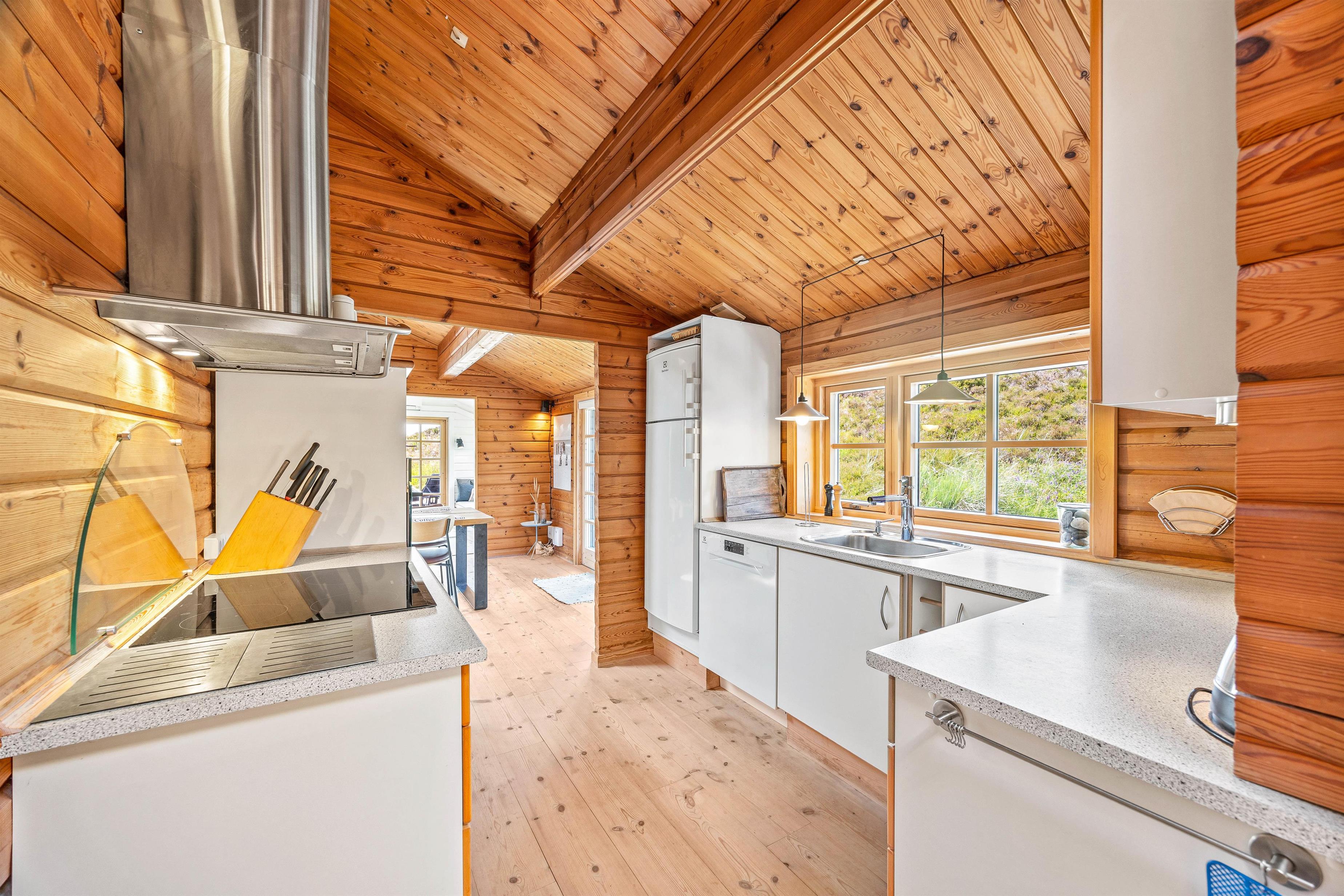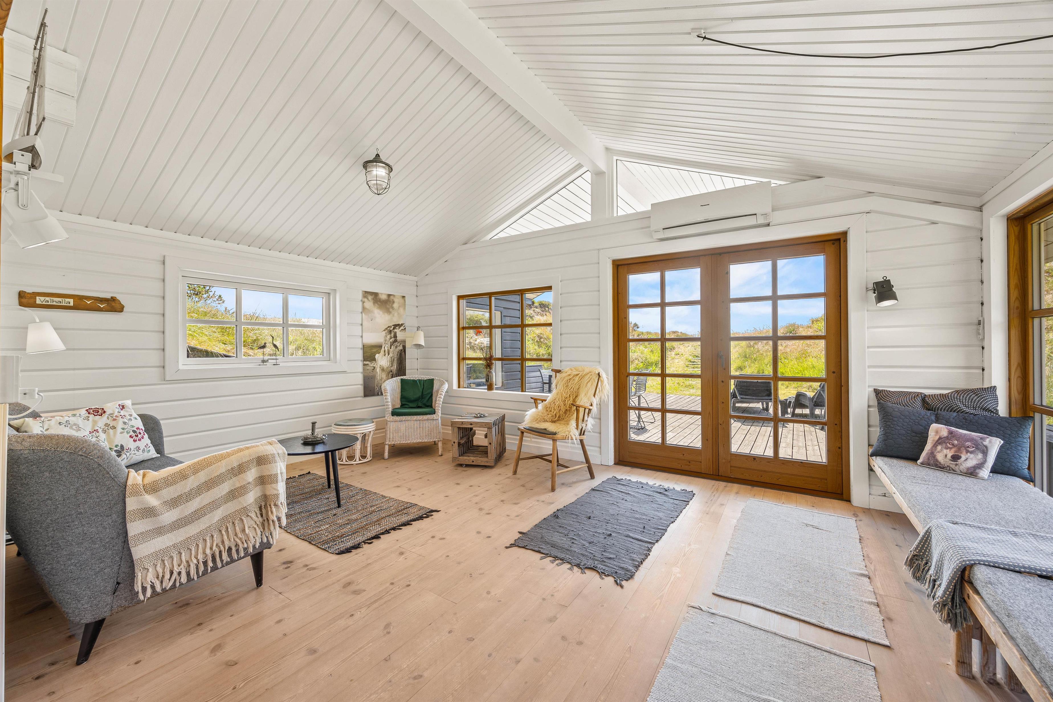 Feriehuset på Tjurvej 44 er beliggende på en storslået naturgrund, og de omkringliggende klitter skærmer for vinden. Udenfor venter jer en dejlig træterrasse, som kan tilgås fra stuen. Terrassen er delvist overdækket – perfekt til de lune sommeraftner, hvor der naturligvis skal grilles - her står en kulgrill til rådighed, og I kan nemt tilberede et lækkert måltid og nyde et køligt glas rosé hertil.