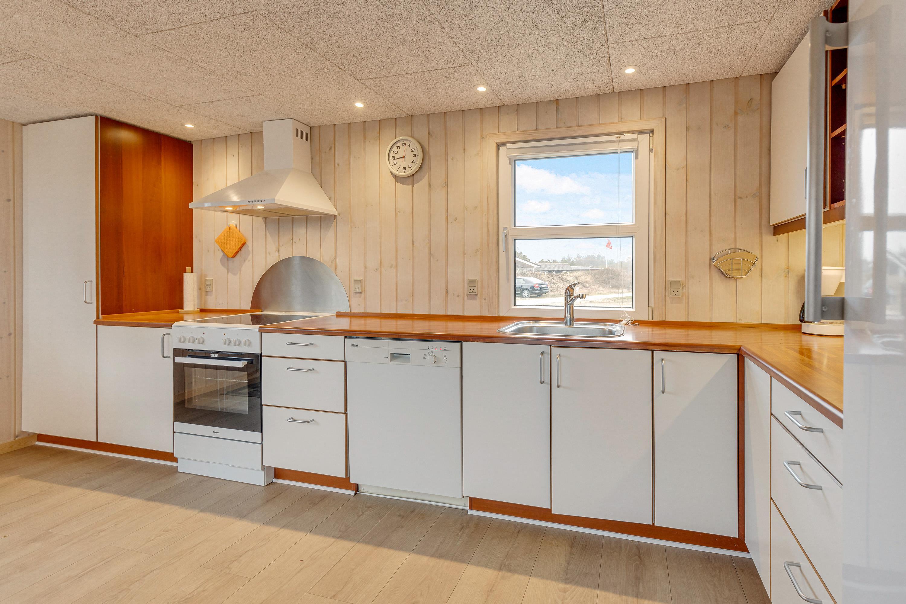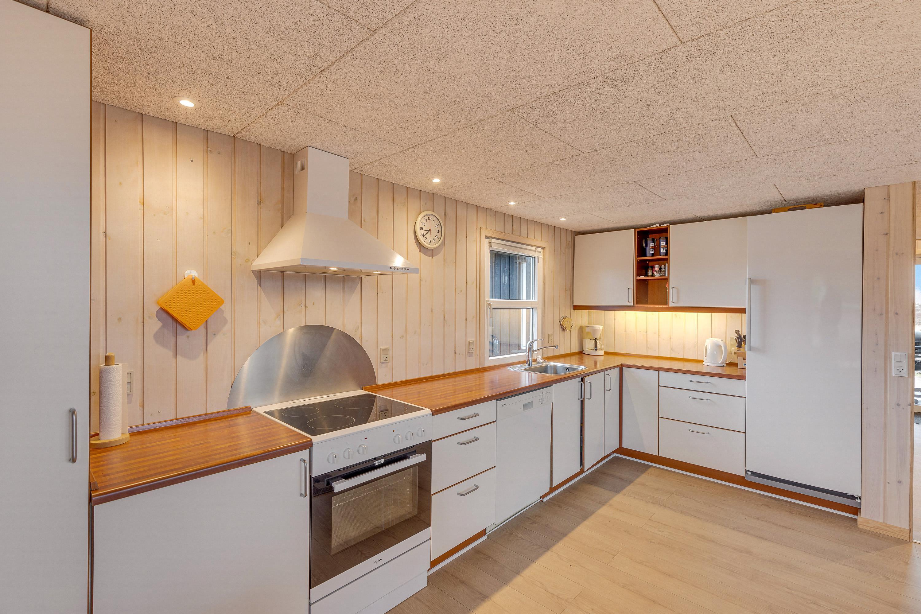 Ferieboligen er indrettet med 2 badeværelser, så I slipper for kø til brusebadet om morgenen. Der er også en energivenlig varmepumpe og en brændeovn i køkkenalrummet, som tilfører omgivelserne en ekstra portion hyggelig, klassisk sommerhusstemning.