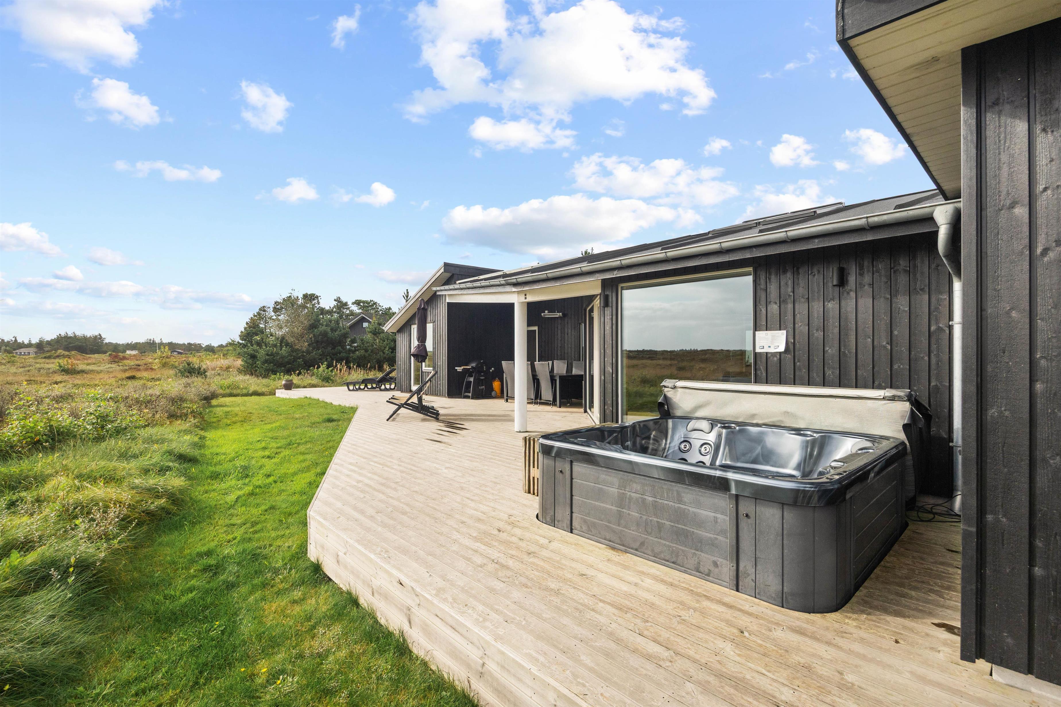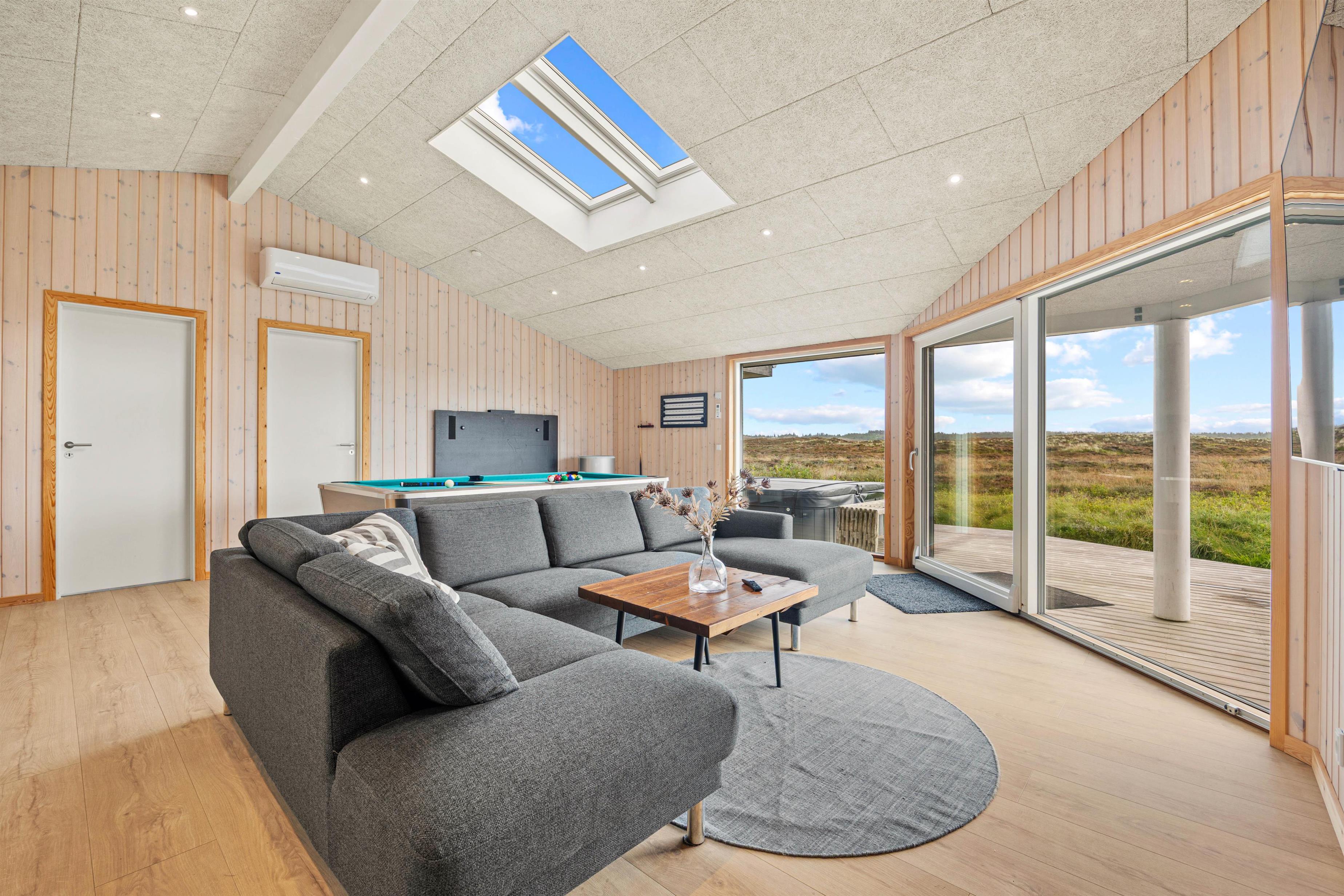Dette moderne aktivitetshus til 8 personer i Henne Strand har alt, hvad feriehjertet begærer: Plads til hele familien, aktivitetsområde med billard og bordtennis, wellness med udendørs spa og udesauna og sidst, men ikke mindst, en fantastisk beliggenhed lige ud til den uspolerede hede og kun 10 minutters gang fra Henne Strands centrum. Hunden er desuden hjerteligt velkommen.