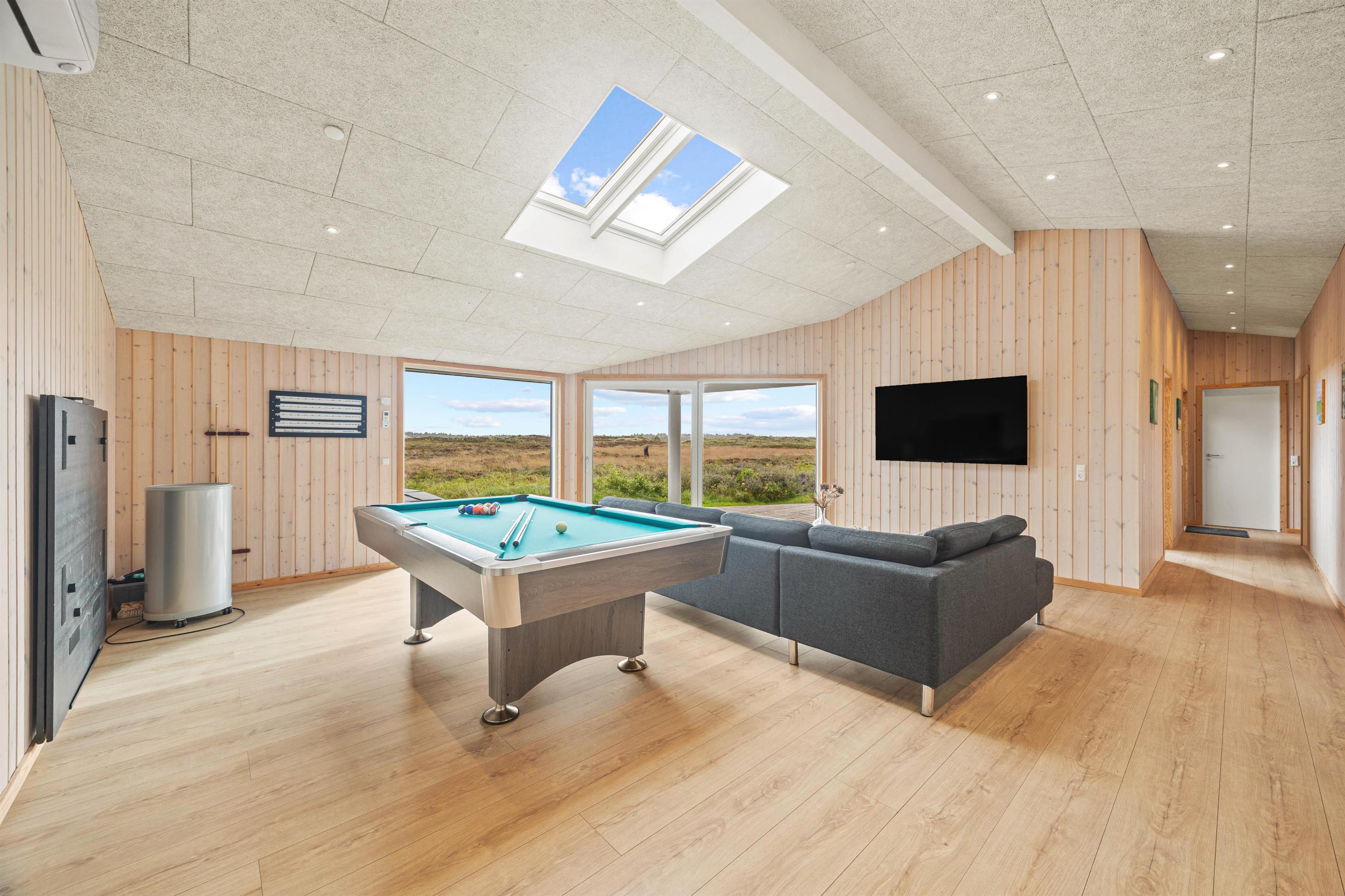 På Drosselvej 14 i Henne Strand er rammerne sat for en storslået ferie med familie eller venner, hvor der er noget for enhver smag. Holder I af at være aktive, og kan I bare ikke sidde stille? Så kan I søge mod aktivitetsområdet, hvor I både kan udfordre hinanden i et spil billard og bordtennis.