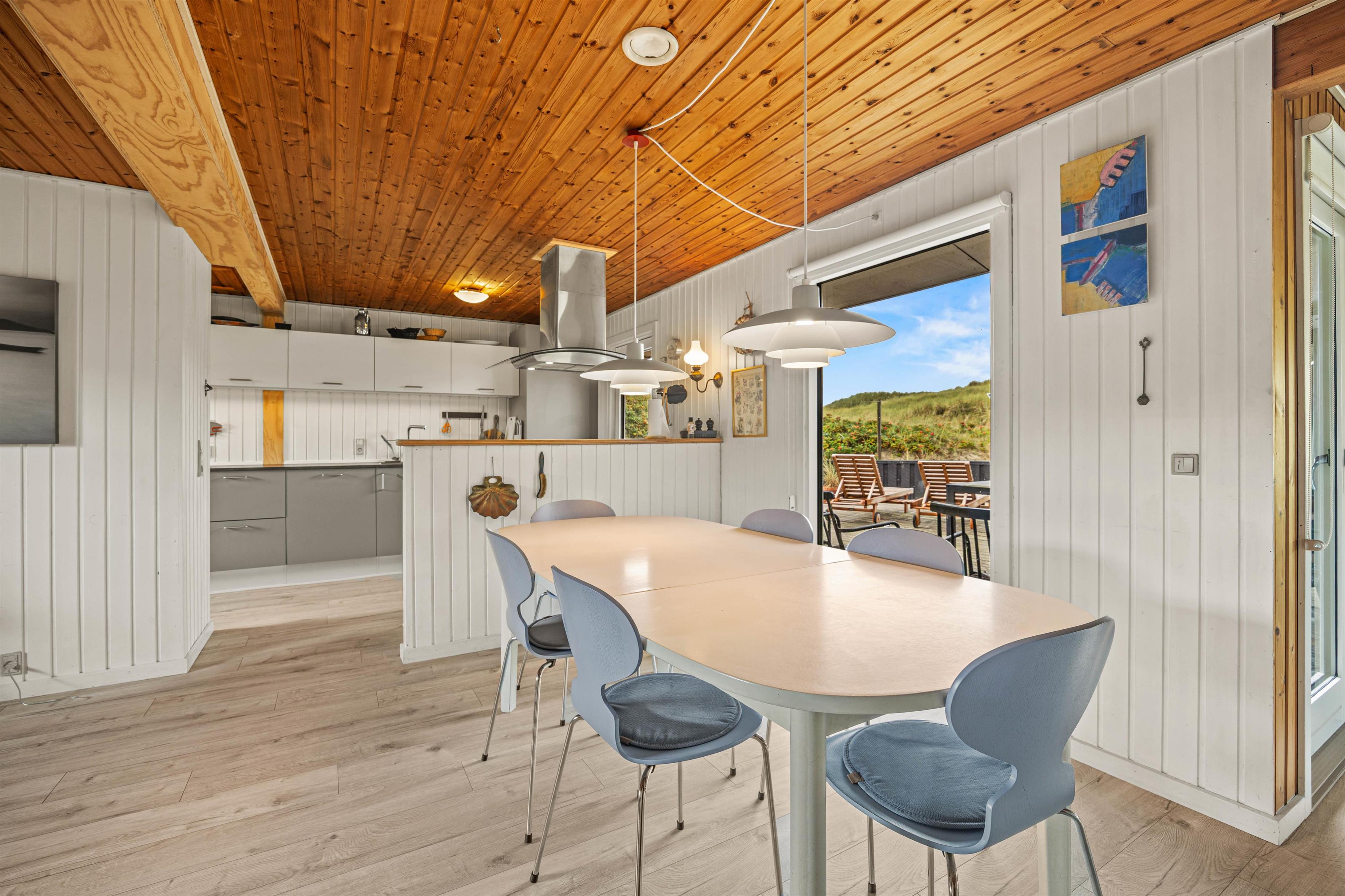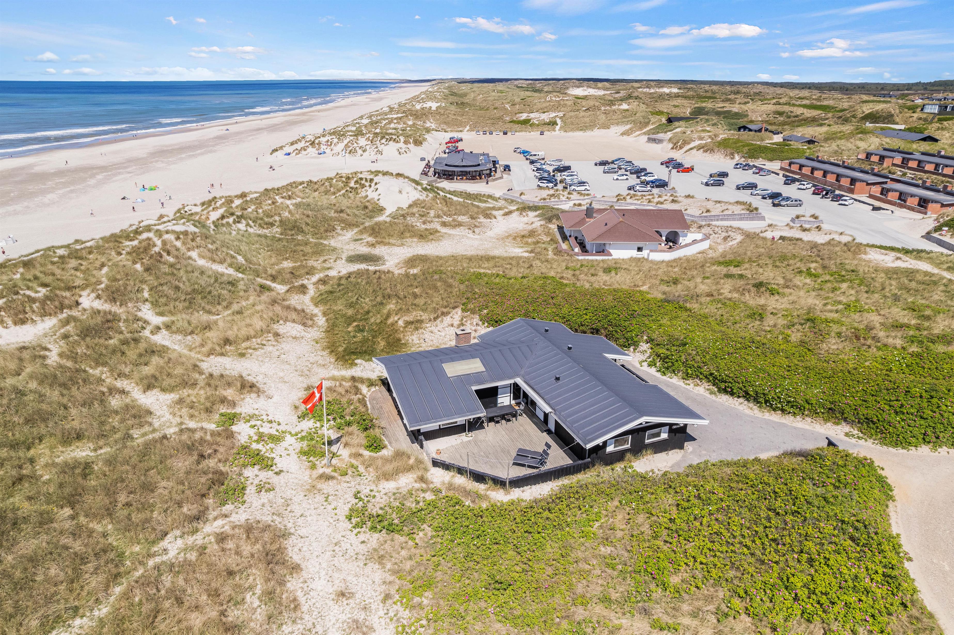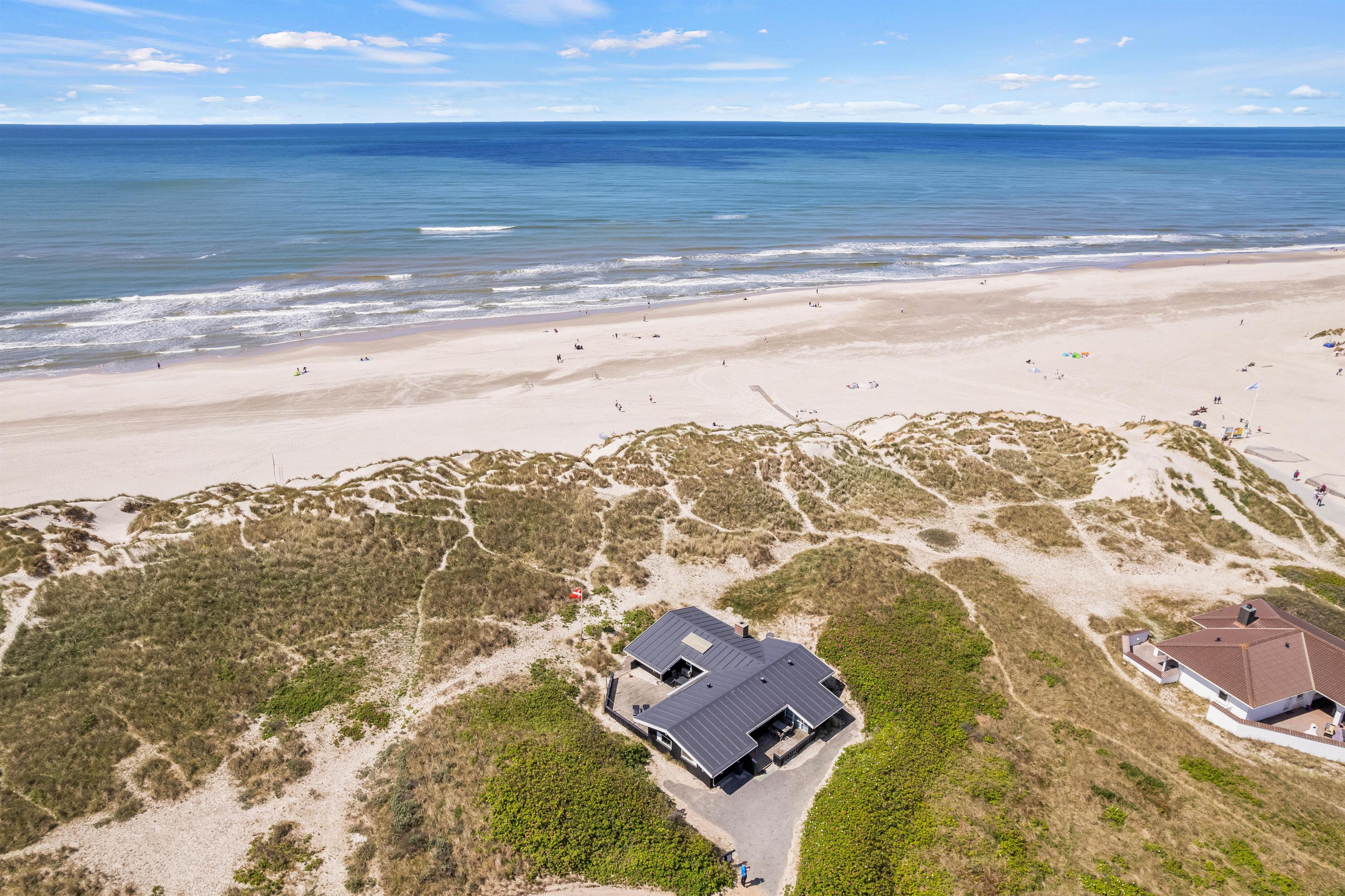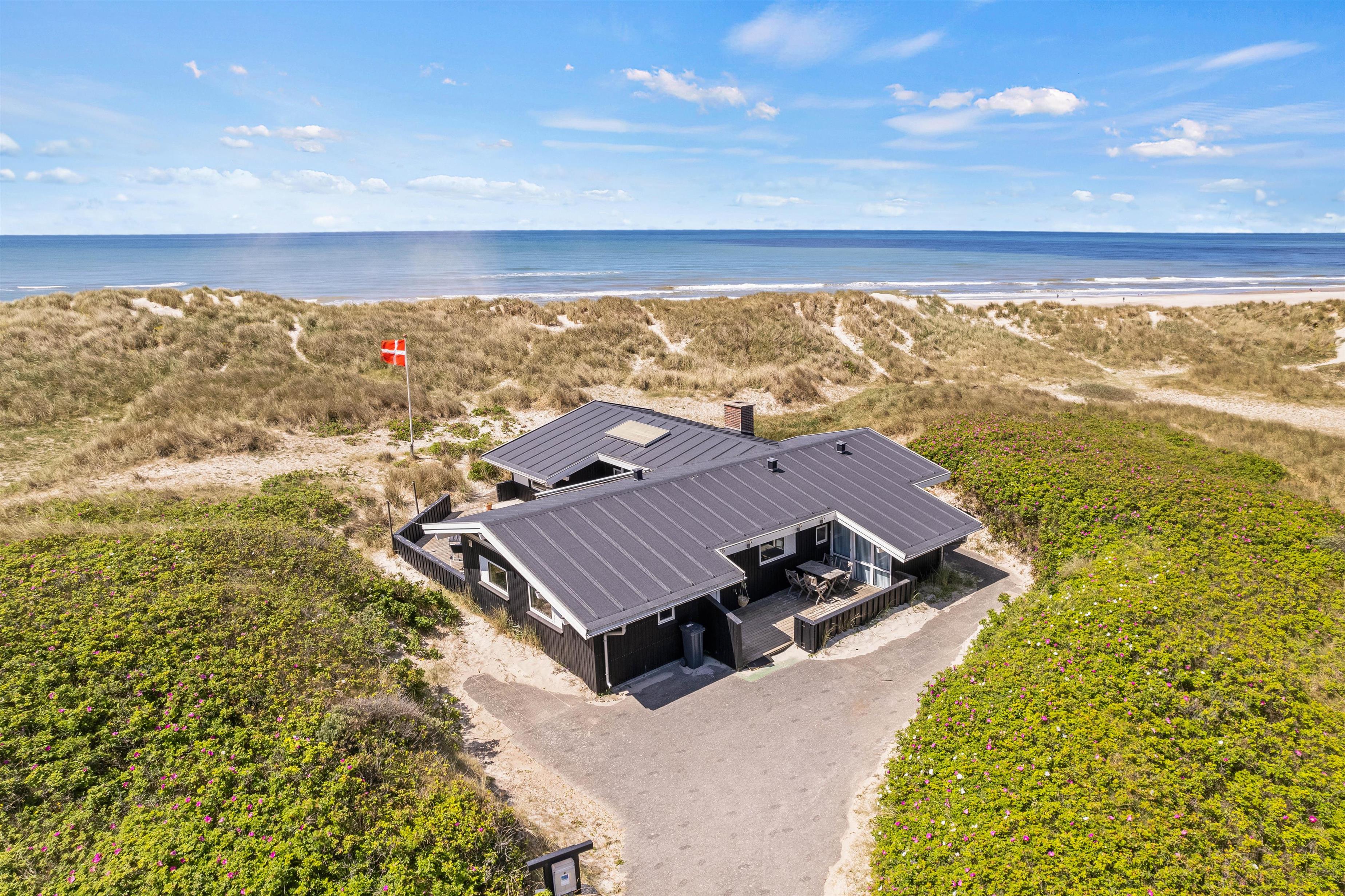 Sommerhuset på Blåklokkevej 6 har en unik beliggenhed. Fra sommerhuset har I blot 75 meter til stranden og det smukke Vesterhav, og dermed tager det jer ikke lang tid, før I er fremme, når I trænger til en frisk dukkert eller gåtur langs stranden.