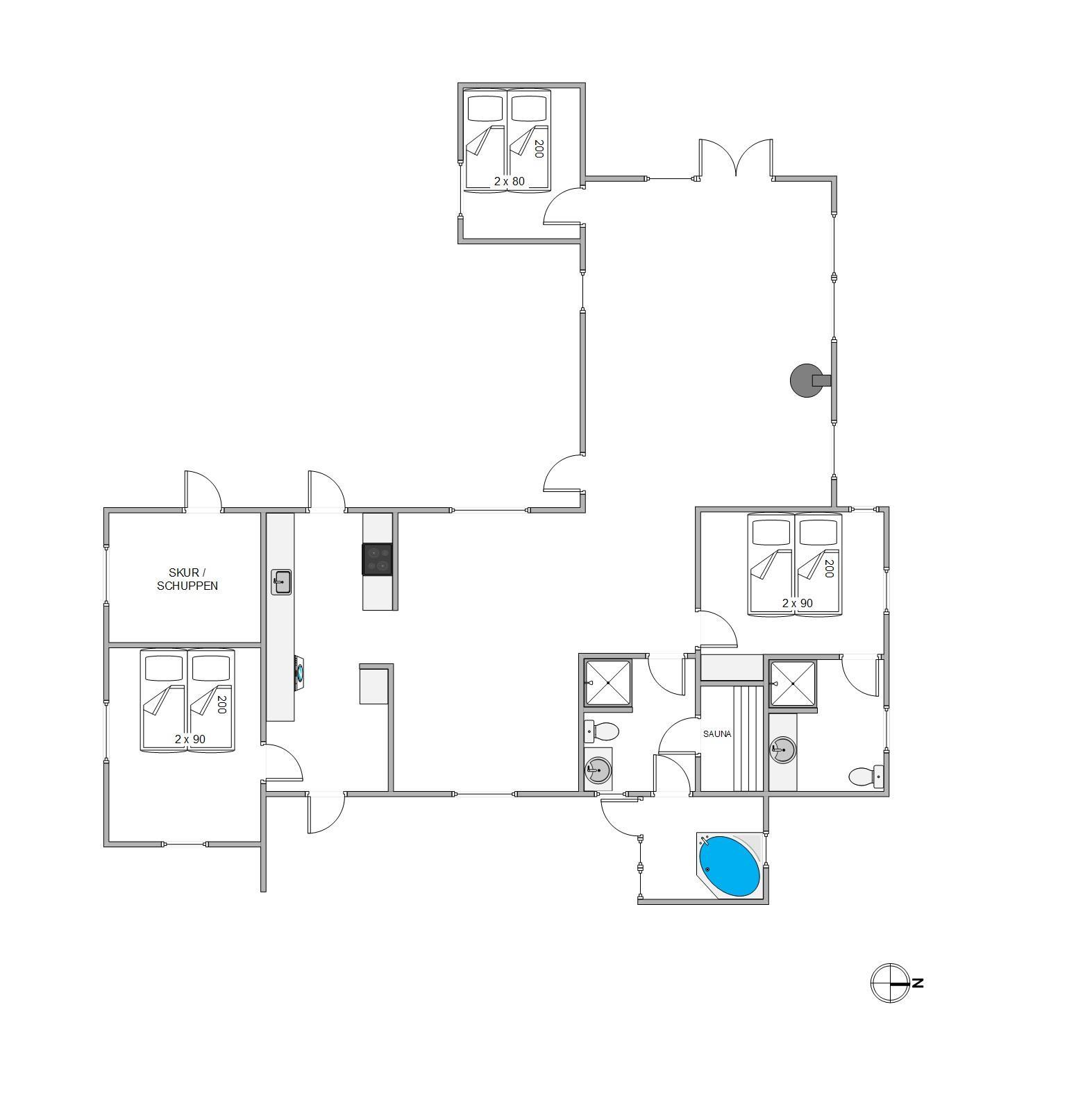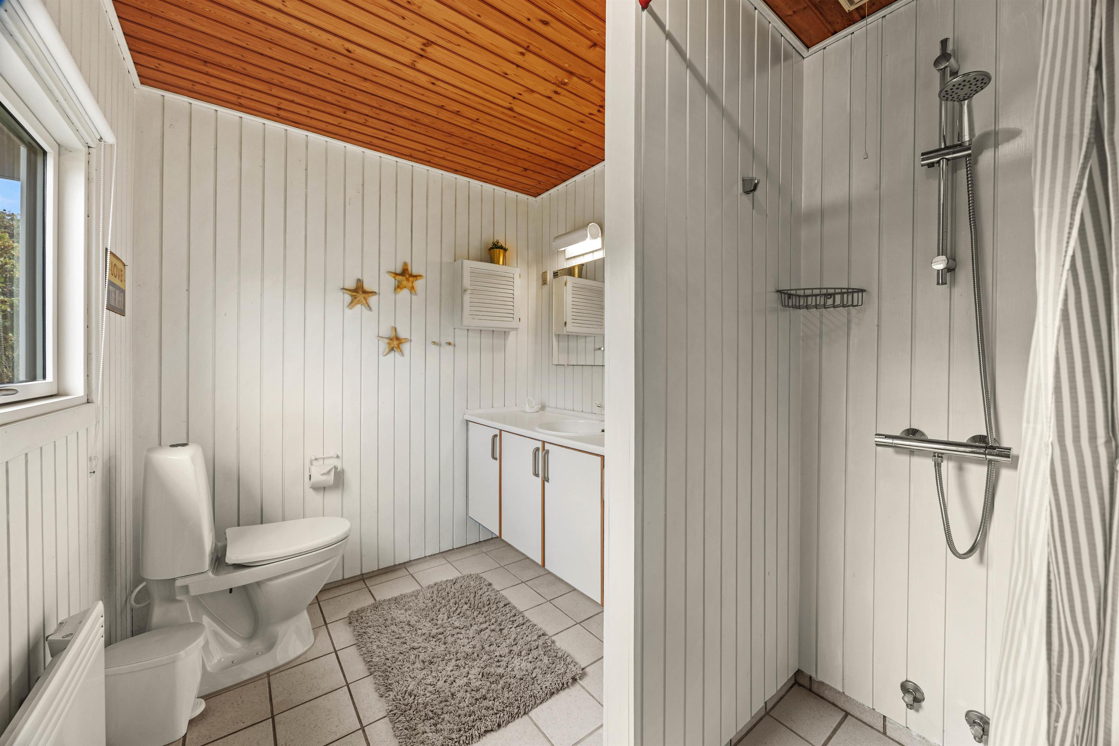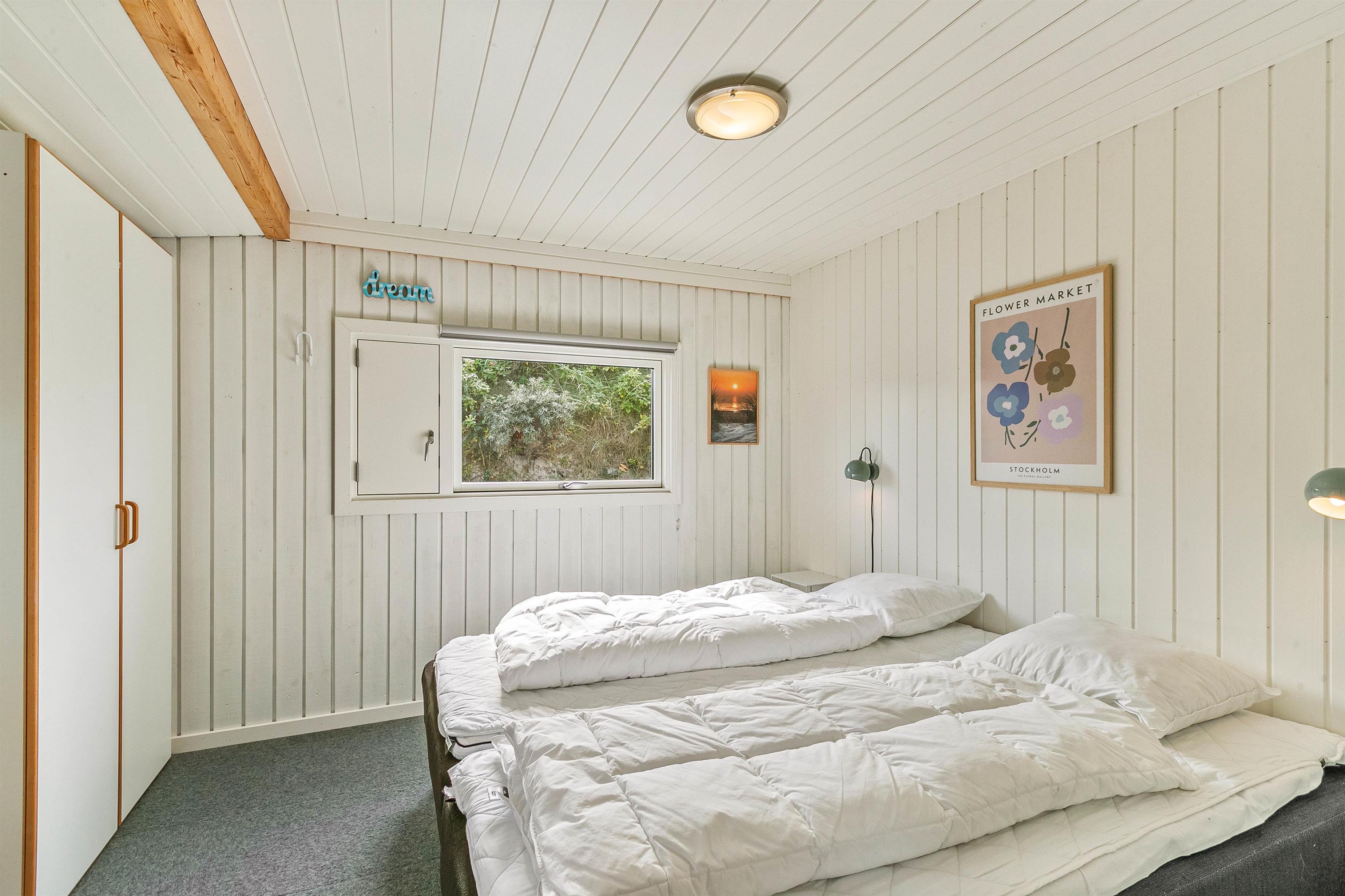 I sommerhuset kan I fordele jer på de 3 gode soveværelser, der alle er indrettet med dobbeltseng, hvor I kan få jeres skønhedssøvn og samle energi til ferien. I skal ikke bekymre jer om kø til badeværelset fra morgenstunden, for her er hele 2 badeværelser – begge er desuden udstyret med gulvvarme, så der heller ikke er risiko for kolde fødder.