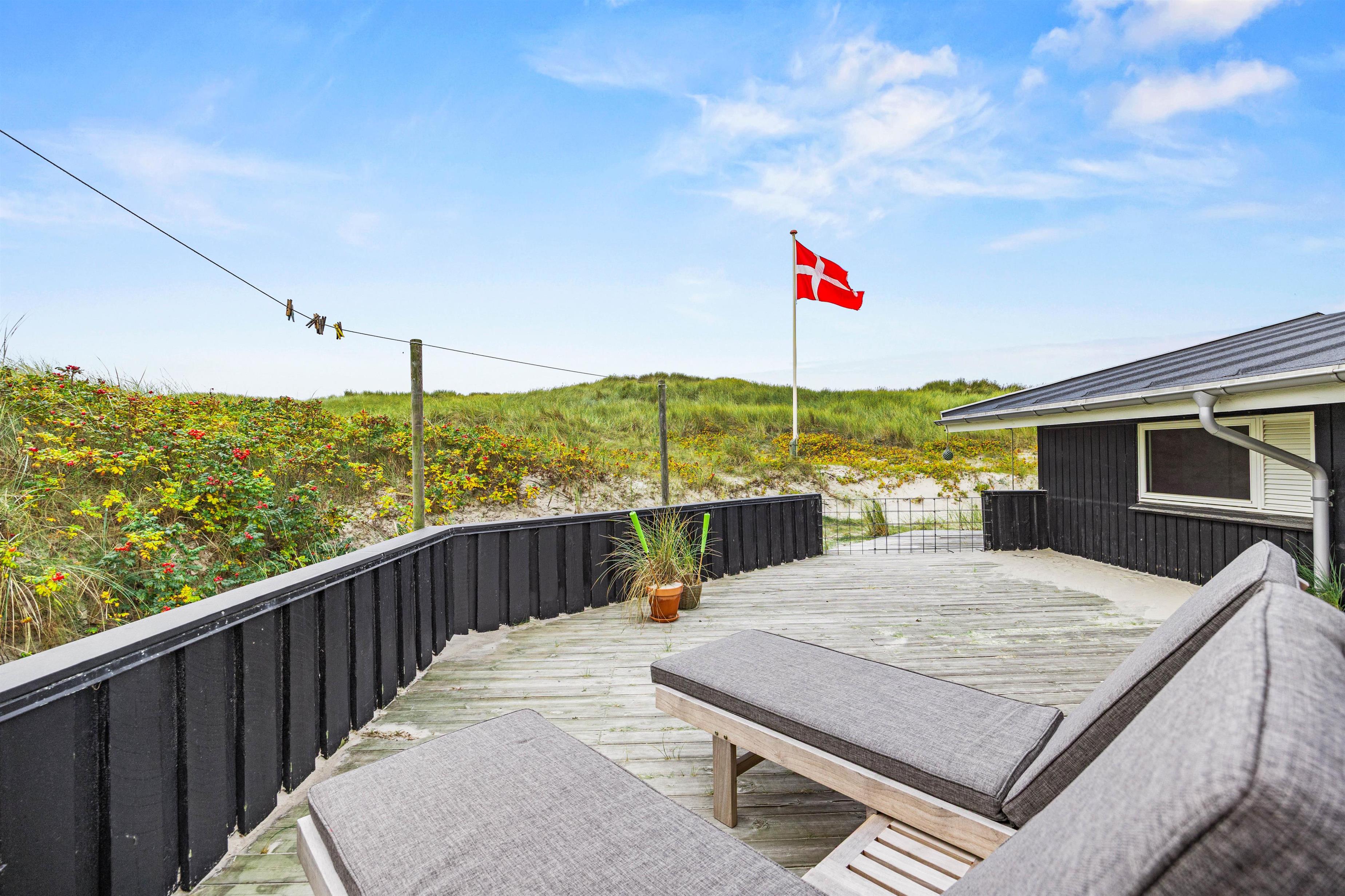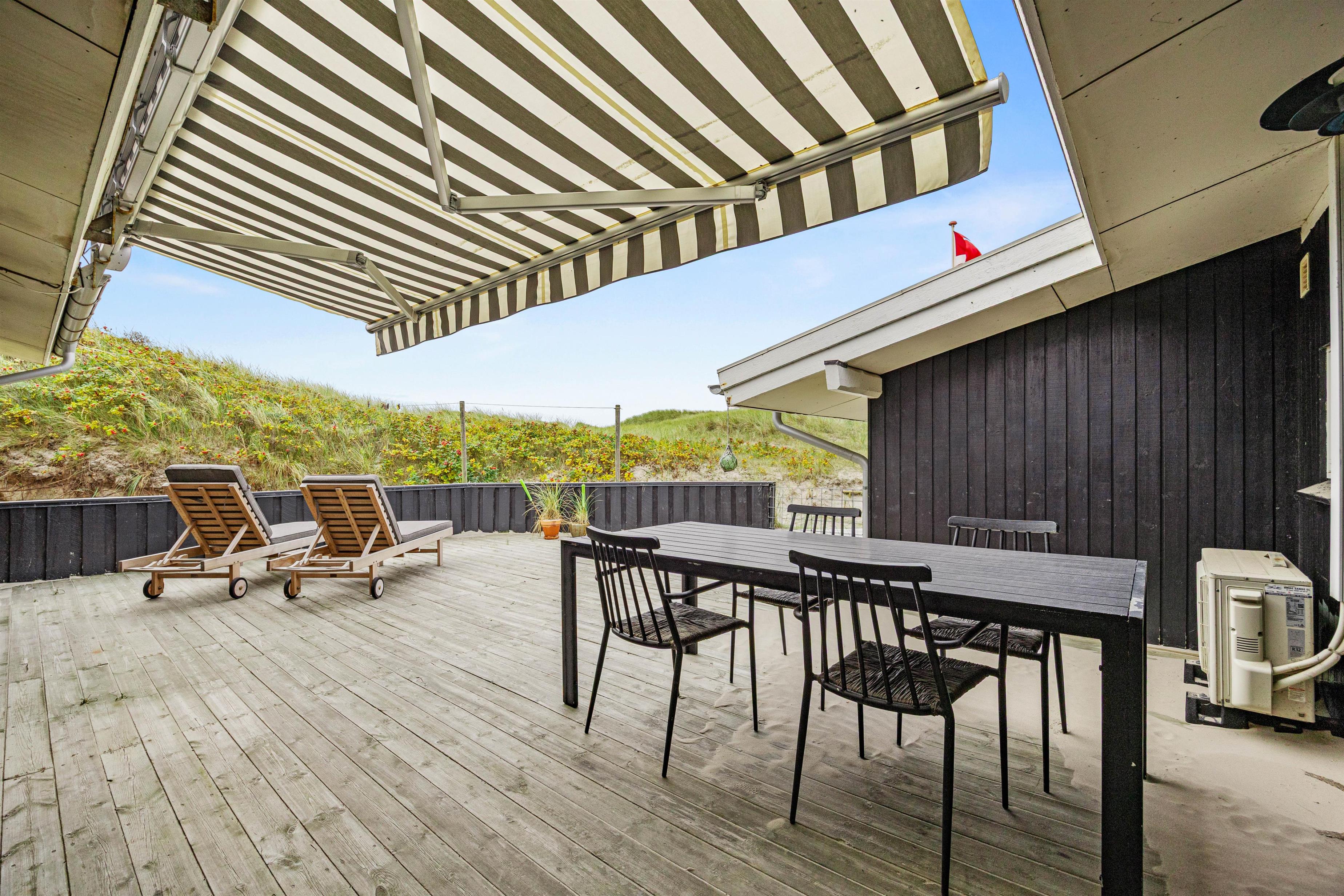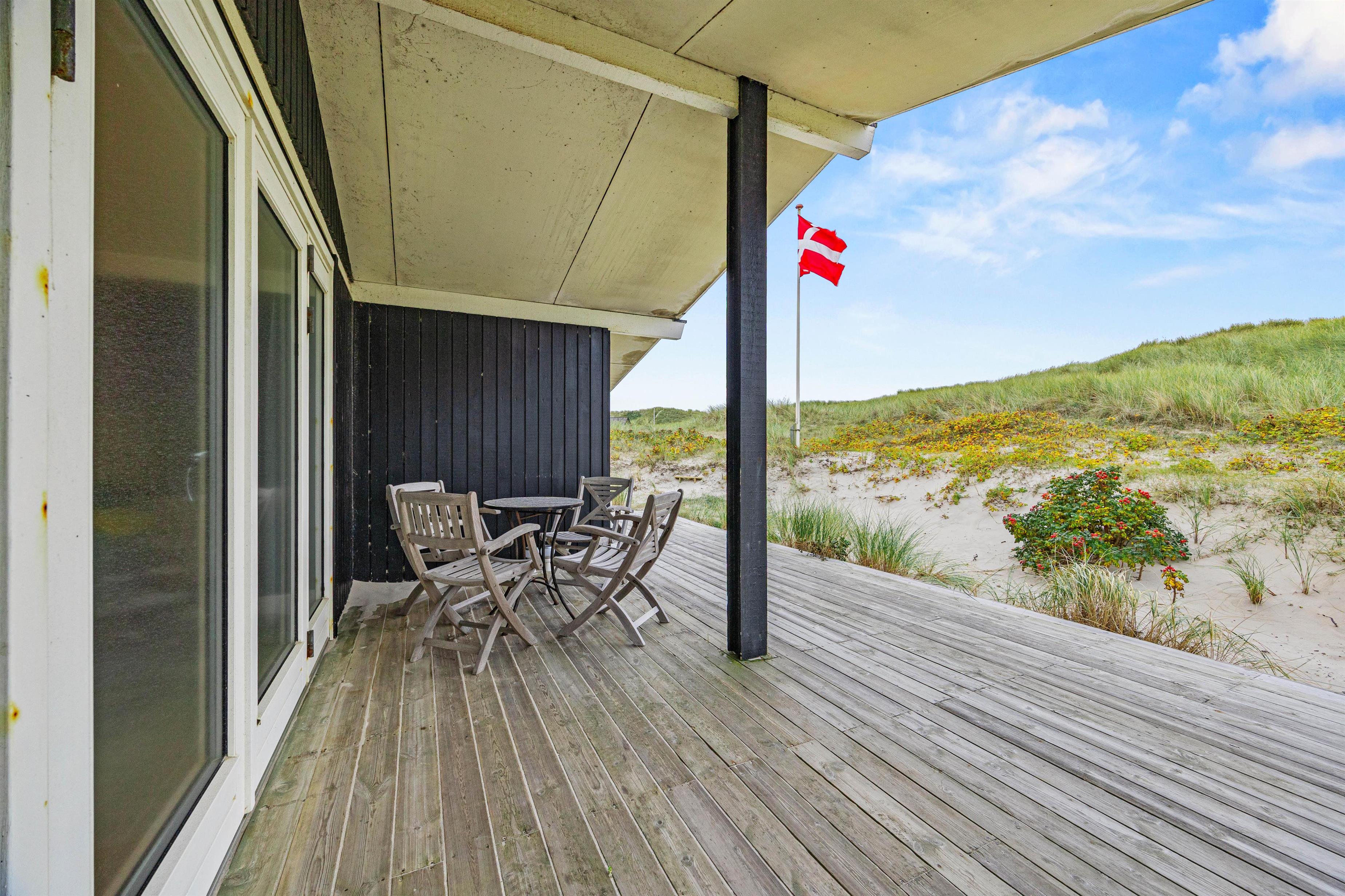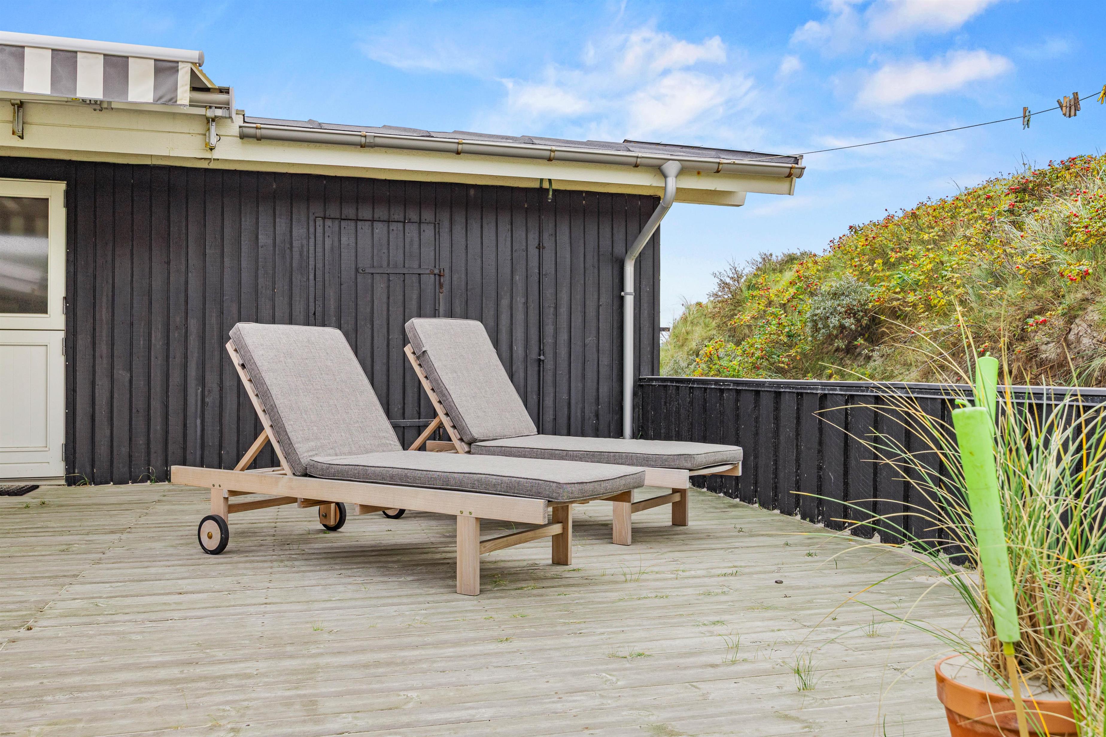På terrasserne står der havemøbler og liggestole klar til jer. Find jer en god plads i solen, sæt jer til rette og nyd ferien med lyden af brændingen i baggrunden, imens børnene bygger flotte sandslotte i sandkassen.