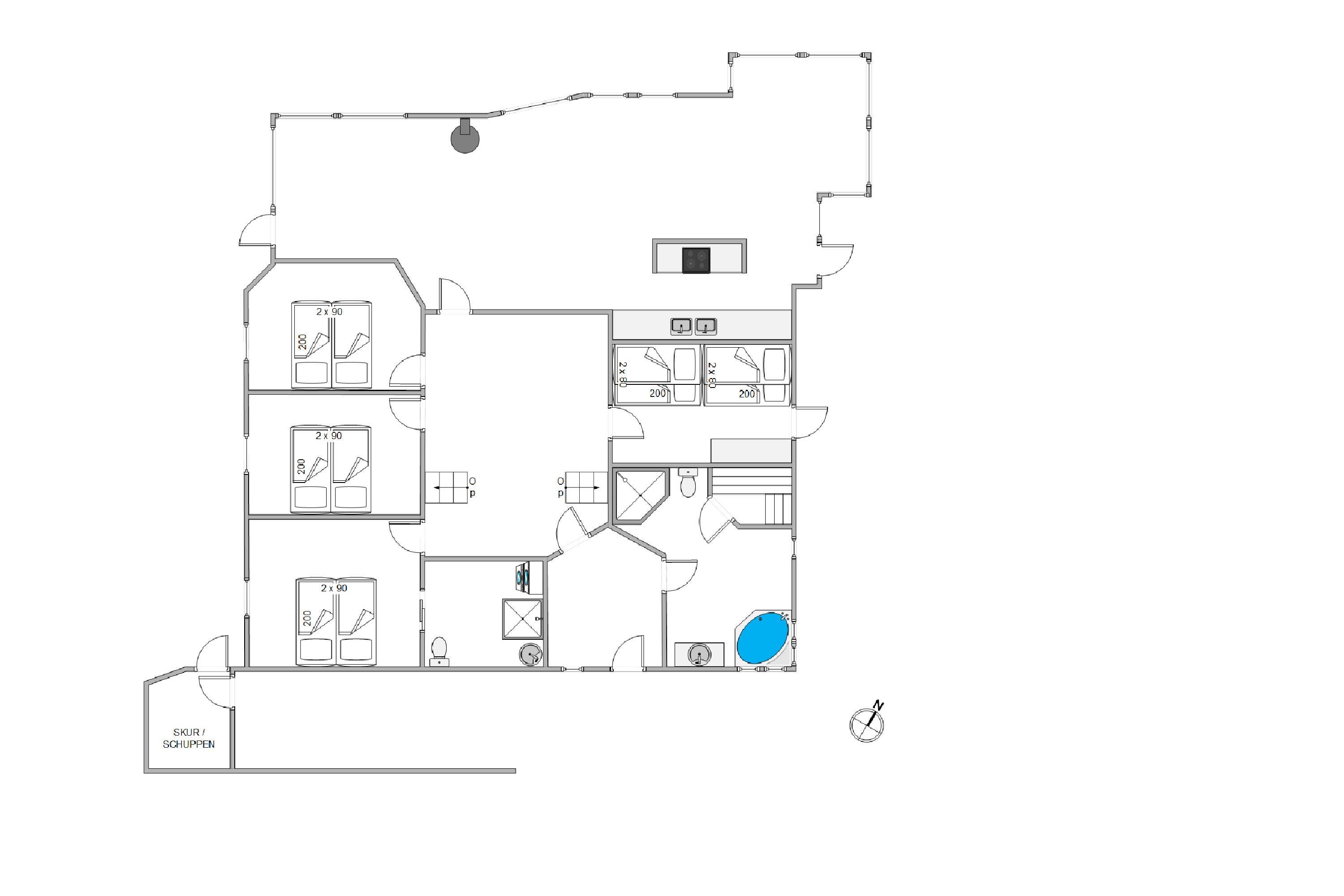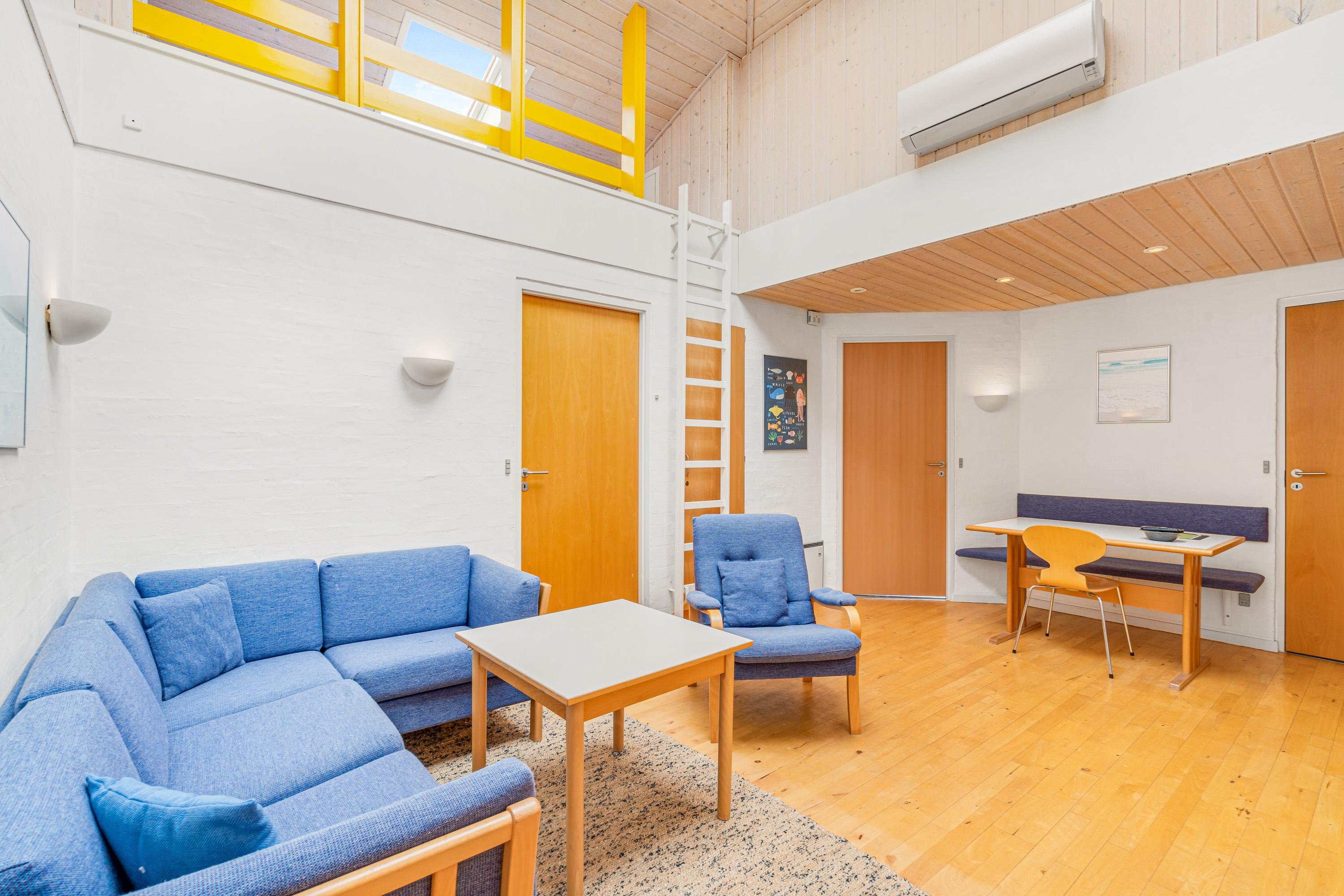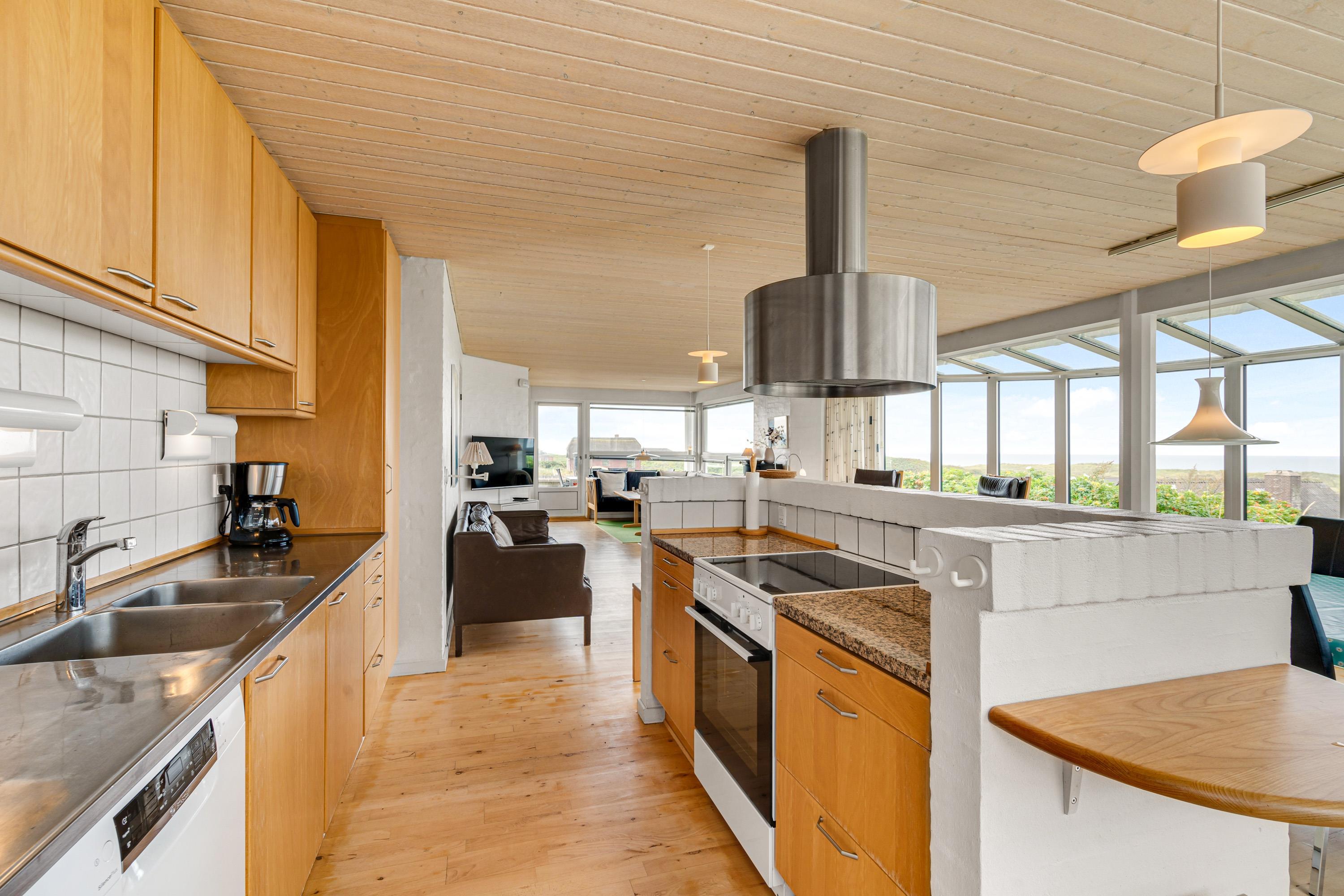 Centralt i alrummet står der en brændeovn, som sætter prikken over i’et for feriestemningen og sørger for ekstra varme – og ellers opvarmes sommerhuset af en energivenlig varmepumpe. Fra alrummet har I også en fantastisk udsigt til Vesterhavet og det omkringliggende landskab.