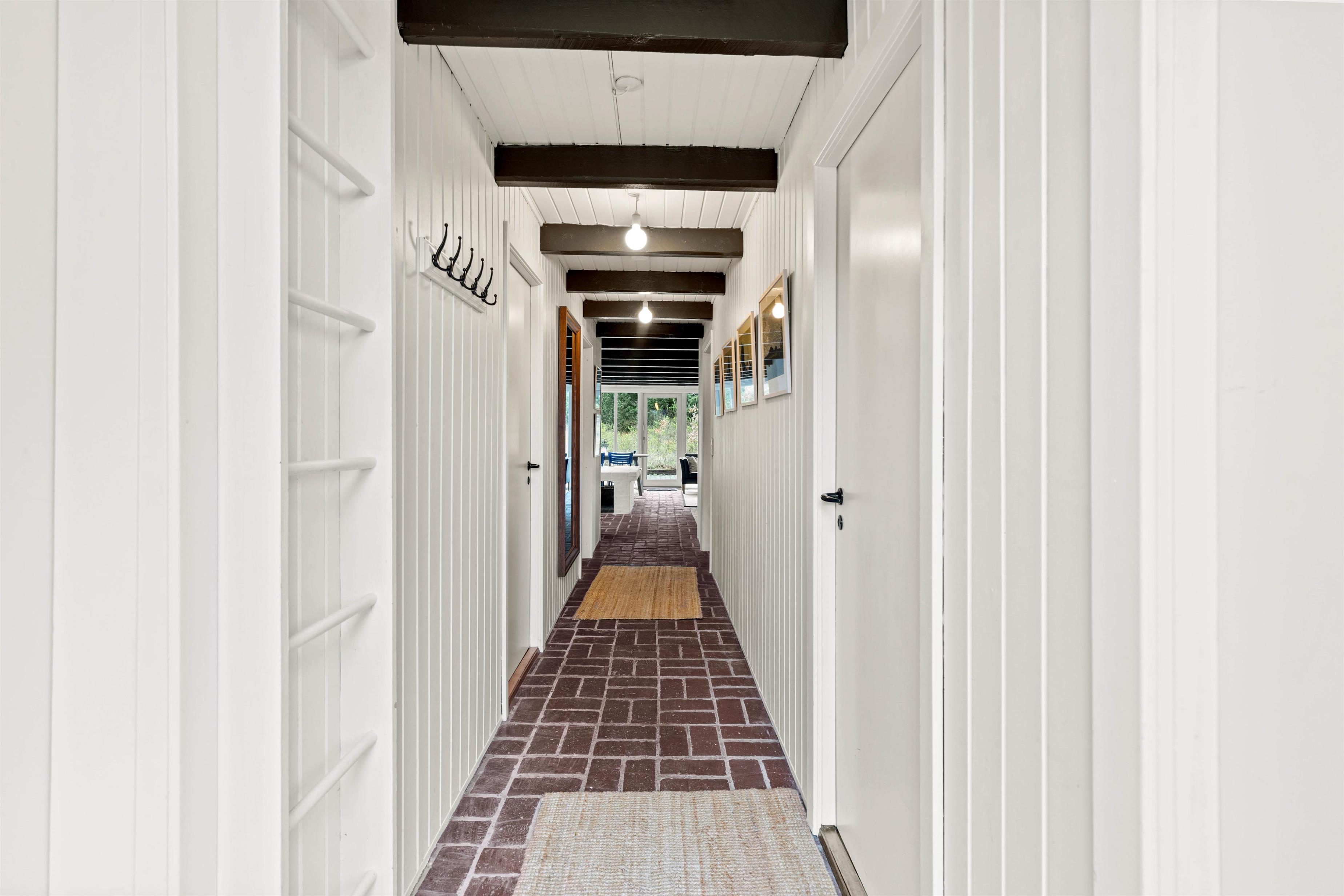 Feriehuset har et flot badeværelse samt 3 fine soveværelser. 2 værelser er indrettet med dobbeltseng, mens det tredje værelse indeholder en sovesofa. Praktisk er her også et lille bryggers med vaskemaskine og plads til sko og jakker.