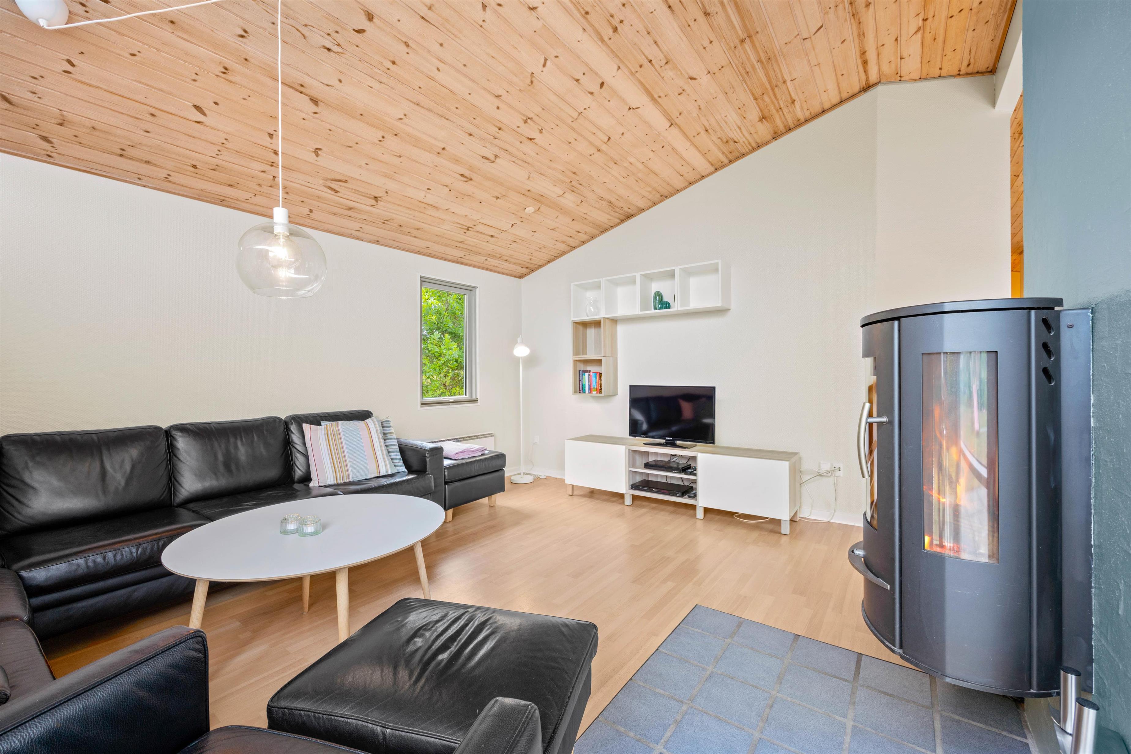 Udover at få varmen fra den knitrende brændeovn, så er feriehuset også udstyret med en energibesparende luft til luft varmepumpe. Feriehuset har også en praktisk vaskemaskine, så I altid kan sørge for at have rent tøj.