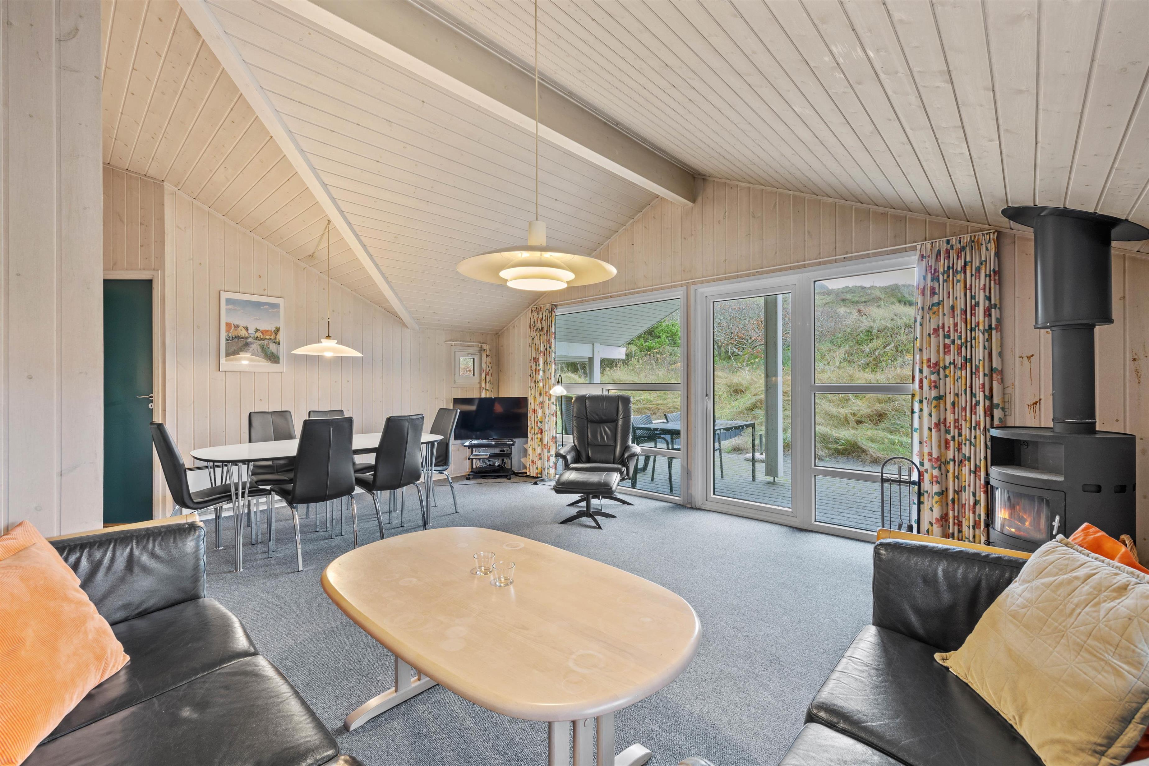 Det skønne feriehus rummer plads til op til 6 personer fordelt på tre fine og velindrettede soveværelser. Både fra soveværelserne såvel som opholdsrummet har I en herlig udsigt ud over det omkringliggende klitlandskab. Nyd udsigten, mens der bliver lavet mad, spillet kort eller slappet af på sofaen med den knitrende brændeovn i baggrunden. Integreret fryser på 40 liter.