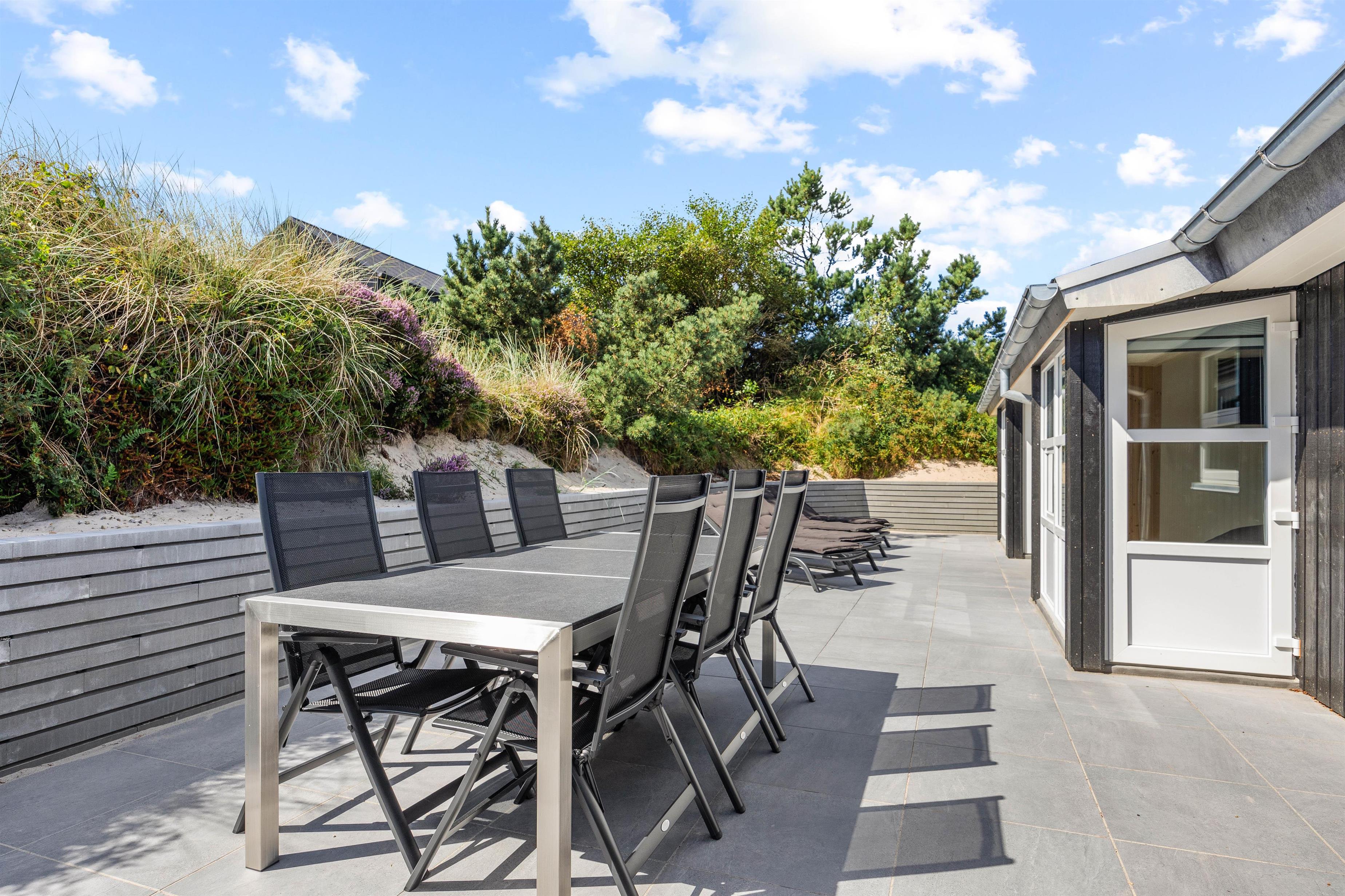 Udendørs står havemøbler til rådighed på den gennemgående og delvis afskærmede terrasse, der gør det muligt at nyde udsigten og den friske luft i rolige omgivelser.