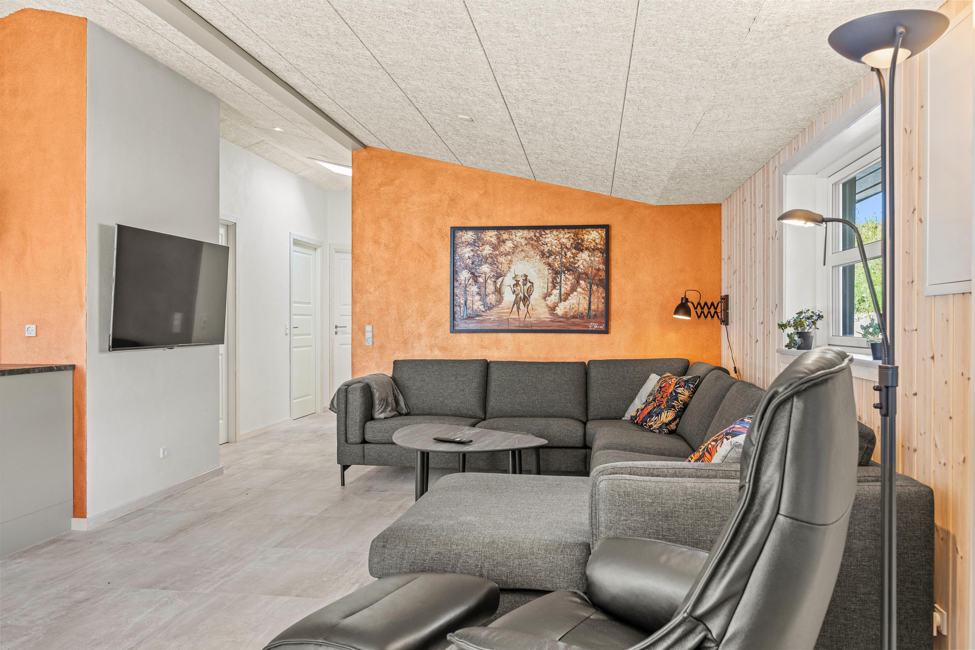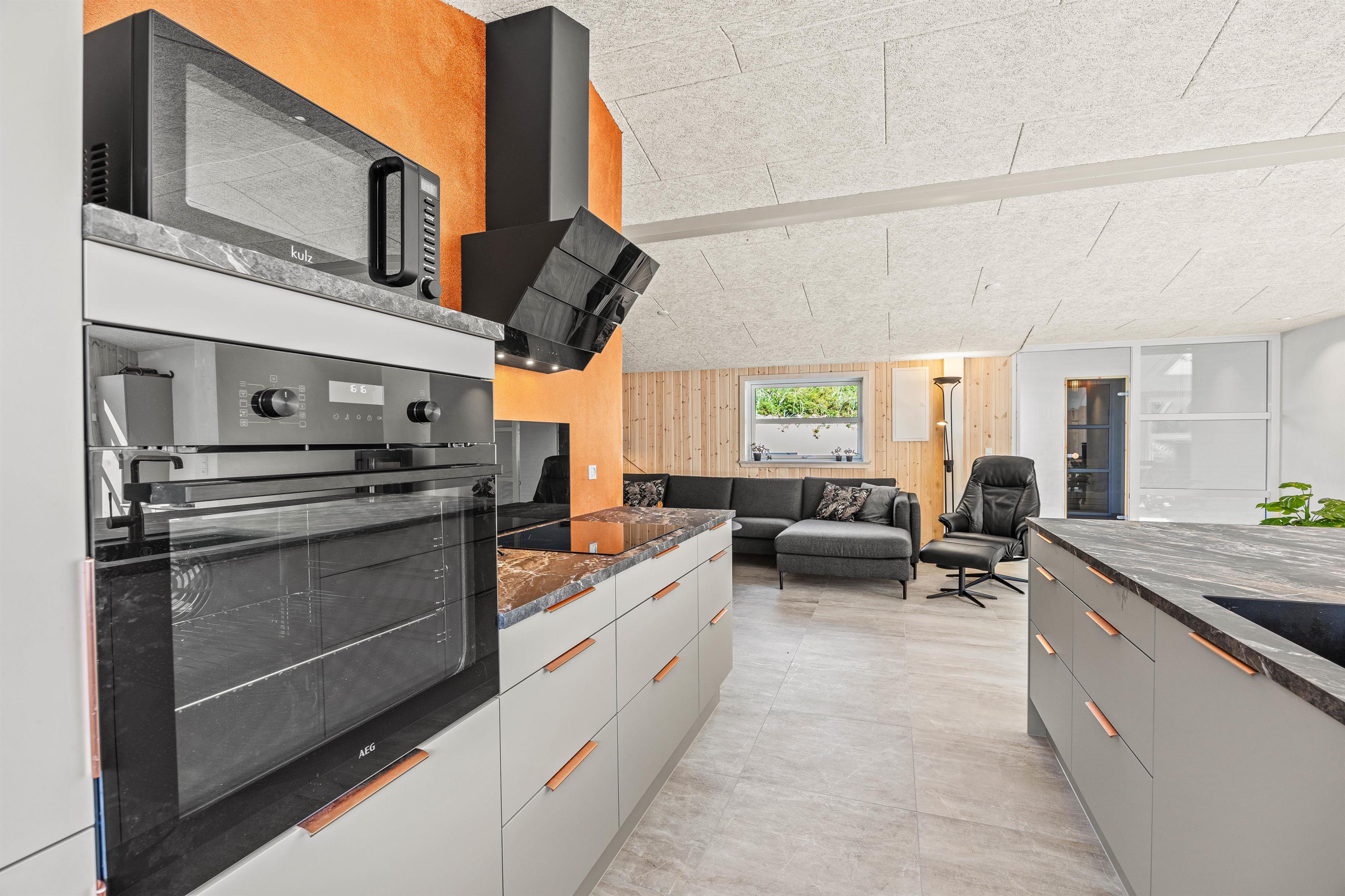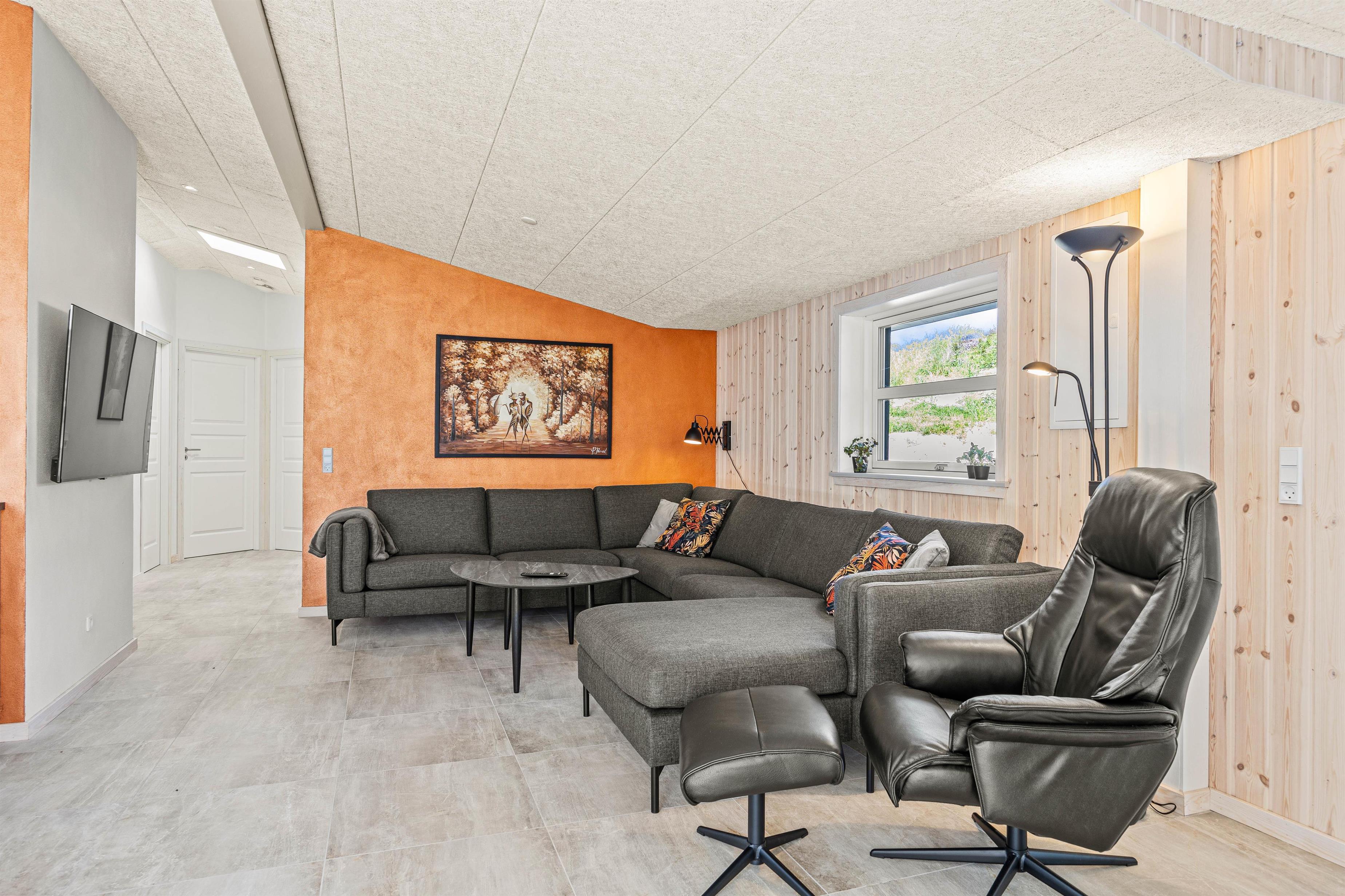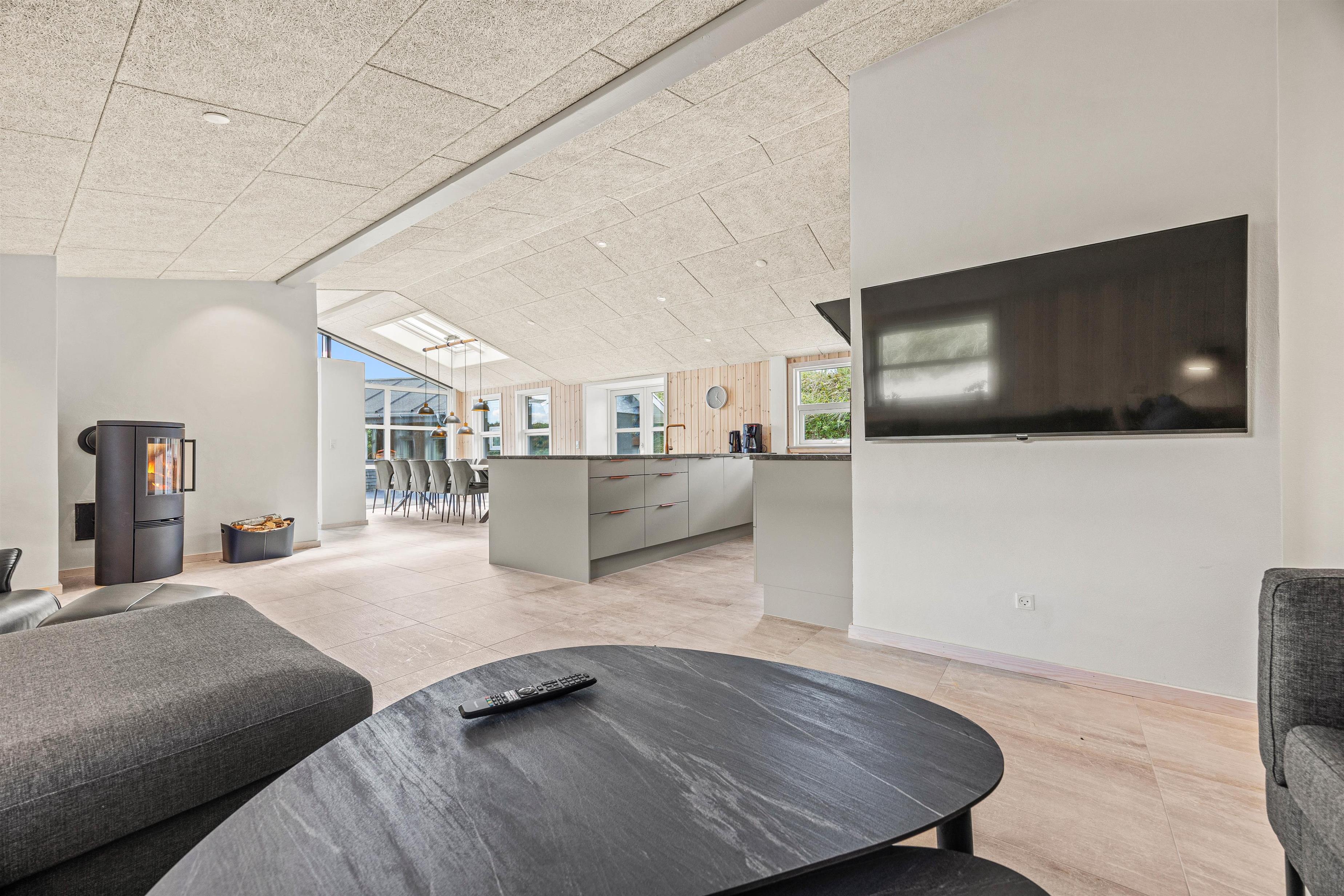 Indendørs byder sommerhuset på en hyggelig stue med en brændeovn, der skaber en varm atmosfære til hyggelige aftener. Køkkenet er fuldt udstyret med opvaskemaskine, og vaskemaskine og tørretumbler for maksimal komfort og bekvemmelighed. Den rummelige entre og de veludstyrede opholdsrum sikrer, at I har rigelig plads til alle.