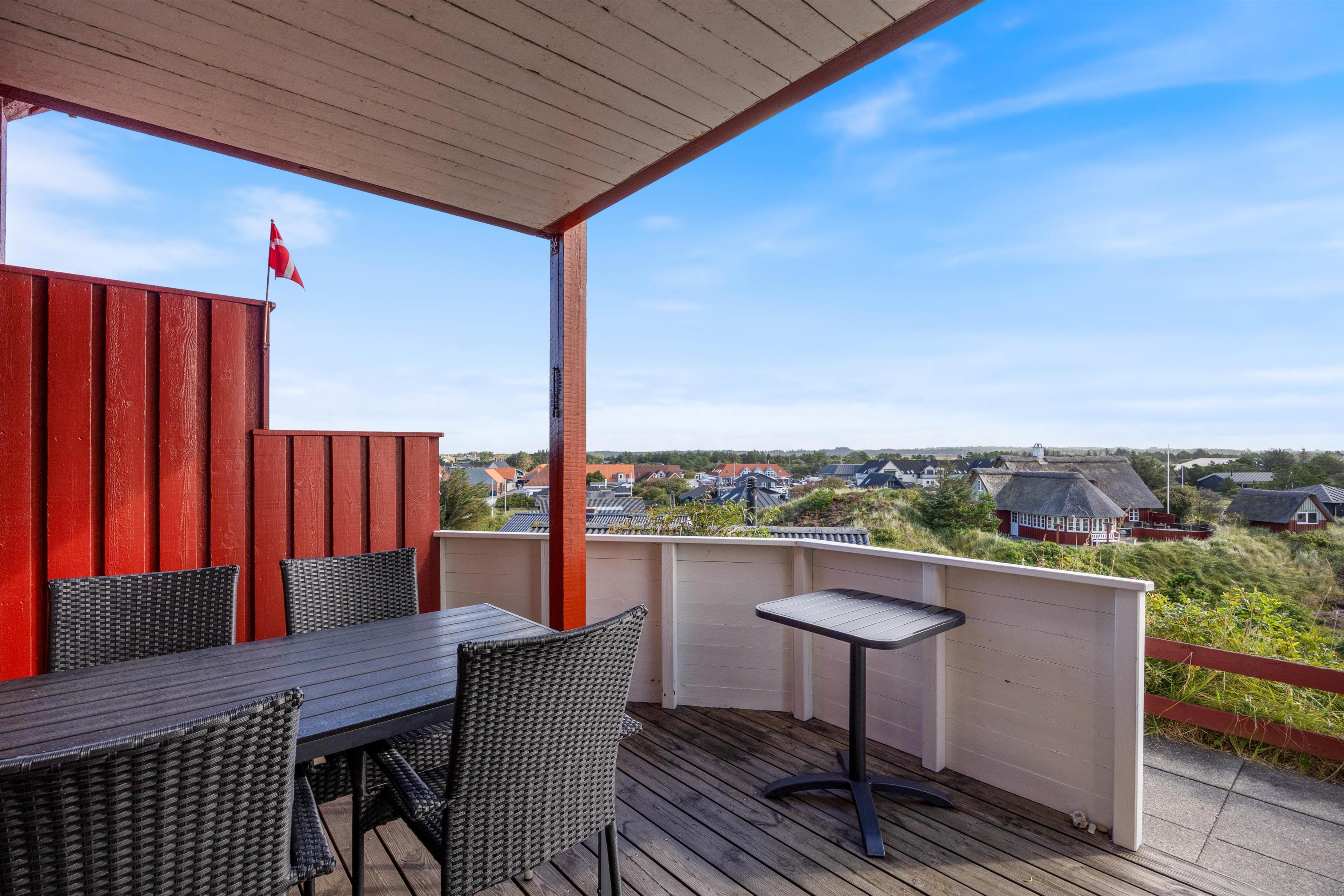 Den fine lyse ferielejlighed er helt perfekt, hvis I leder efter et dejligt sted centralt i Henne Strand. Lejligheden ligger højt på en klittop med udsigt over landsbyen Henne Strand. Her er der plads til fire personer, kun 300 meter til det brusende Vesterhav.