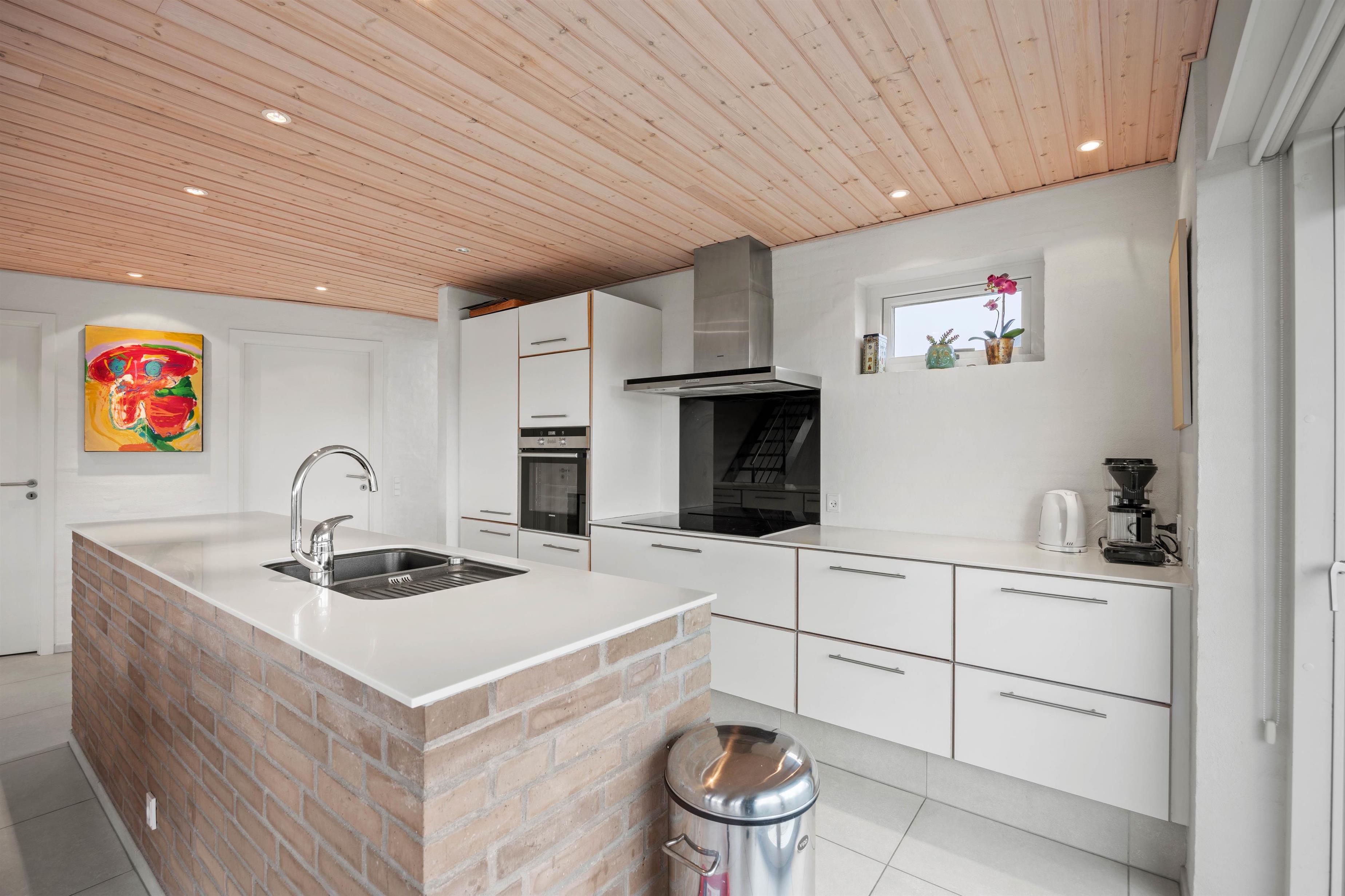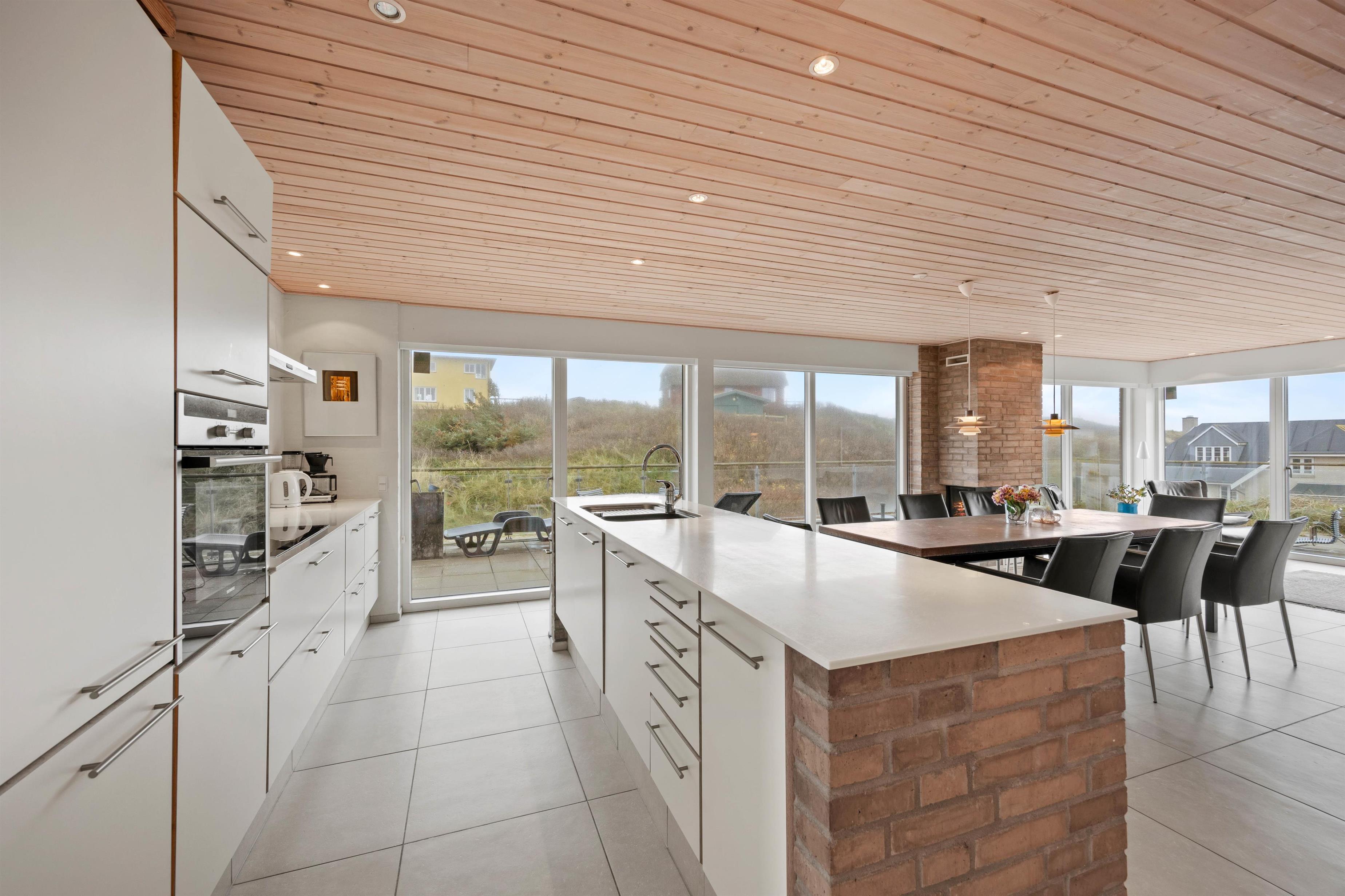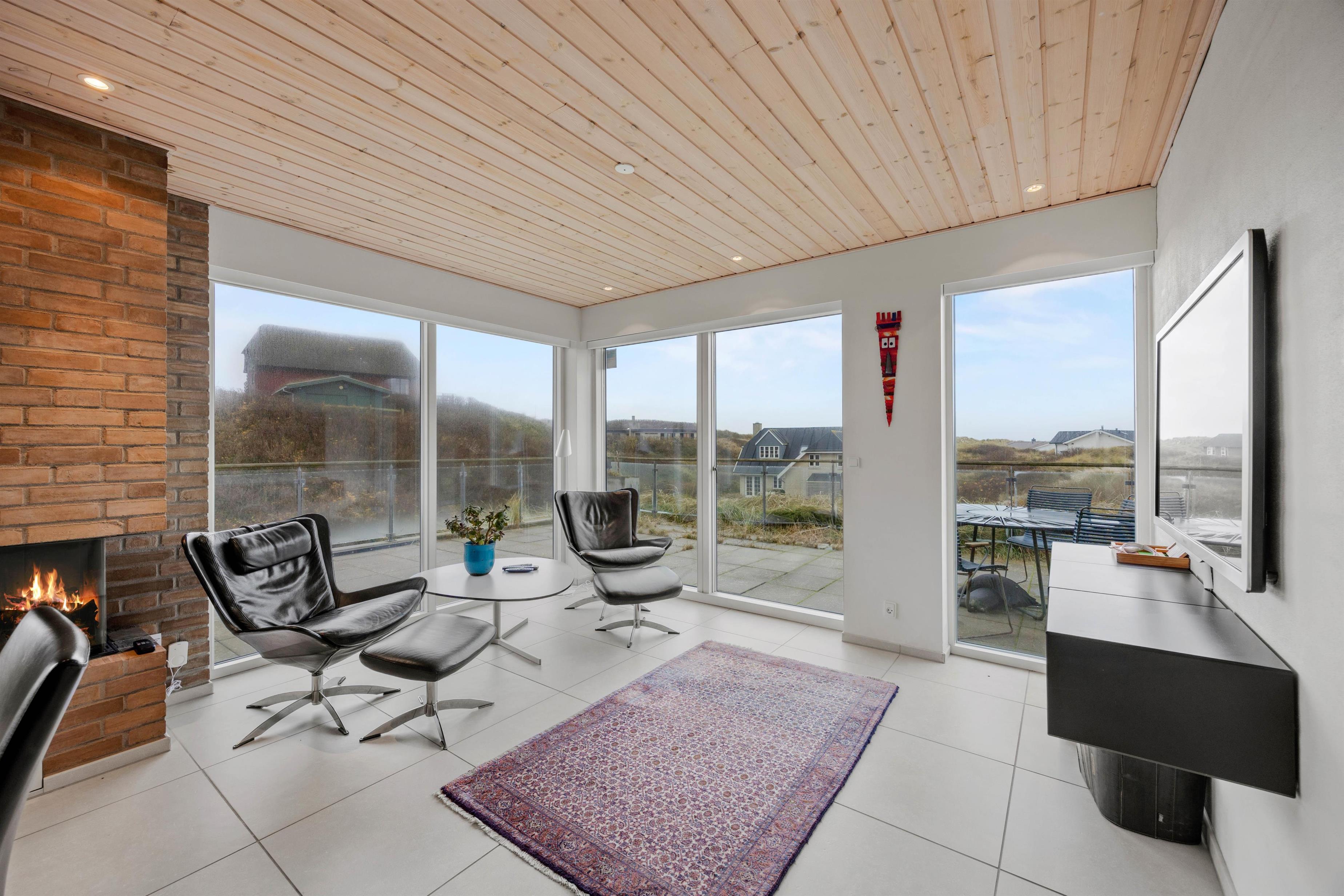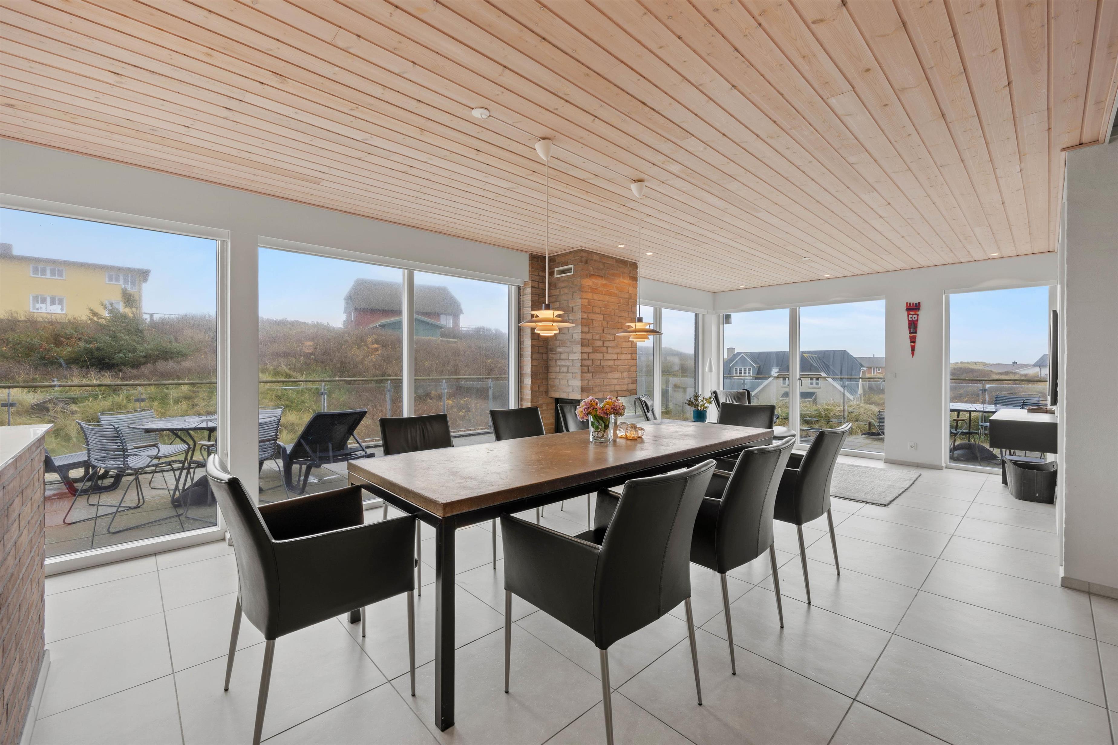 De lyse vægge, gulve og lofter og store vinduespartier sørger for en god og afslappende ferieatmosfære, og gaspejsen i den store spisestue spreder masser af hyggelig stemning på de kolde feriedage.