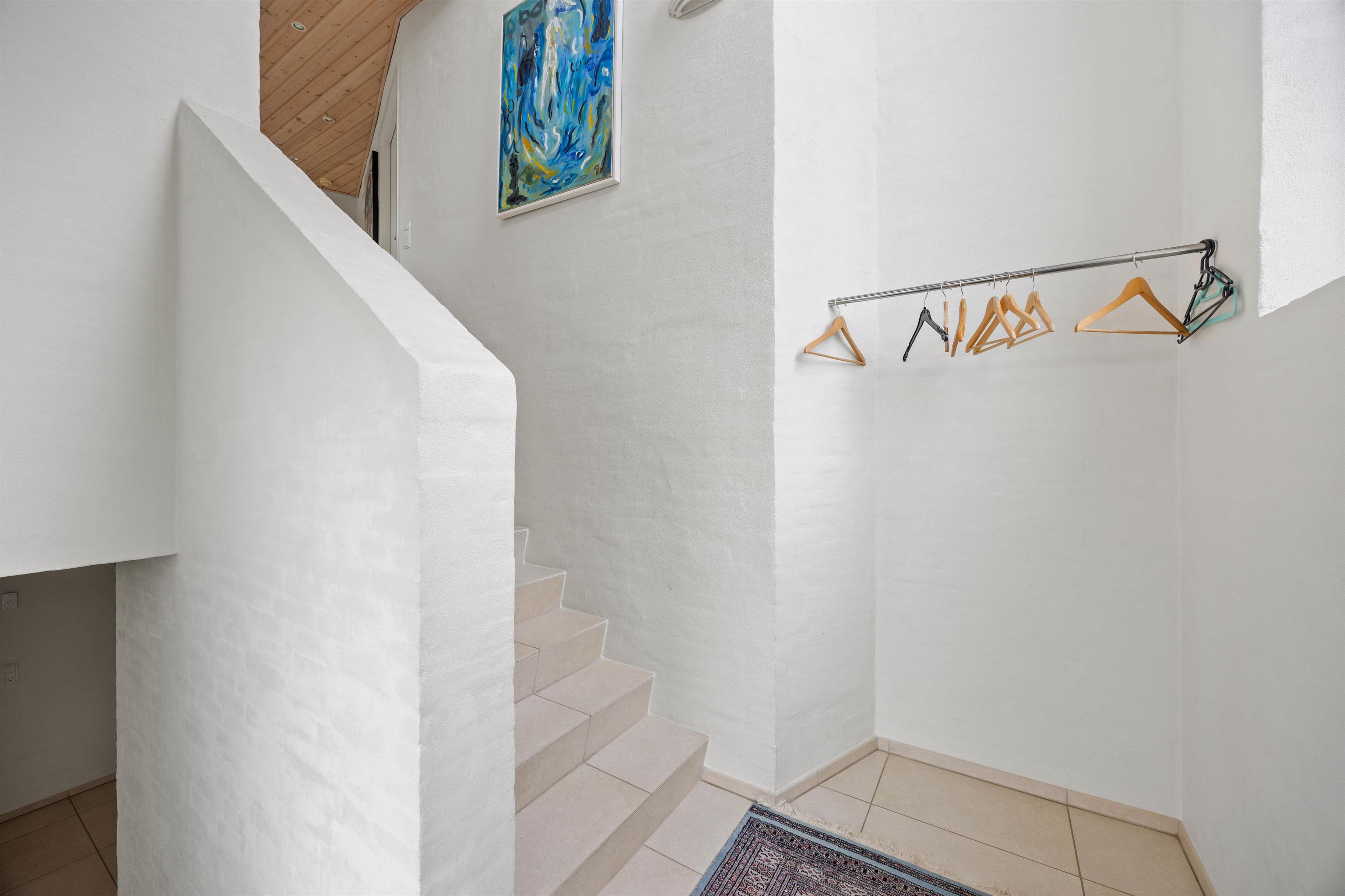 Fra første sal har I udgang til en hyggelig møbleret balkon, hvorfra I kan nyde havudsigten sammen med en friskbrygget kop kaffe eller en kold drink på en varm sommerdag. Fra nederste etage kommer I ud på den store terrasse, der næsten omgiver huset. Her er der lagt op til masser af hyggelige grillaftener og afslappende dage i liggestolene.
