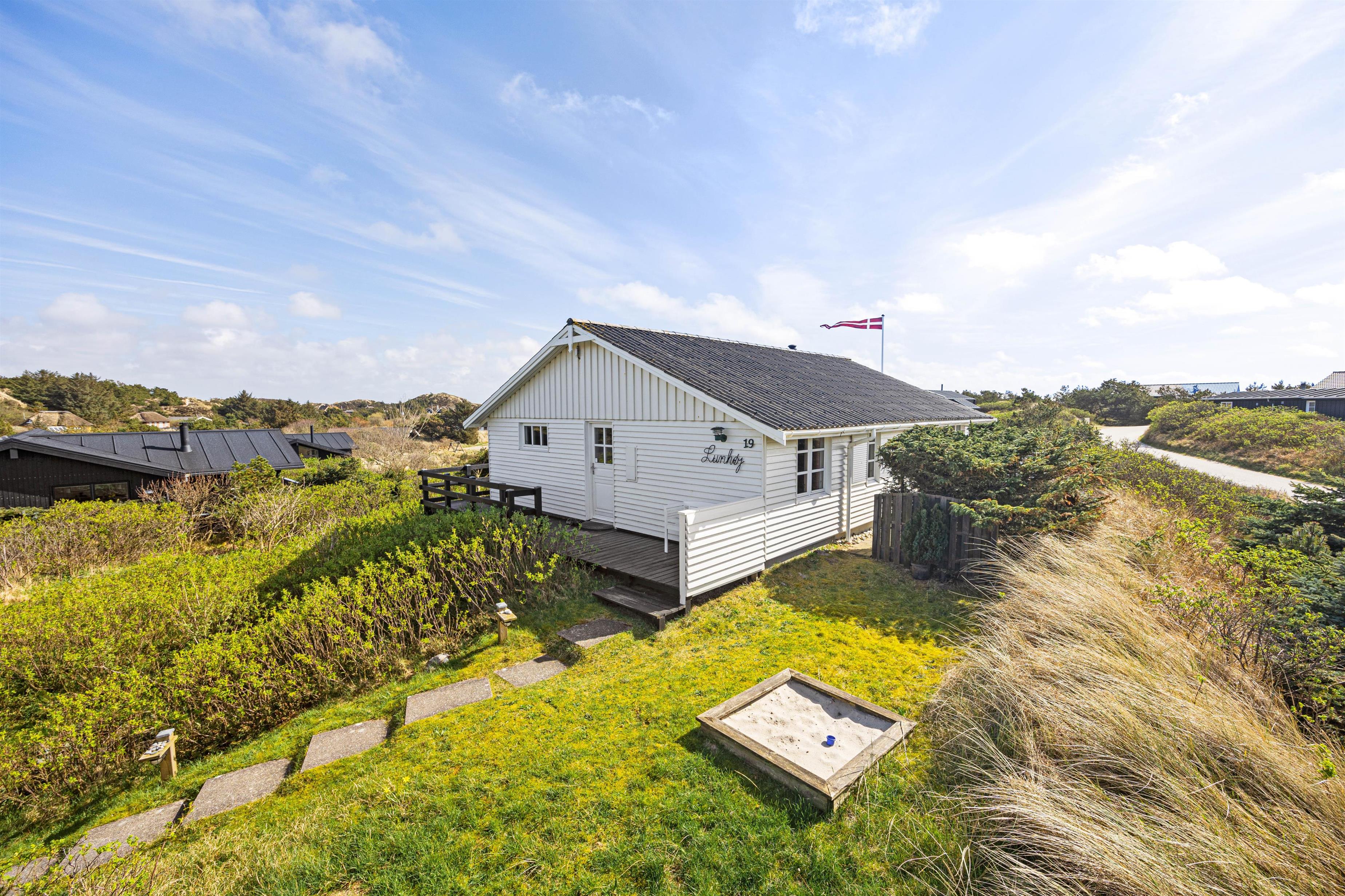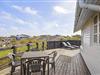 Fra stuen er der adgang til den store åbne træterrasse, hvorfra der er udsigt over klitterne. På den sydvendte terrasse, hvor der oftest er godt med læ, venter der havemøbler og grill.