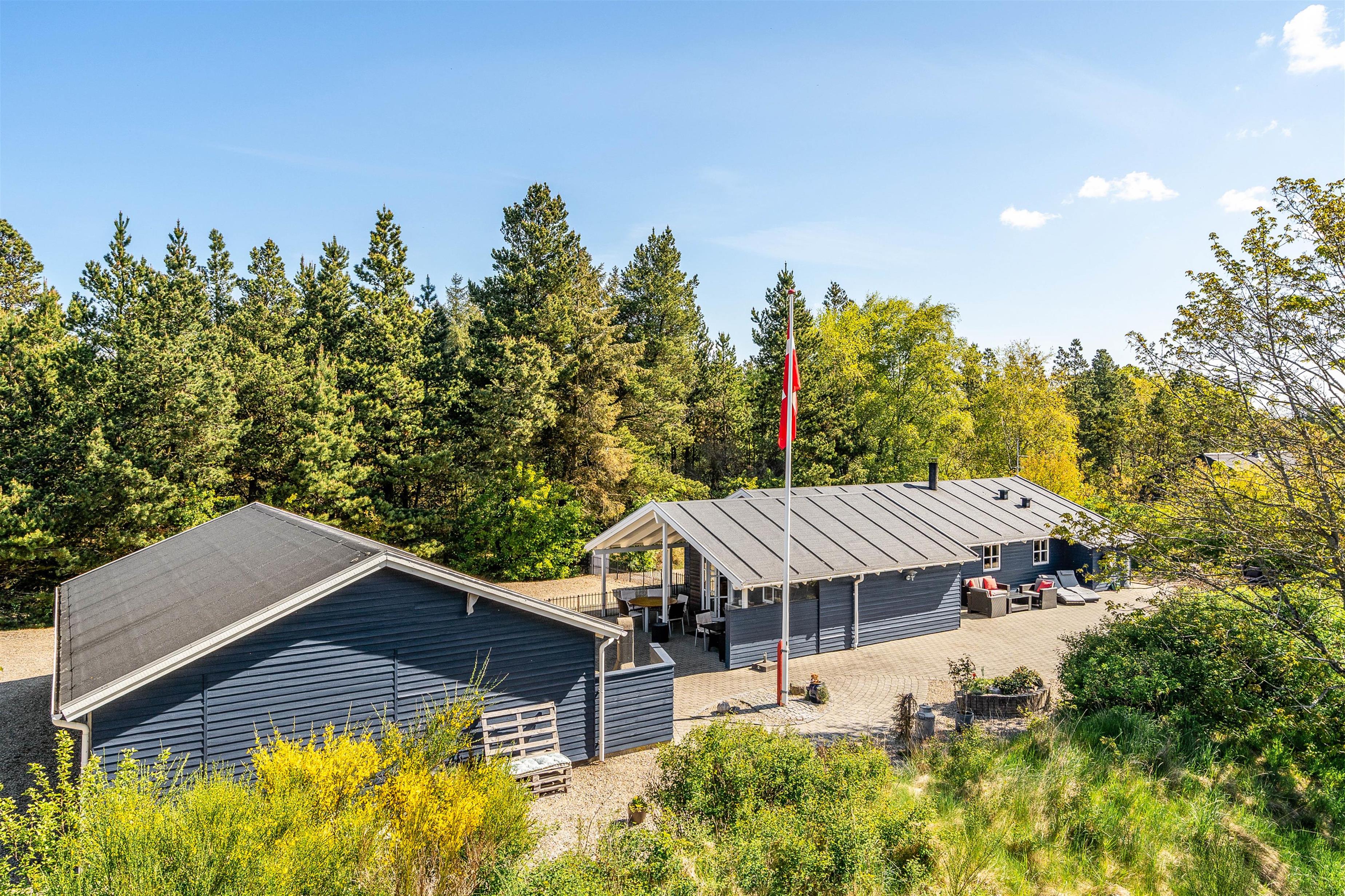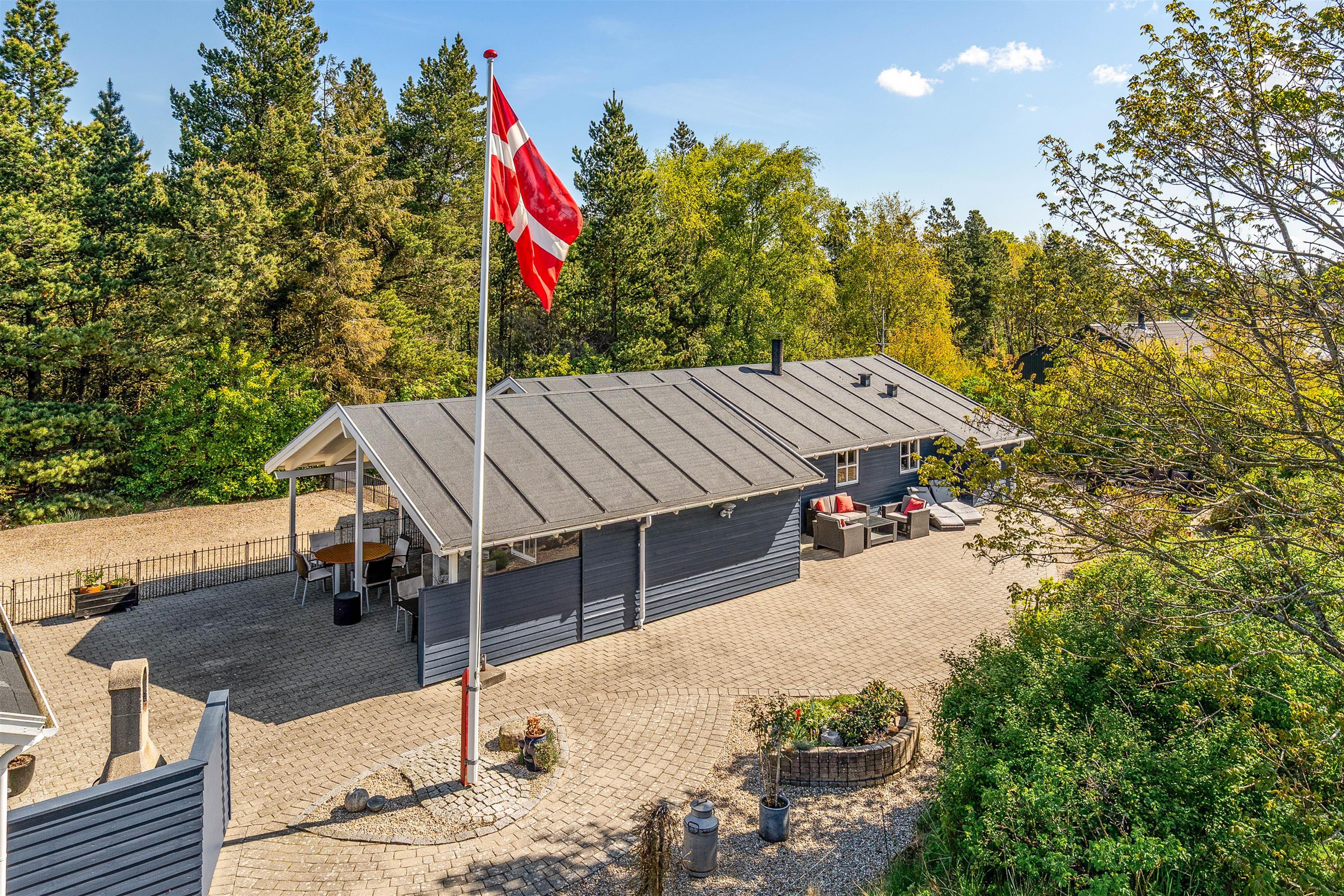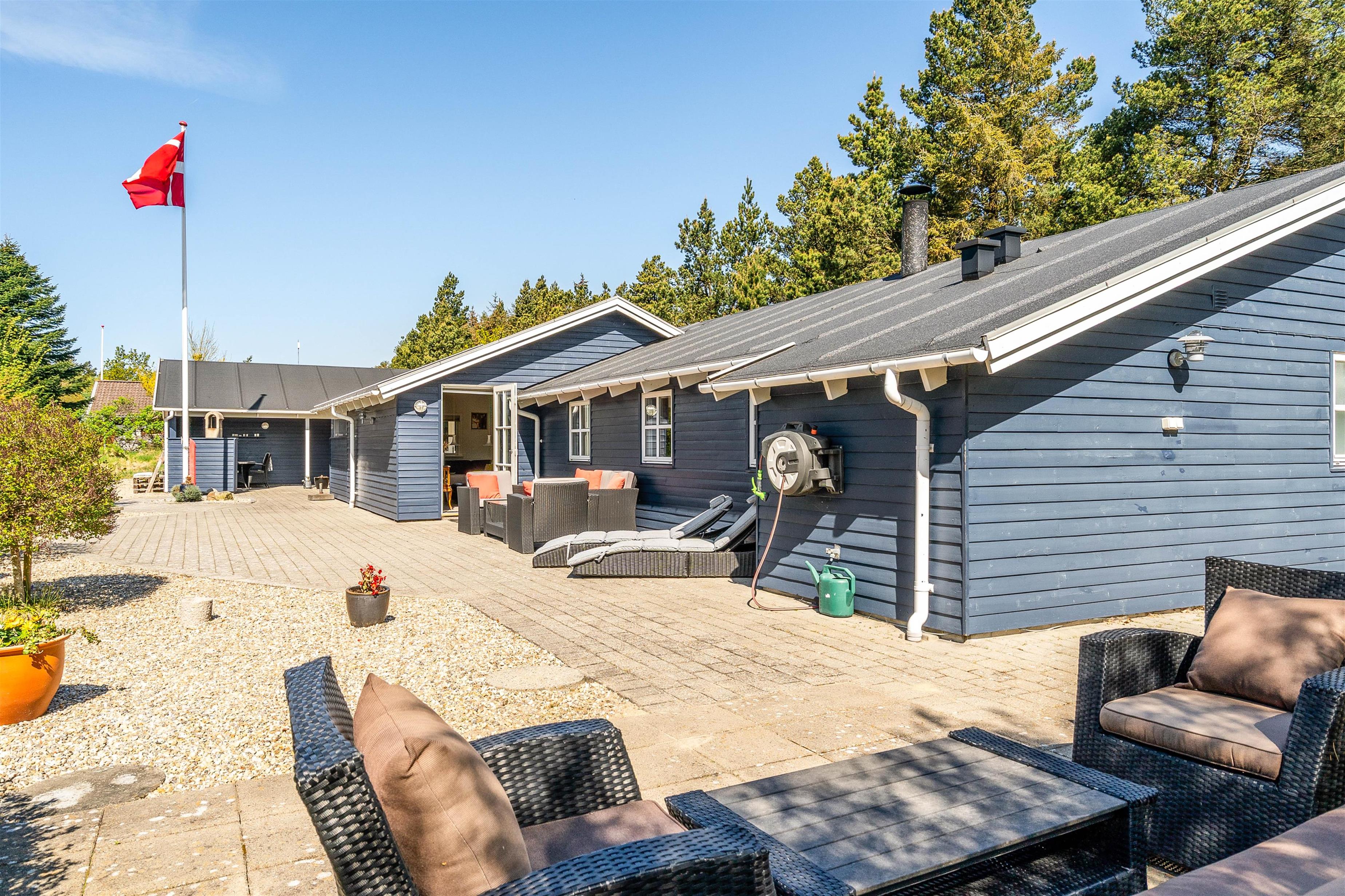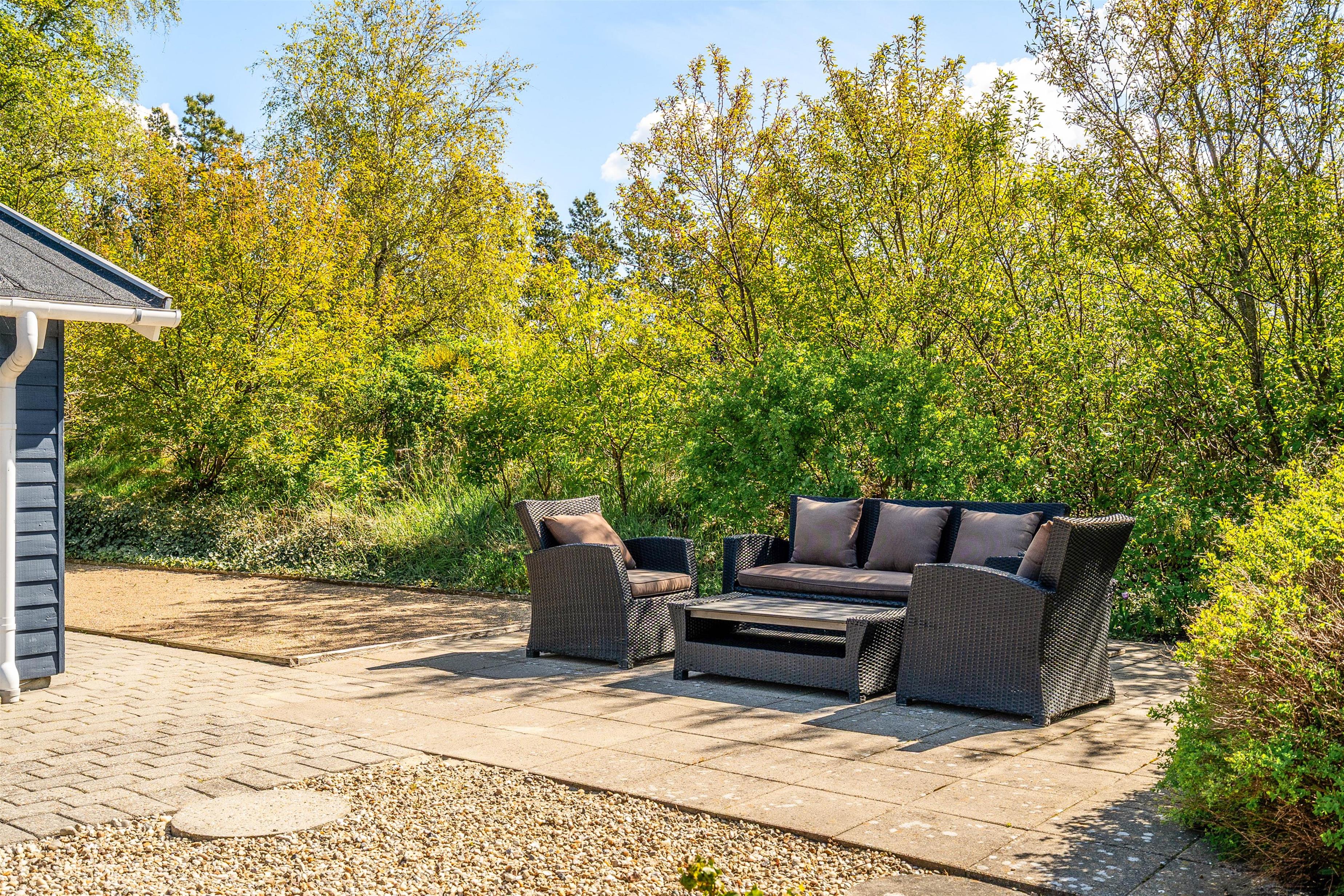 De velplejede udeområder med havemøblerne og den overdækkede terrasse er perfekte til hyggelige grillfester eller afslappende stunder i solen. Dertil er grunden indhegnet, så jeres firbenede venner frit kan færdes: i dette feriehus der er tilladt maksimalt 2 hunde.