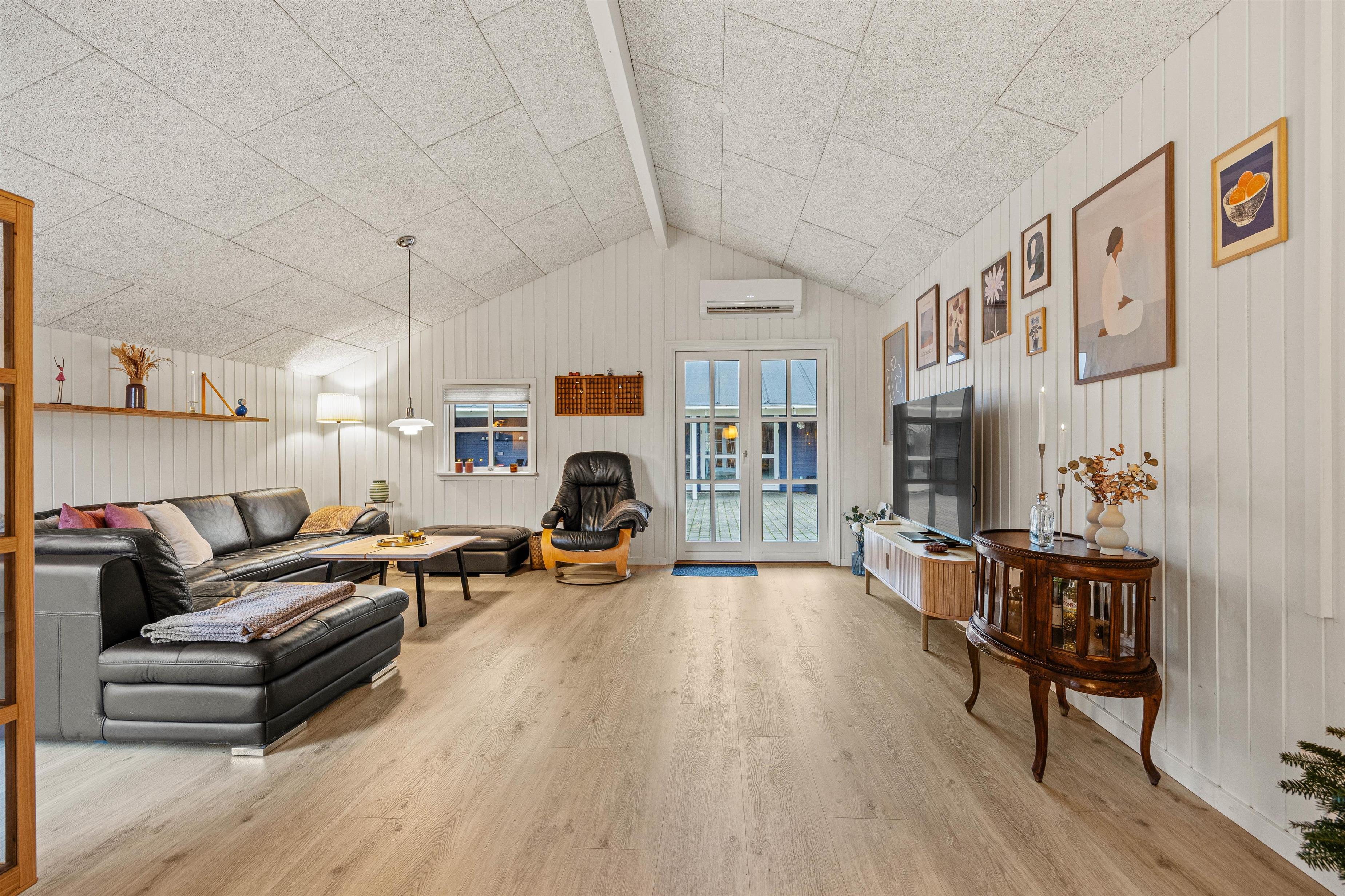 Den smagfuldt indrettede stue har et lyst, åbent miljø, der skaber en indbydende atmosfære. Stuen er udstyret med en parabolantenne og Google Chromecast, så I altid er godt underholdt. Om aftenen kan I nyde hyggelige stunder foran brændeovnen, som sammen med gulvvarmen på badeværelset sørger for en behagelig varme.