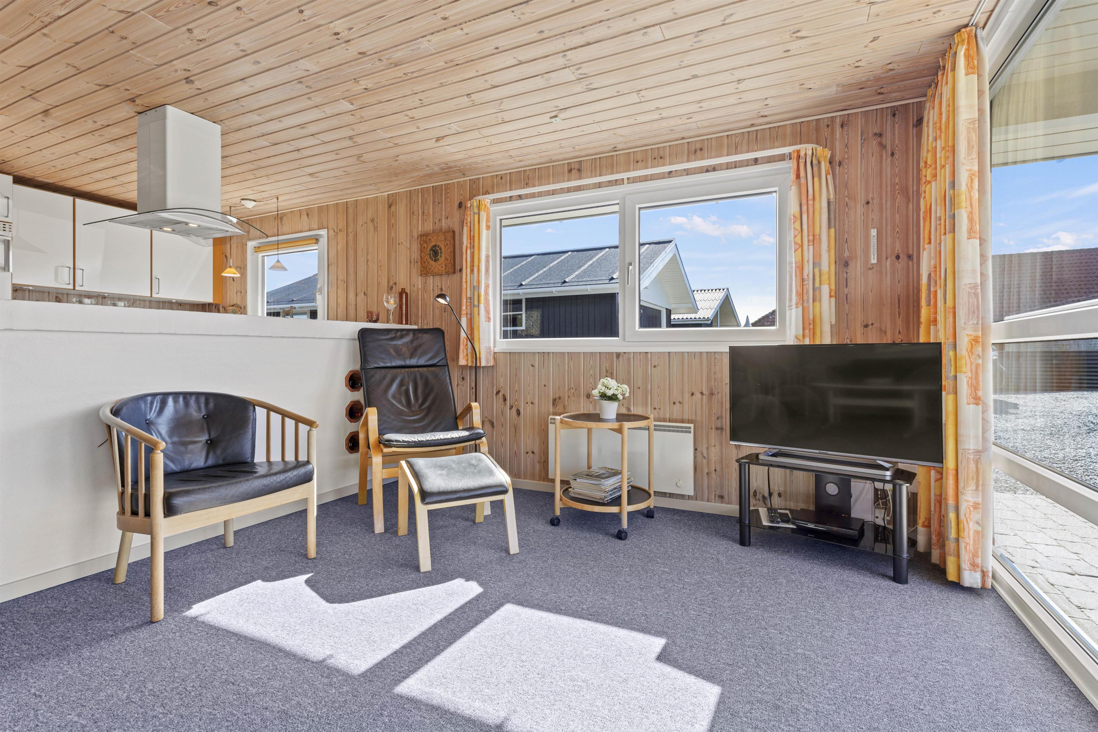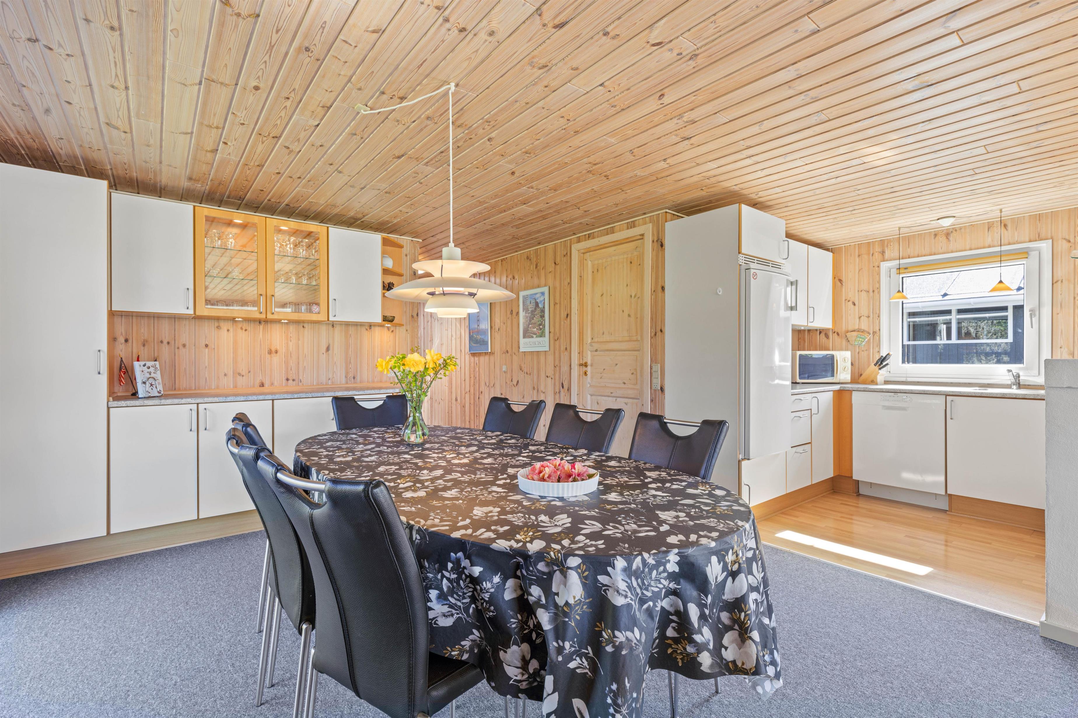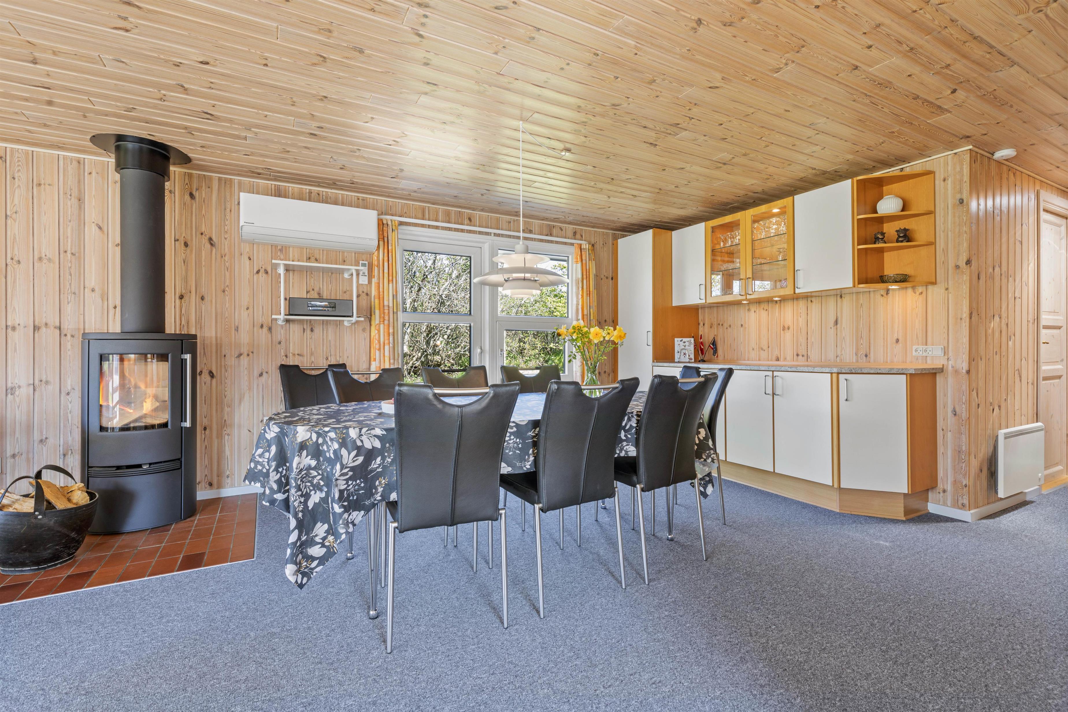 Så snart I træder ind ad døren, vil I blive budt varmt velkommen i de lyse omgivelser, der emmer af klassisk sommerhusstil. Det store kombinerede køkken- og stuerum er sommerhusets hjerte, og her er der lagt op til masser af hyggelige feriestunder. Tilbered lækre måltider i det veludstyrede køkken, og tilbring de sene aftener foran den knitrende brændeovn.