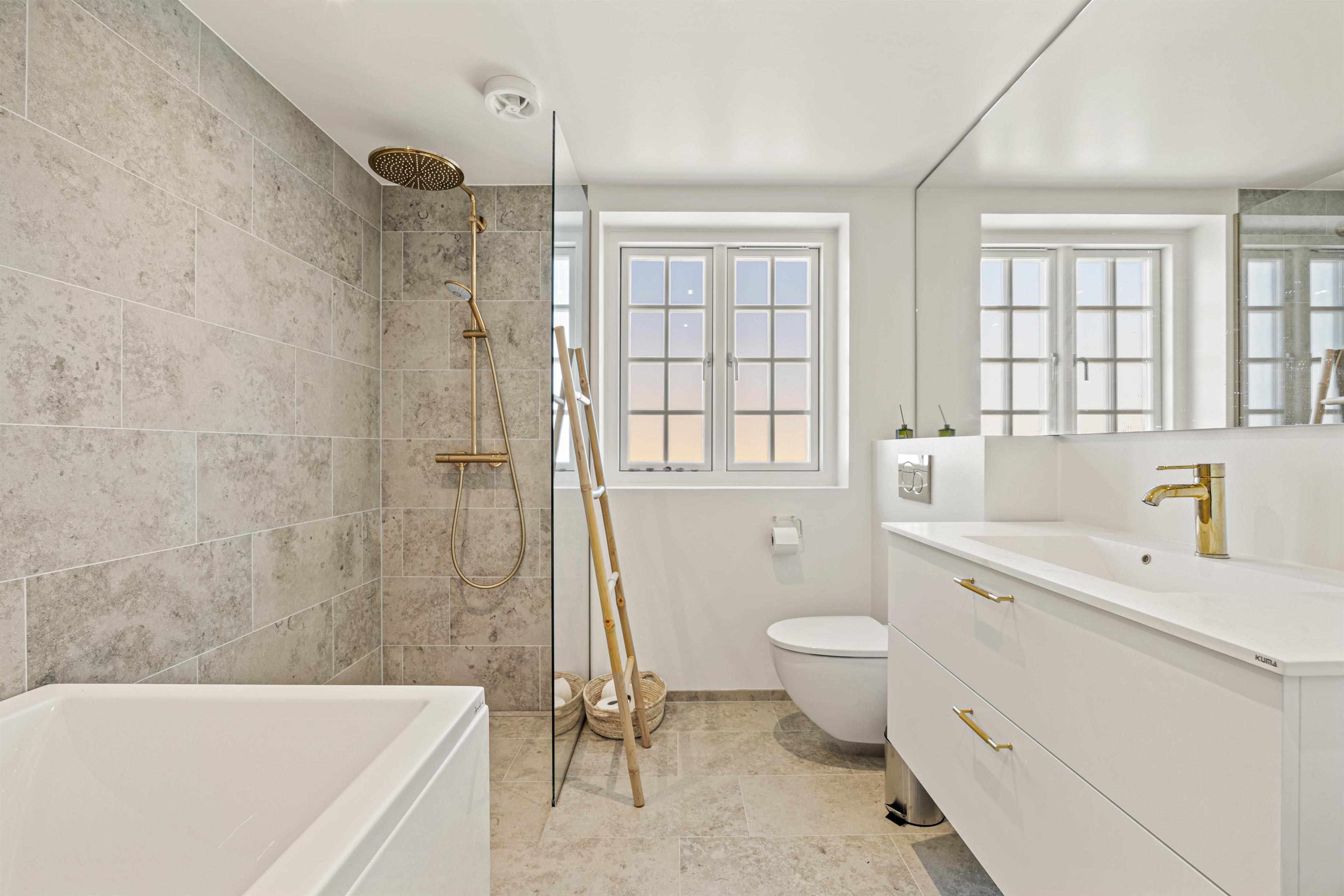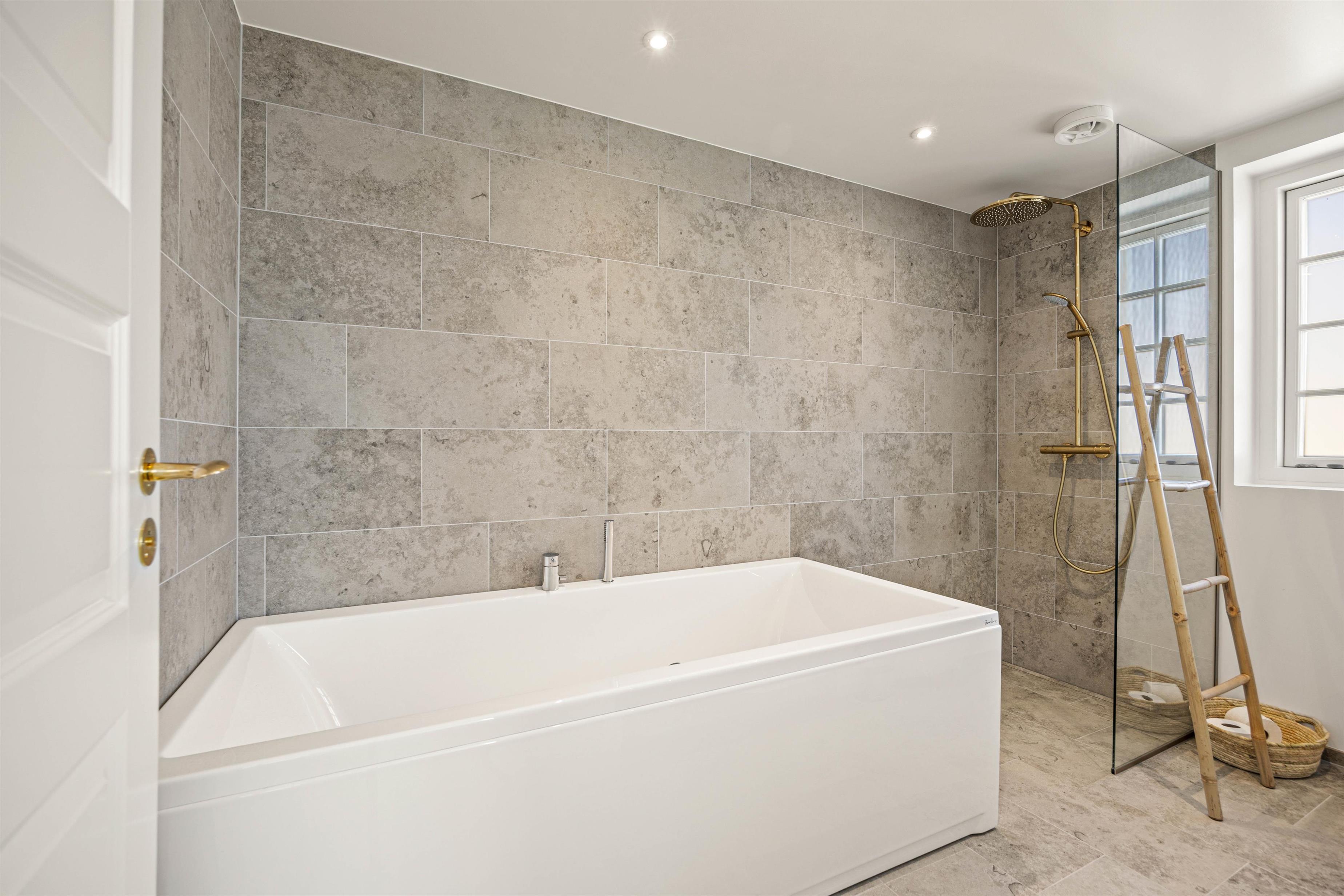 Også i badeværelserne er der lagt vægt på detaljerne. Der er naturligvis gulvvarme for ekstra komfort. Ligeledes er sommerhusets bryggers lyst og indbydende - med alle moderne faciliteter.