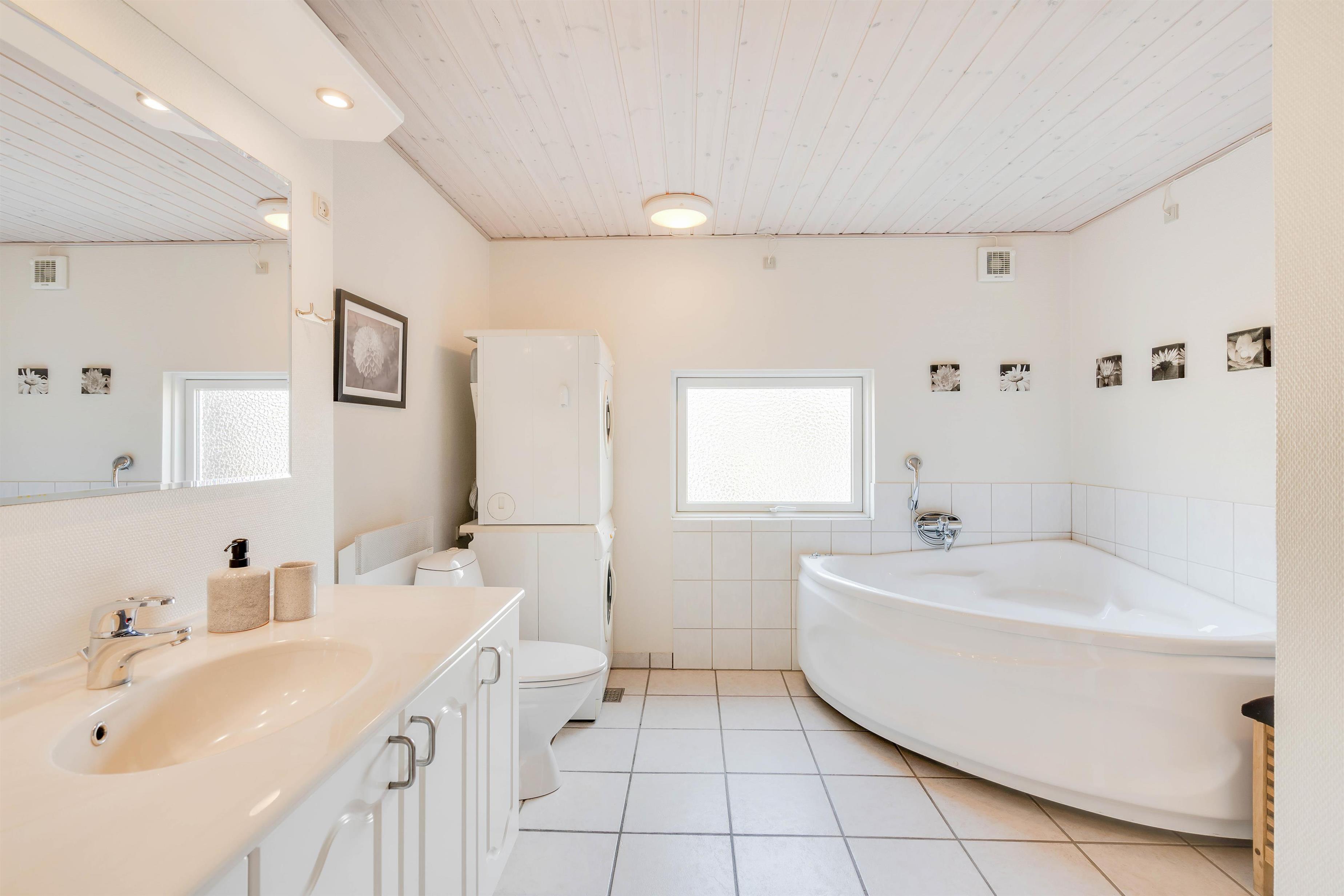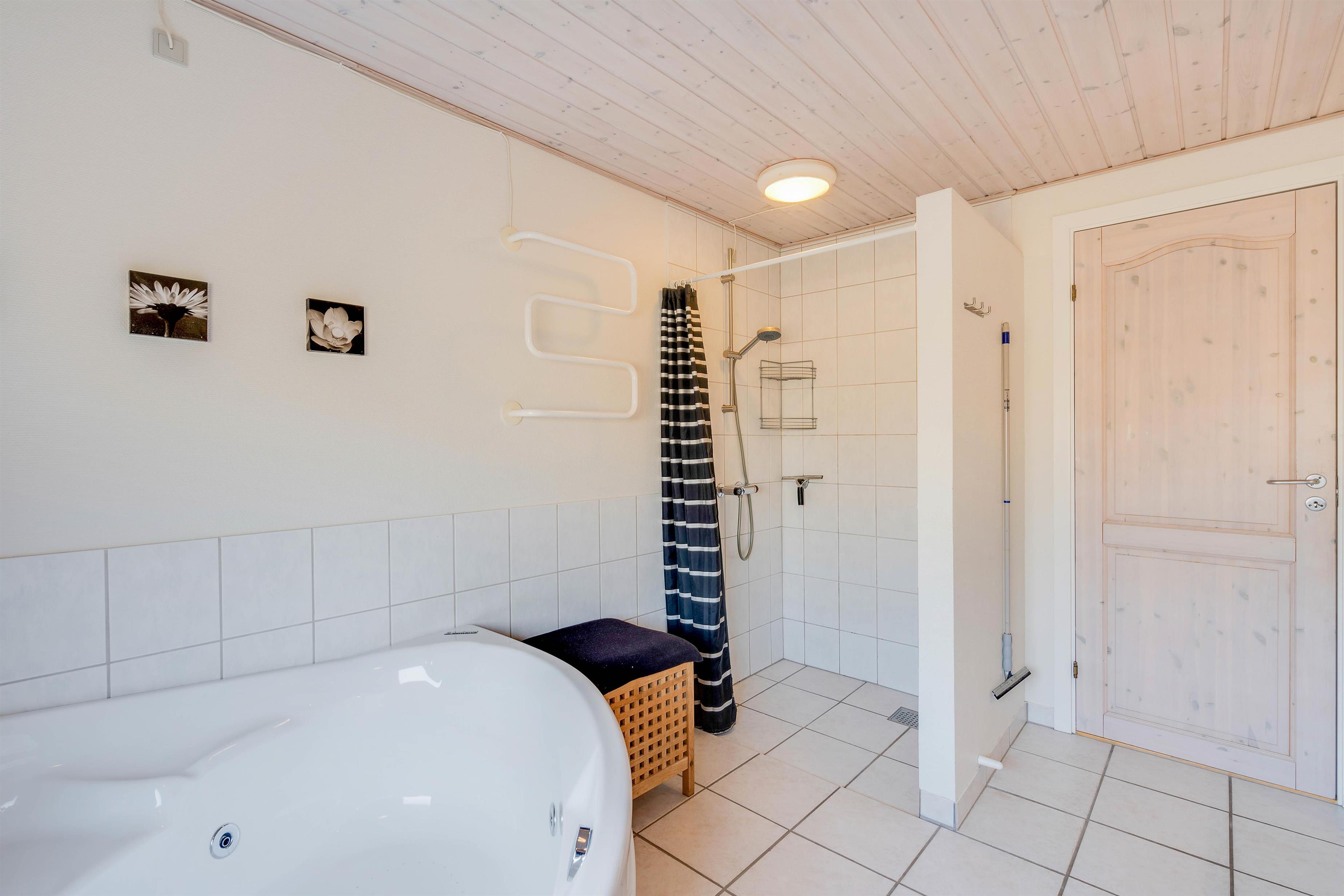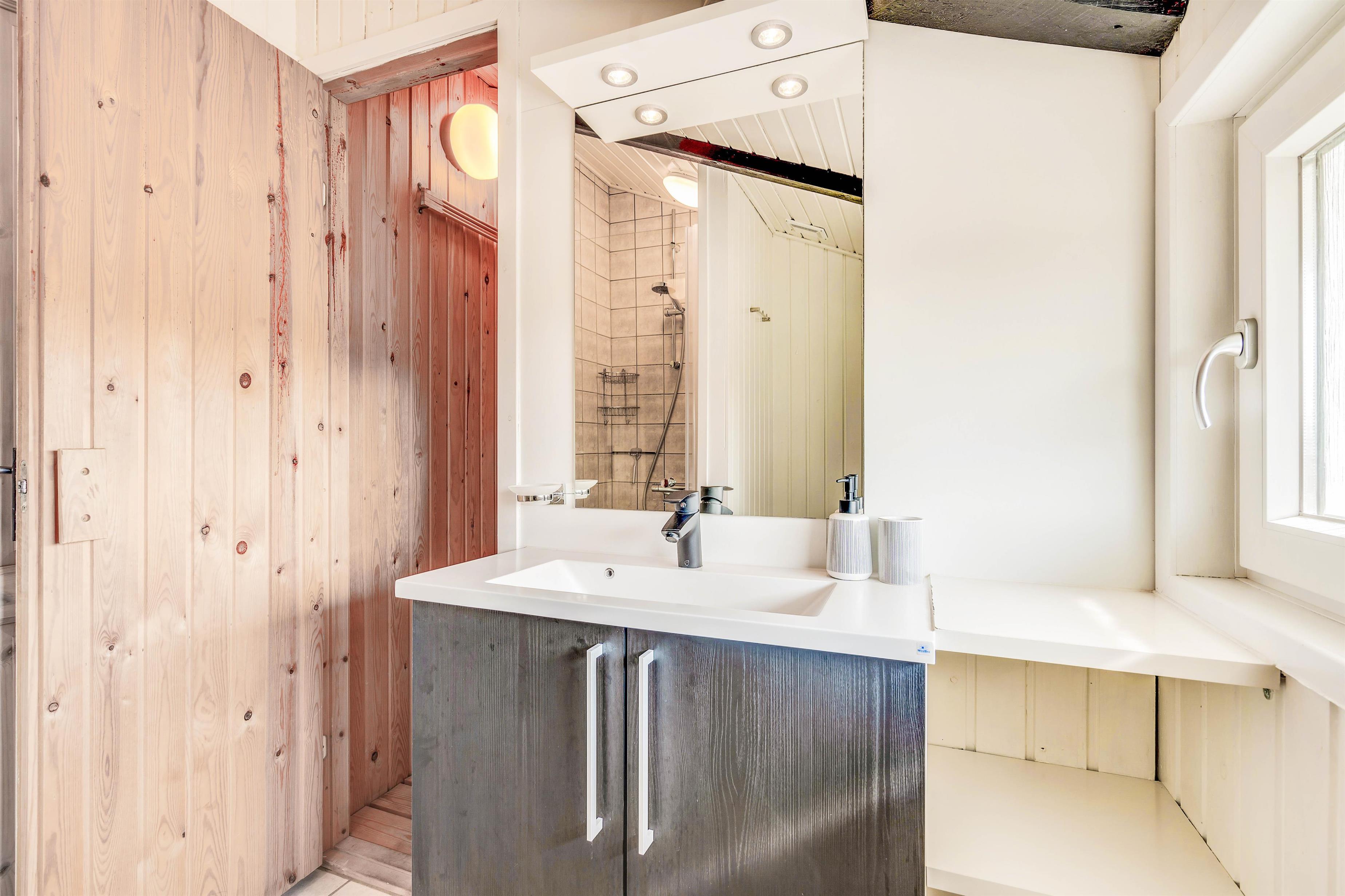 Sommerhuset har hele 2 badeværelser, og de er begge med gulvvarme. Så hvis I er 2 familier, som deler sommerhuset, kan hver familie have sit eget badeværelse. Samtidig undgår I også den værste kø og ikke mindst de kolde fødder på grund af gulvvarmen.