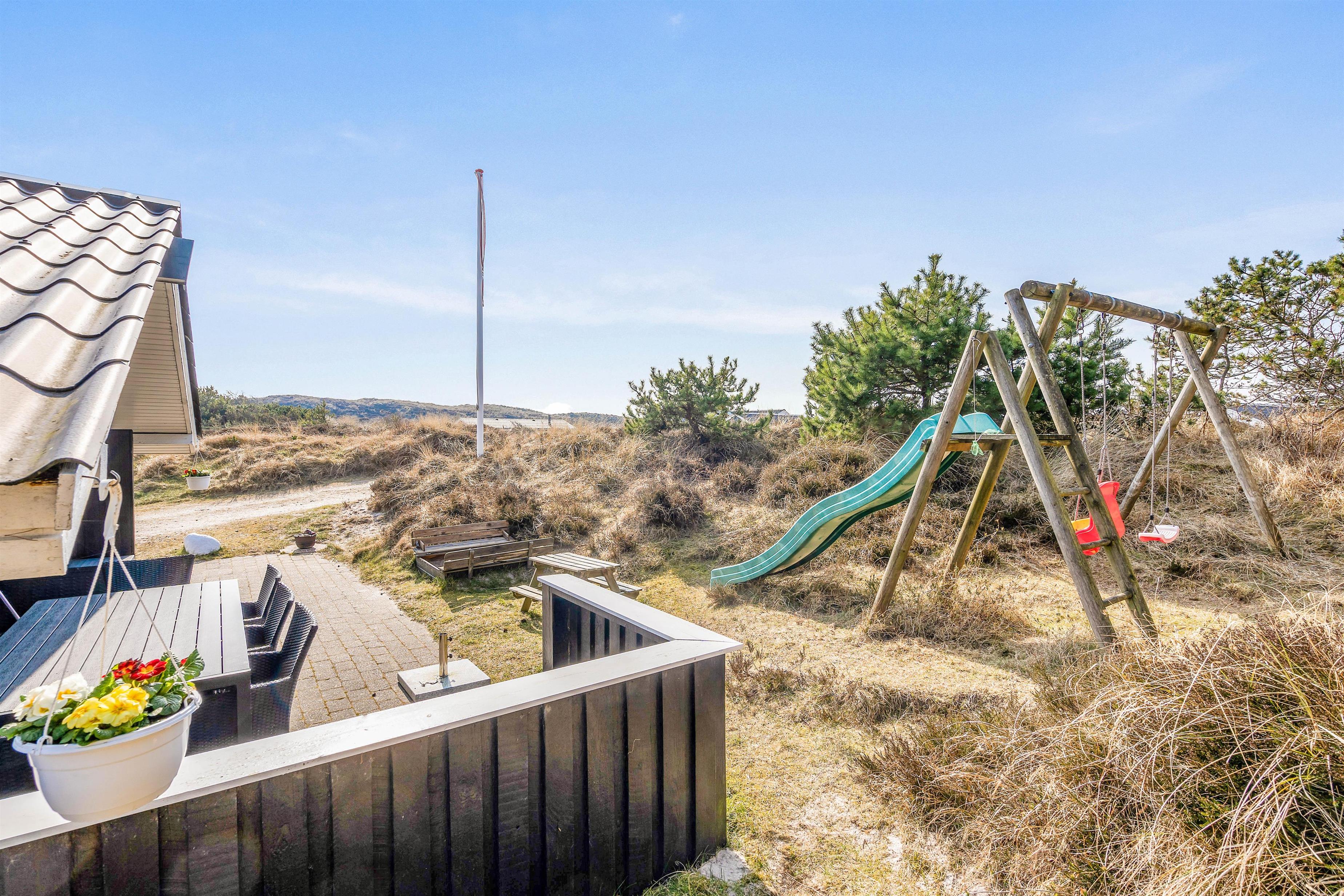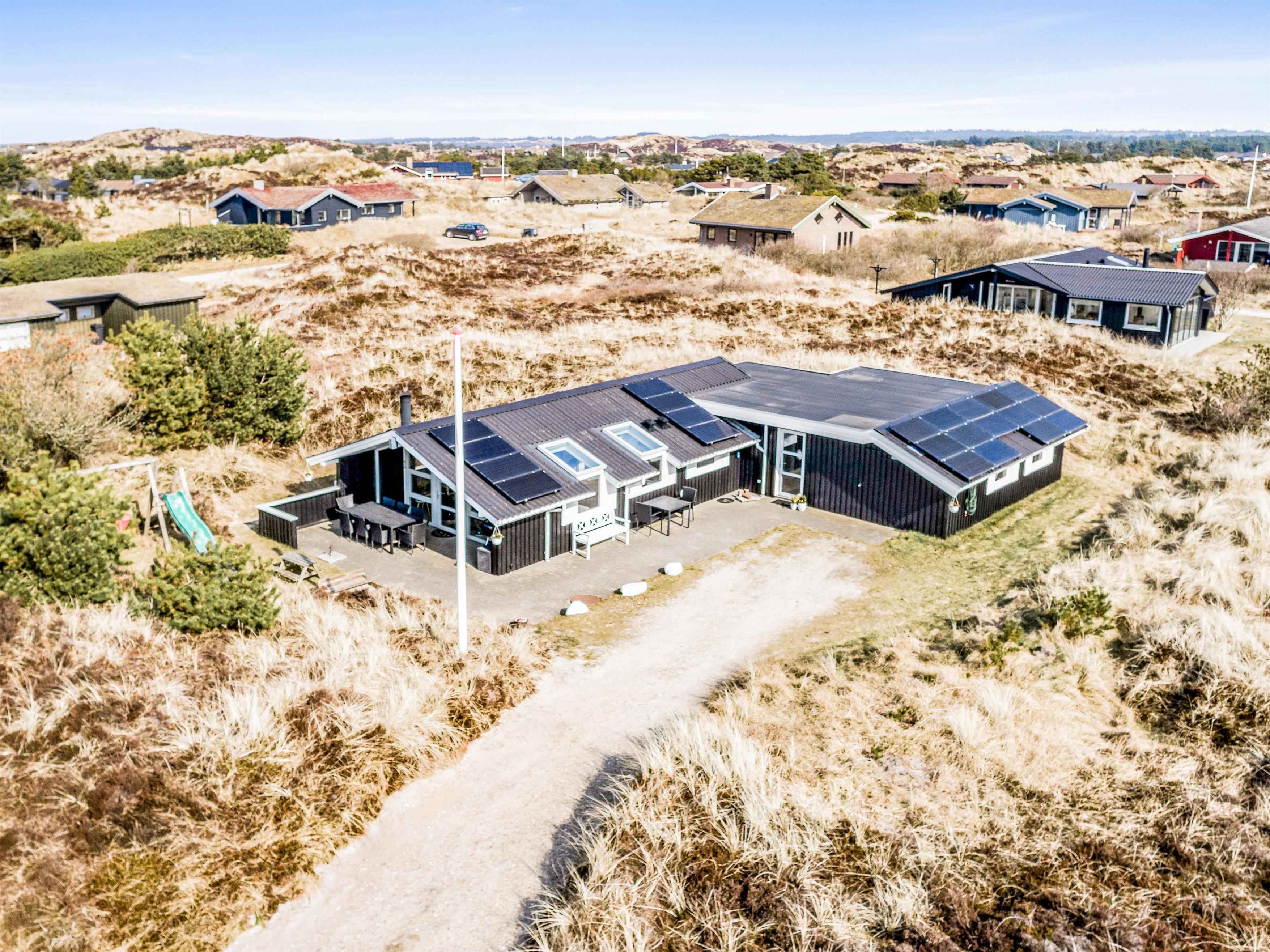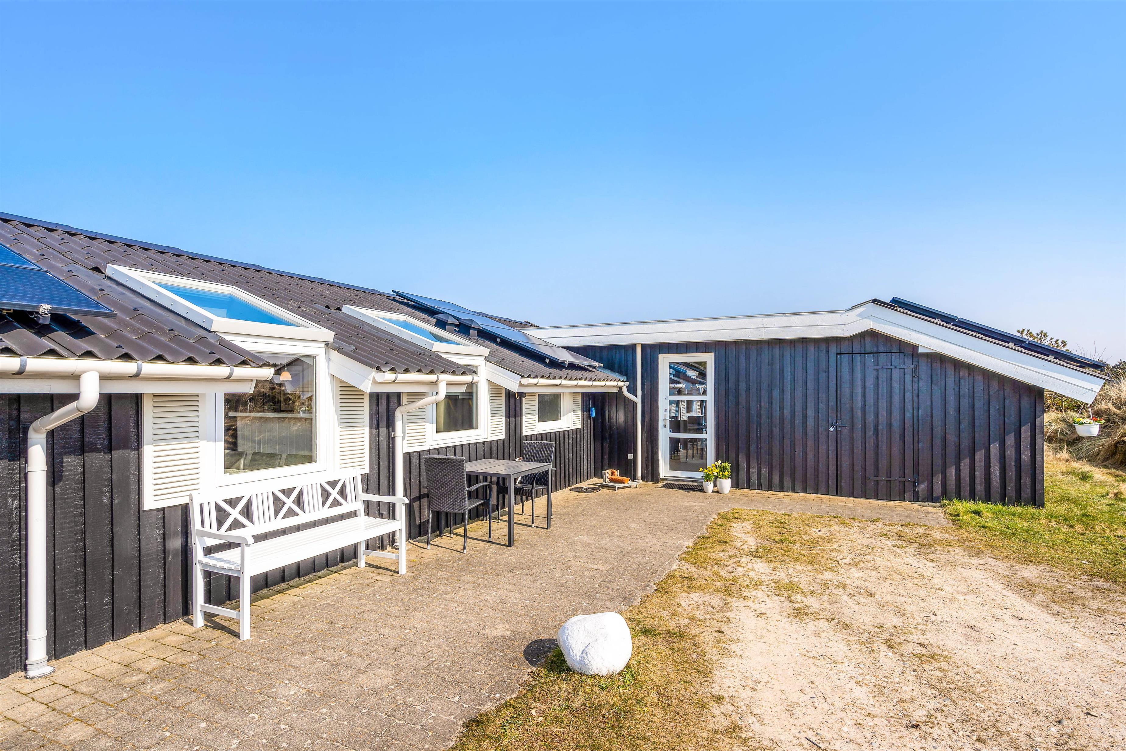 Med dette sommerhus får I også en dejlig beliggenhed, hvor I kun har 800 meter til stranden. Det kræver derfor kun en lille gåtur, og så er vandhundene allerede hoppet i vandet. Og hvis I har fået nok af stranden, så kan I også nyde solen på terrassen. Her finder I både liggestole, havemøbler og en grill. Terrassen er også delvist overdækket, hvis I trænger til lidt skygge.