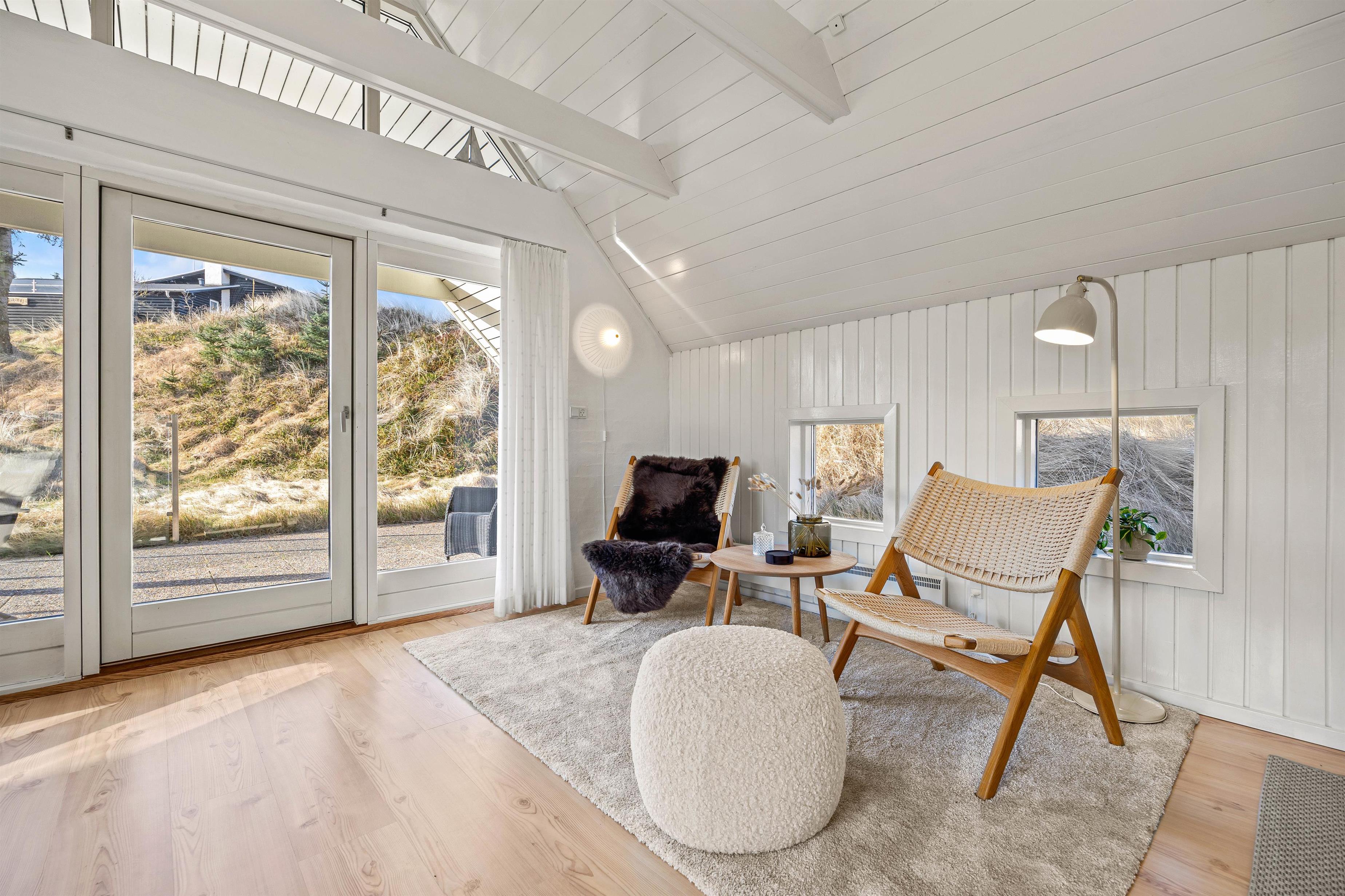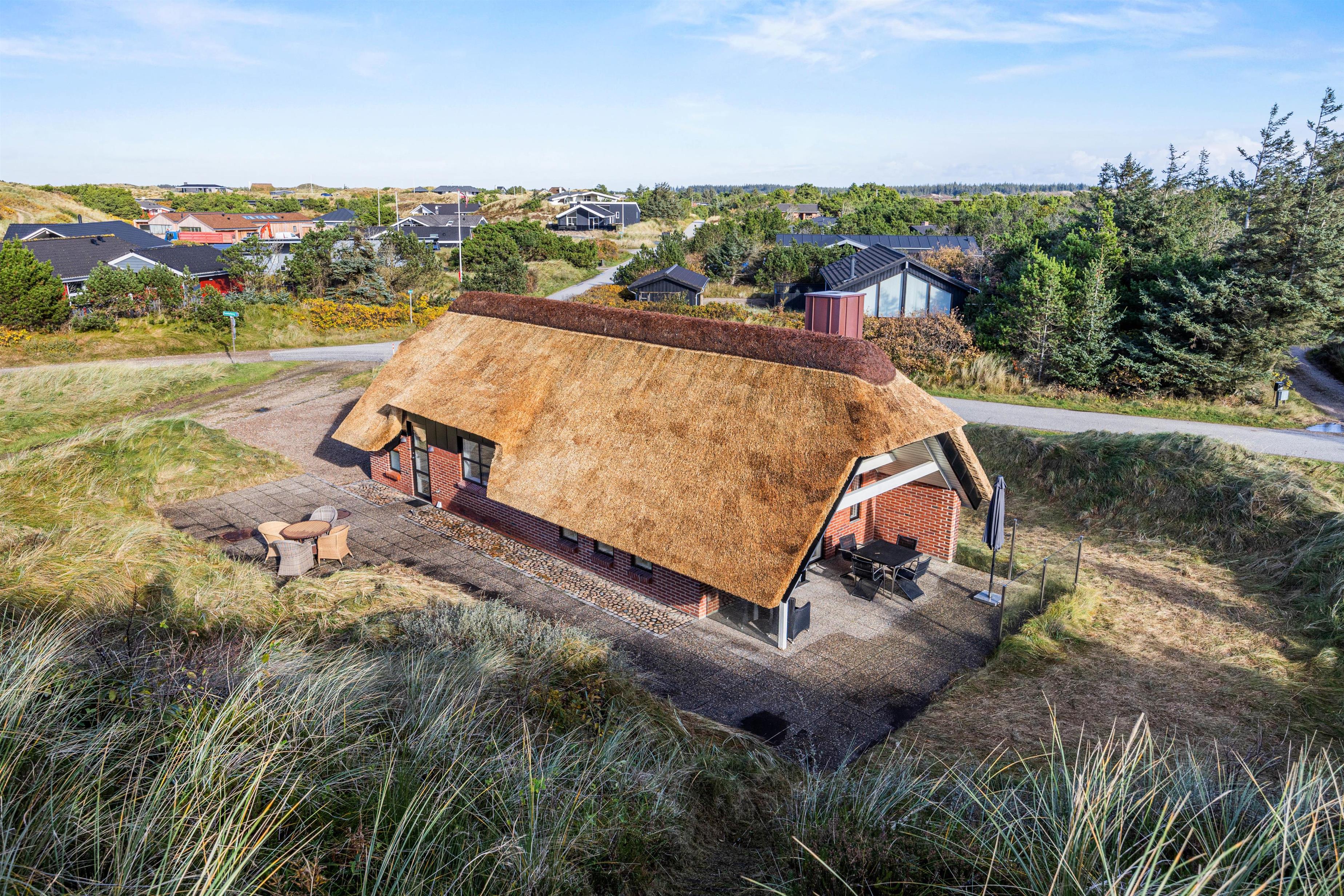 Sommerhuset ligger kun omkring 500 meter fra både indkøb og den brede sandstrand ved Vesterhavet – her har I det hele inden for rækkevidde.
