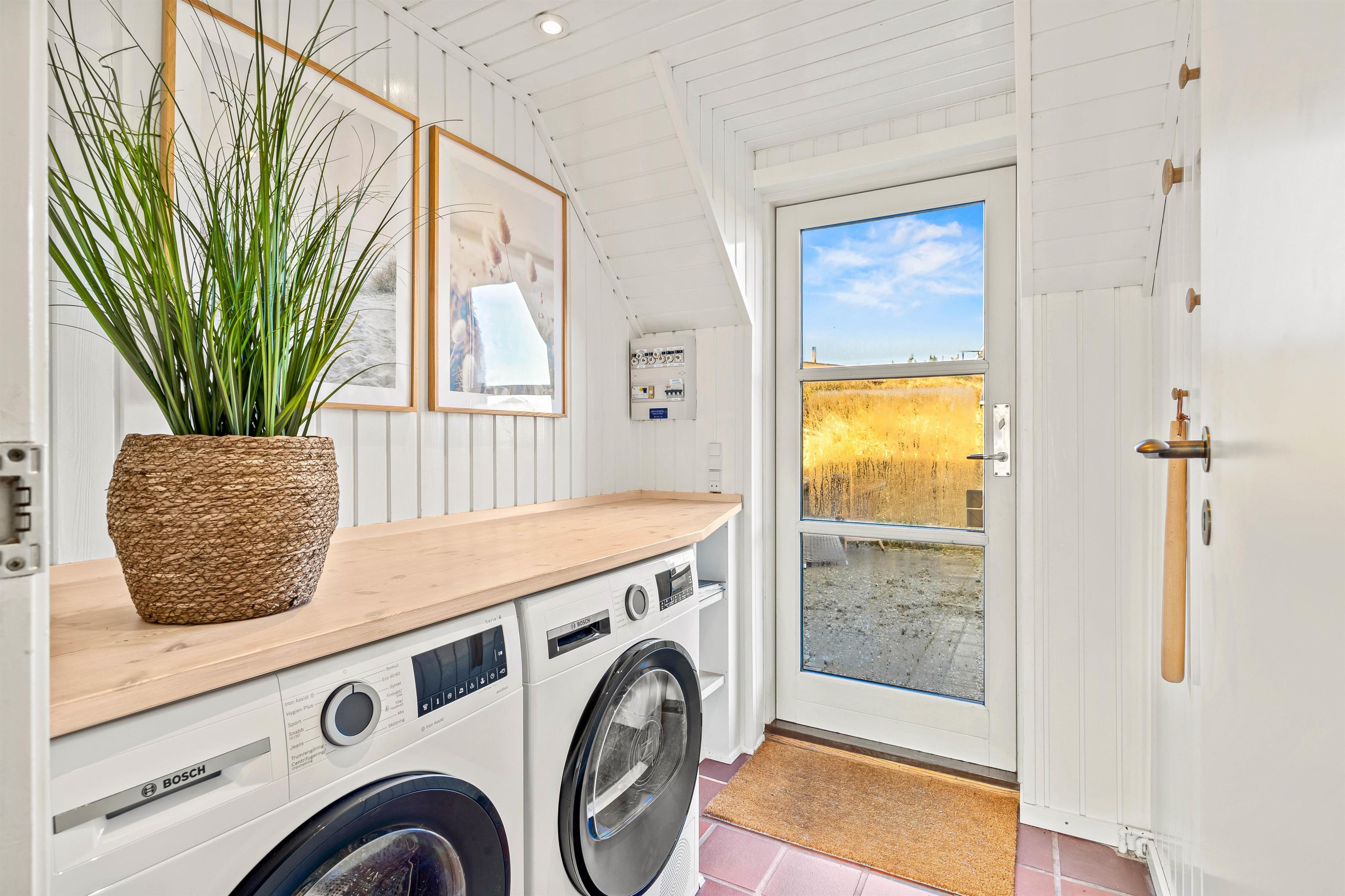 En luft til luft varmepumpe og gulvvarme på badeværelset sikrer en stabil og behagelig temperatur i hele sommerhuset, uanset årstiden. Derudover er sommerhuset praktisk udstyret med både opvaskemaskine, vaskemaskine og tørretumbler – alt sammen med til at gøre jeres ophold så afslappet og bekvemt som muligt, også når I holder ferie i længere tid.