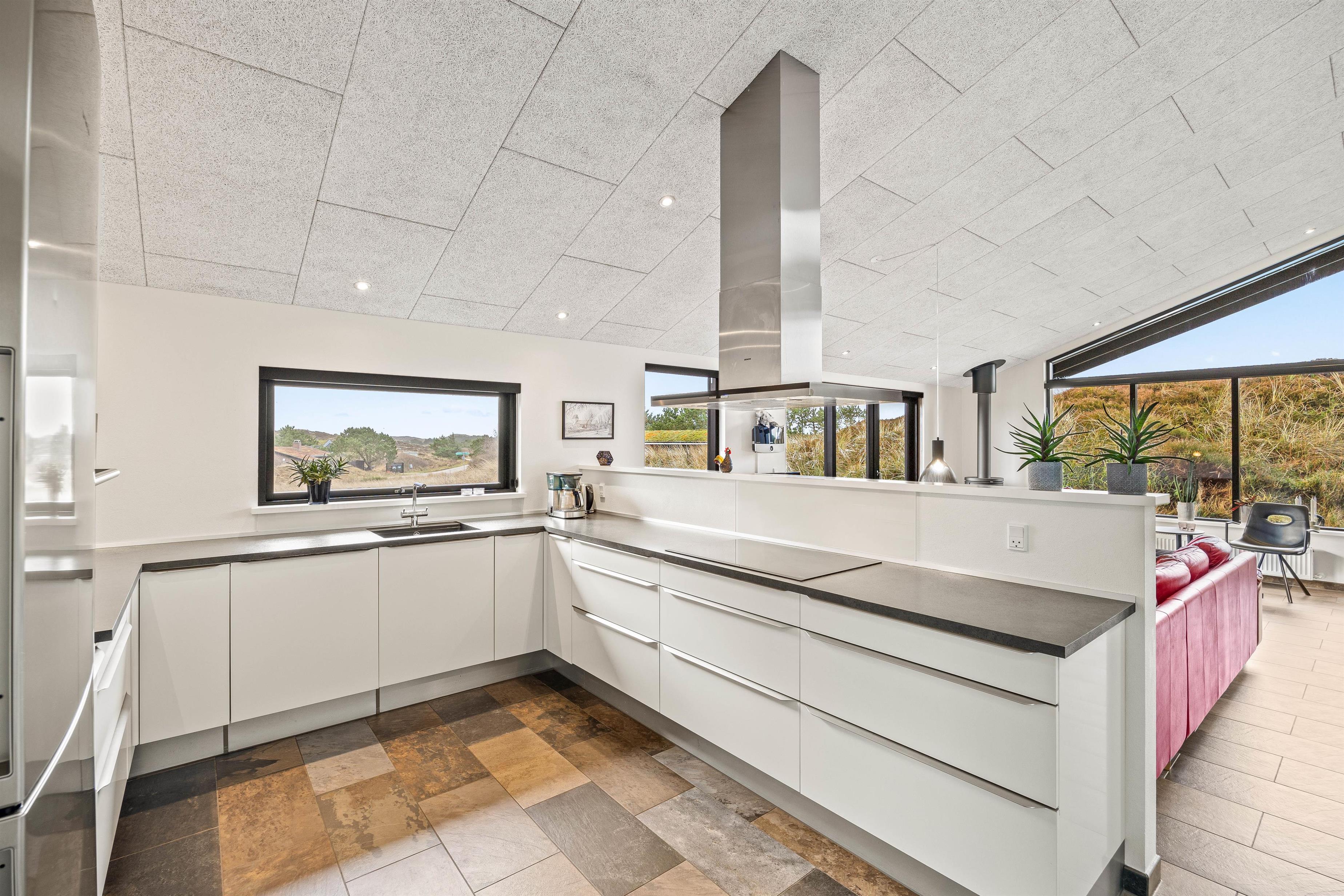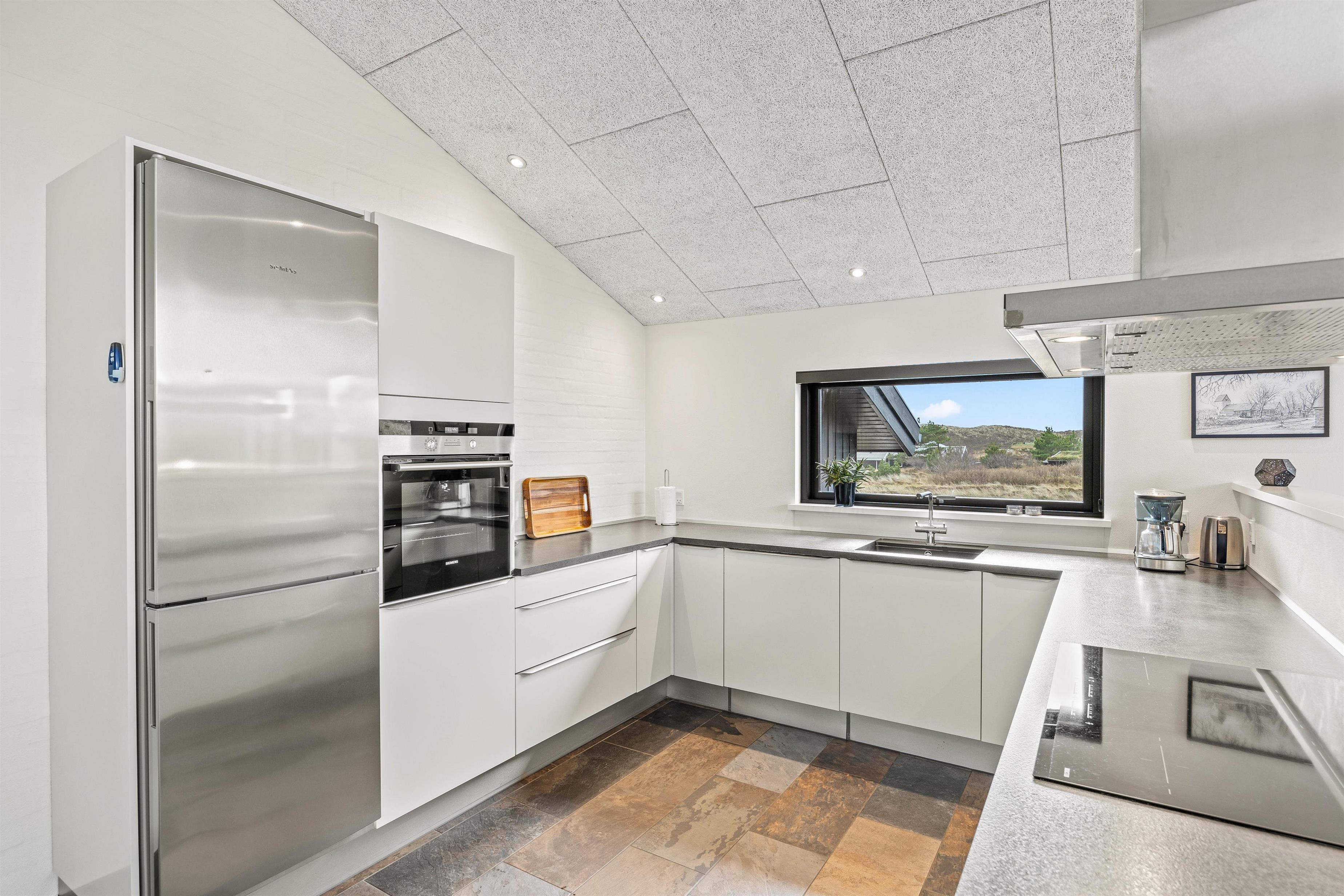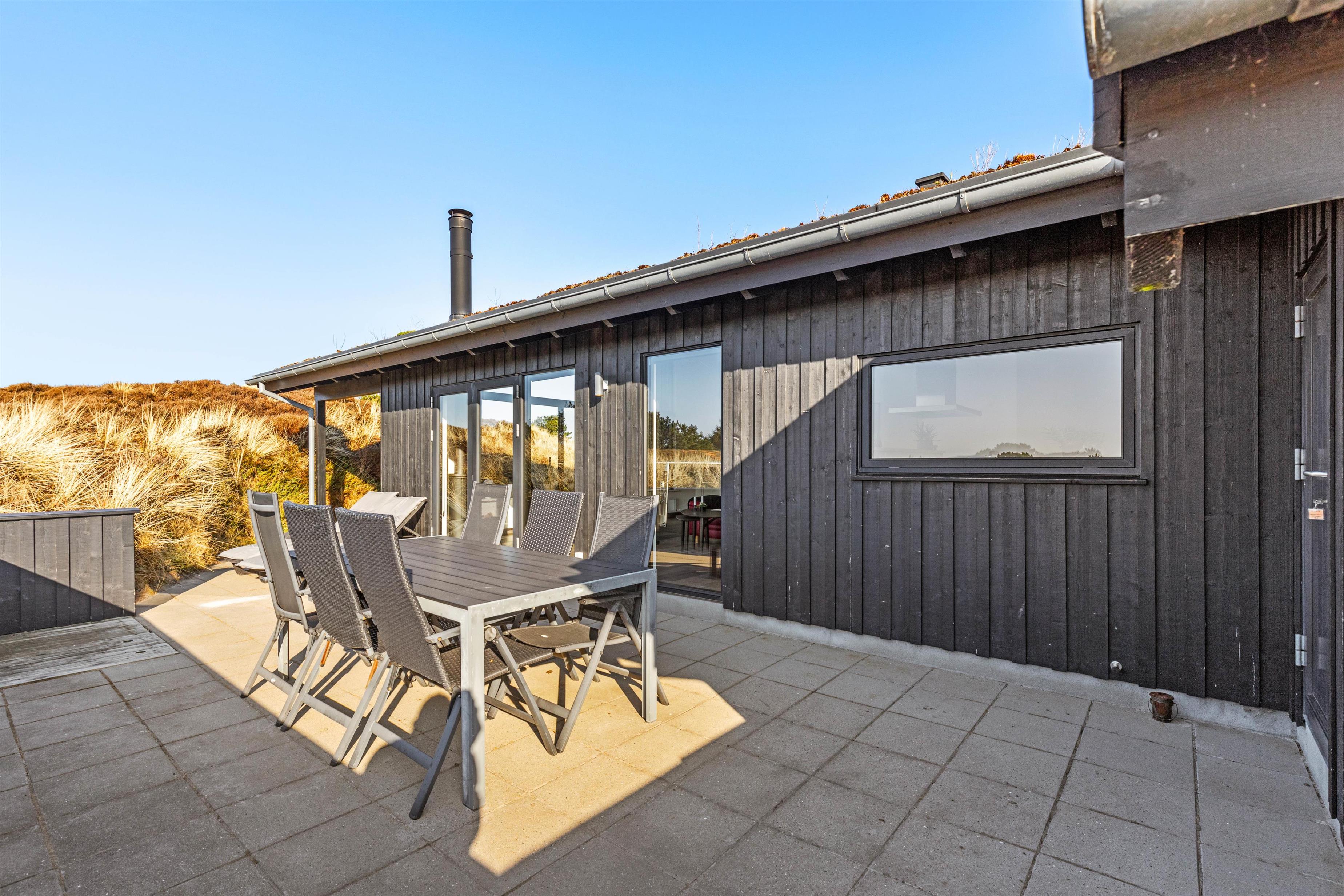 Udendørslivet kan I nyde på en af de 3 ugenerte terrasser, hvor der altid er mulighed for at finde en plads i læ. Den åbne terrasse er perfekt til solbadning, mens den overdækkede tilbyder skygge på de solrige dage. En afskærmet terrasse sikrer et privat rum til hyggelige grillaftener, og her er naturligvis både havemøbler og en grill til rådighed. Sommerhusets beliggenhed i klitterne sørger for et smukt udsigt over de nærmeste omgivelser.