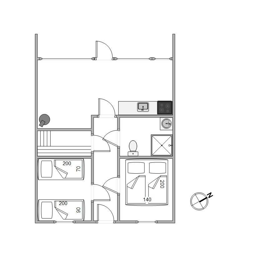 Rækkehuset har plads til 4 personer og egner sig både til familien, men også til et vennepar, som vil tilbringe en fælles ferie. Der er 2 soveværelser, det ene med dobbeltseng og det andet med 2 enkeltsenge.