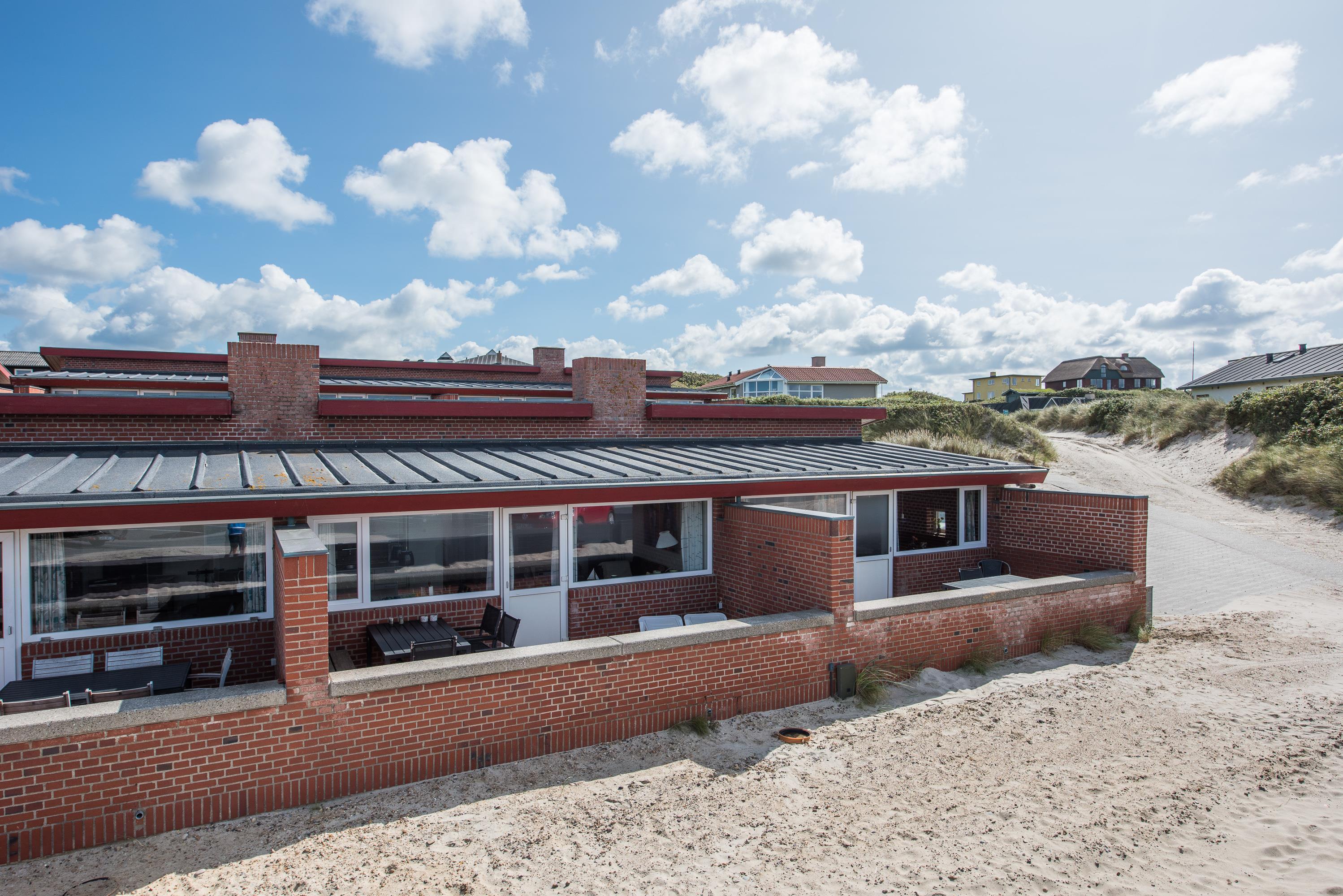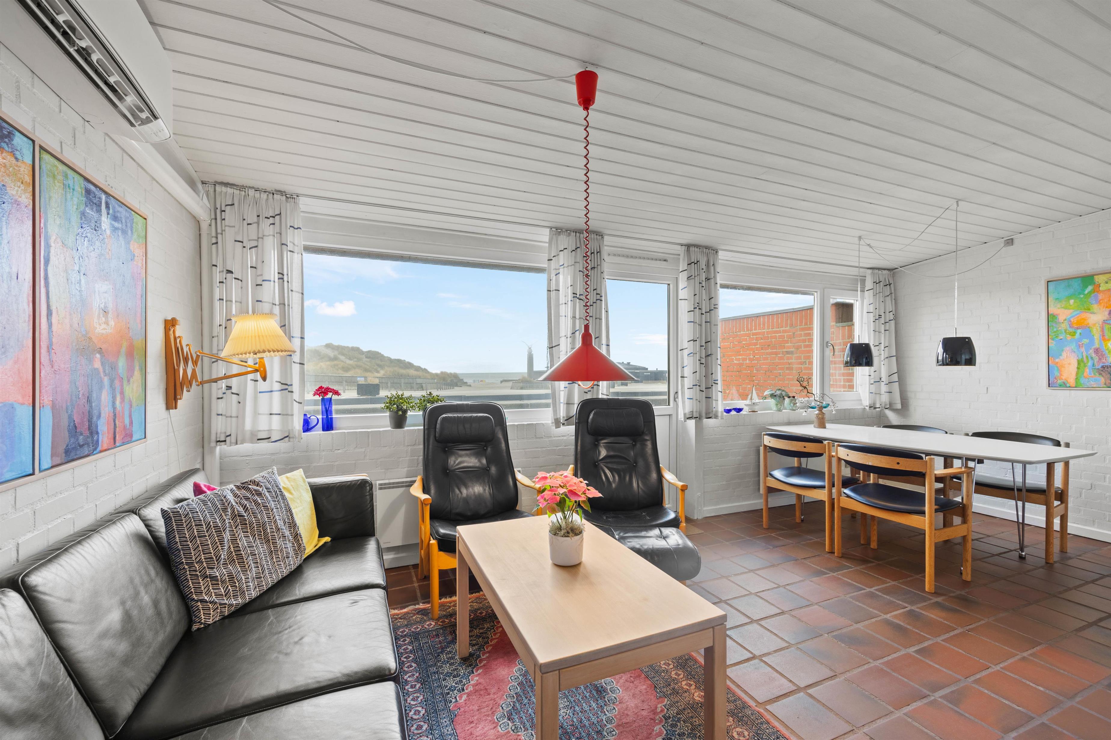 Dette hyggelige rækkehus på Fasanvej 16 H ligger direkte i 1. række til stranden. Ikke kun fra terrassen. men også fra stuen har I en herlig udsigt til havet. Dertil ligger den livlige ferieby Henne Strand lige om hjørnet. Her er det perfekte sted at tilbringe en uforglemmelig ferie ved Vestkysten.