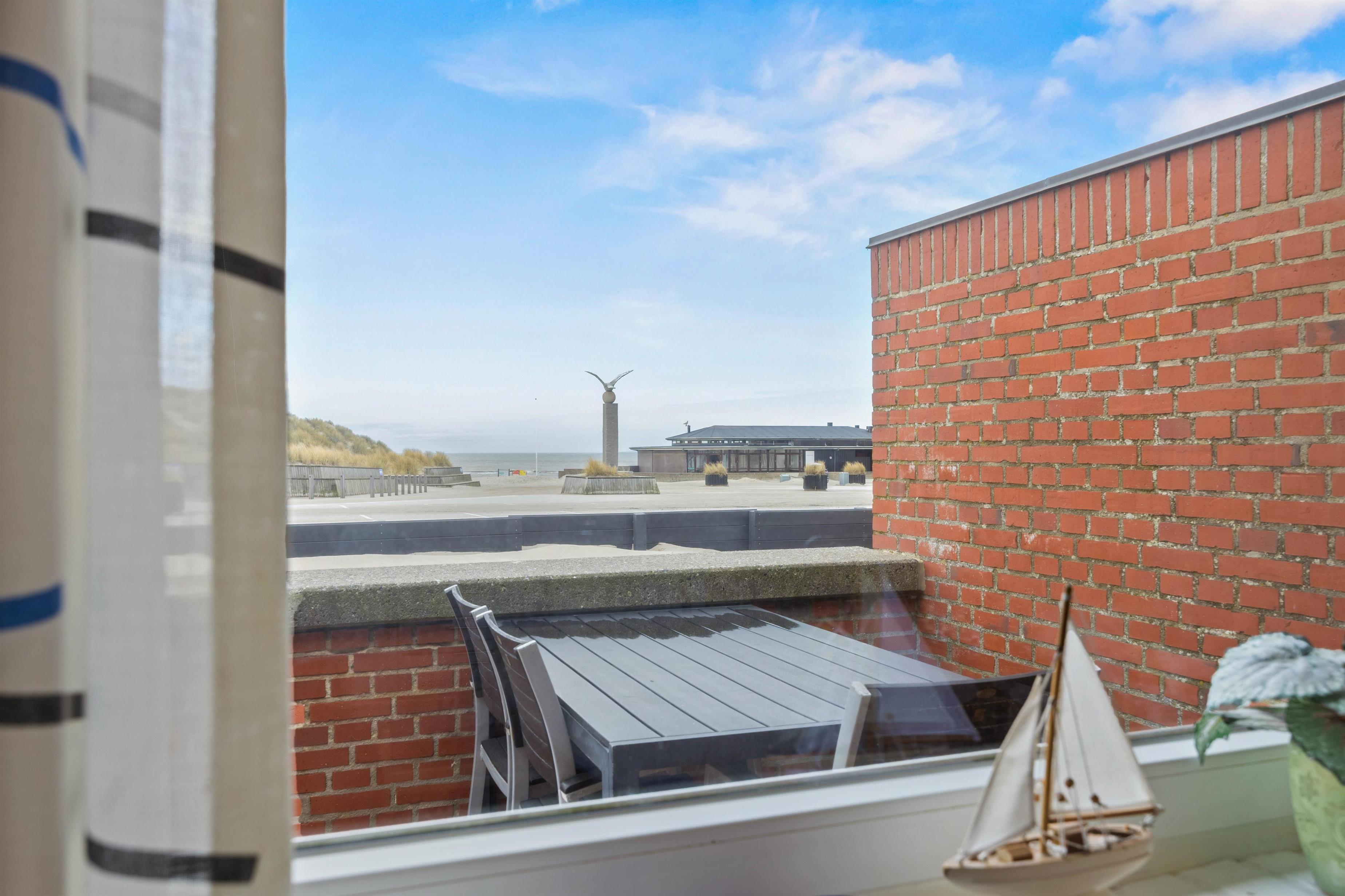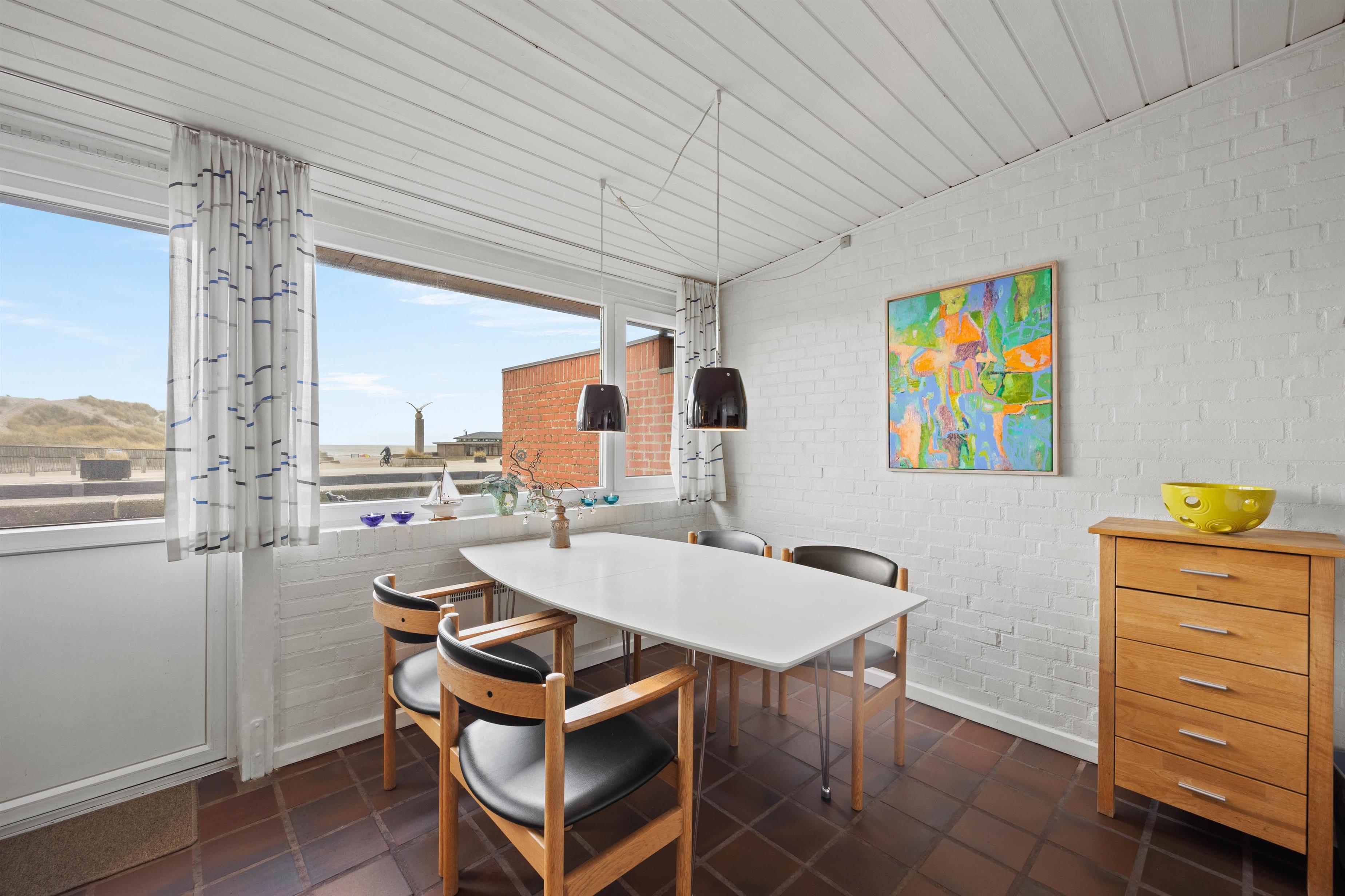 Fra den lukkede terrasse har I den skønneste udsigt til det evigt foranderlige hav. Den ene dag er det smuk, blåt og roligt, den næste er det vild og brusende – det er altid lige fascinerende.