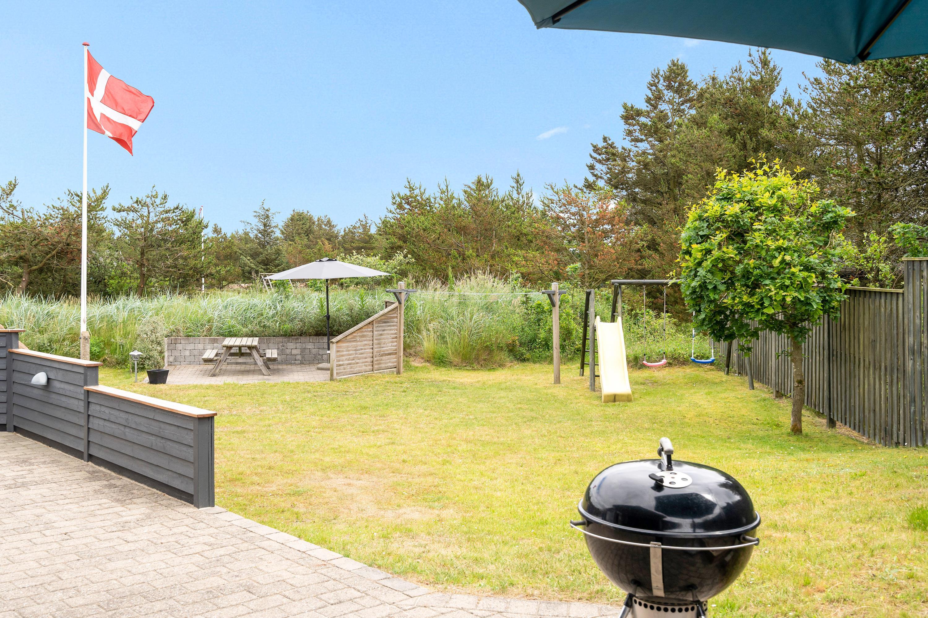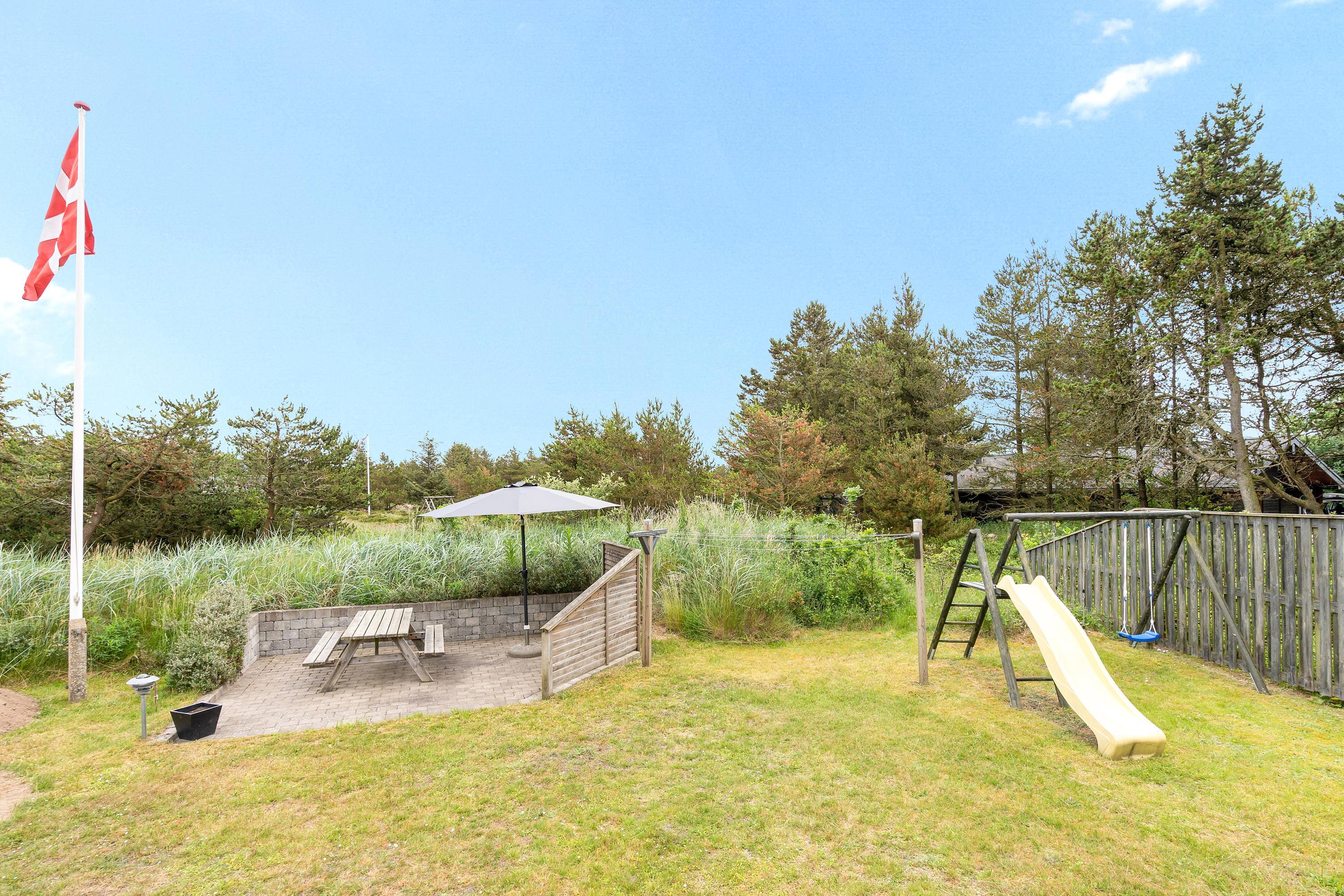 På den delvist overdækkede terrasse kan I holde en hyggelig grillaften og nyde den friske havluft. Liggestole og havemøbler står til rådighed, så I kan slappe godt af på de varme sommerdage, mens børnene leger på græsplænen. Til de mindste feriegæster er der også sat et gyngestativ og en sandkasse op.