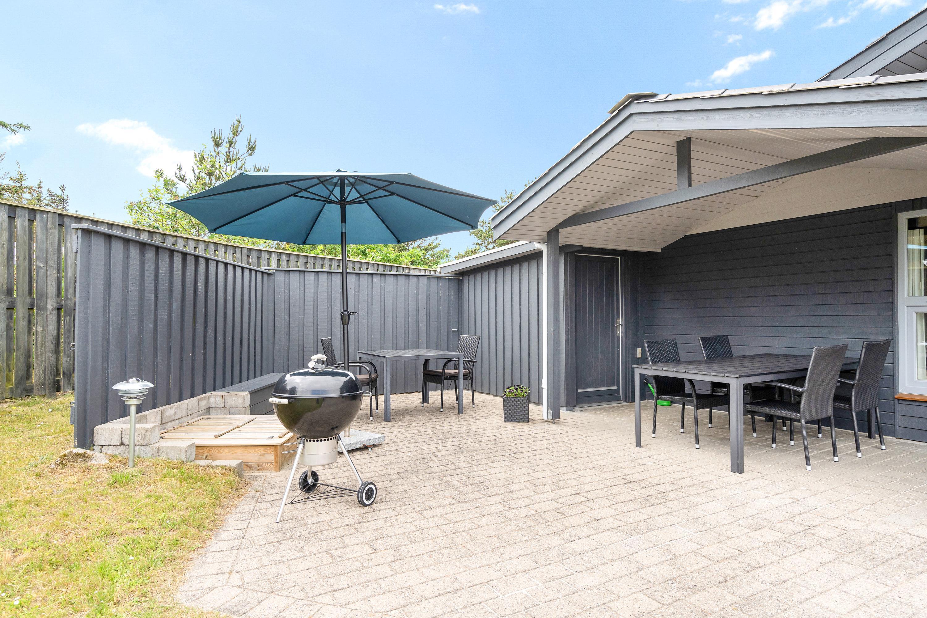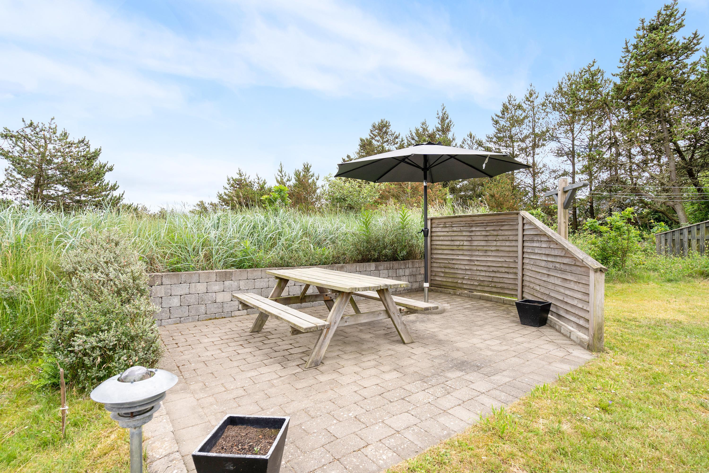 Det hyggelige sommerhus er et helt ideelt udgangspunkt for udflugter i det vestjyske landskab, og kun få minutters gang væk ligger den skønne bymidte i Henne Strand, som byder på masser af indkøbsmuligheder, restauranter og caféer.
